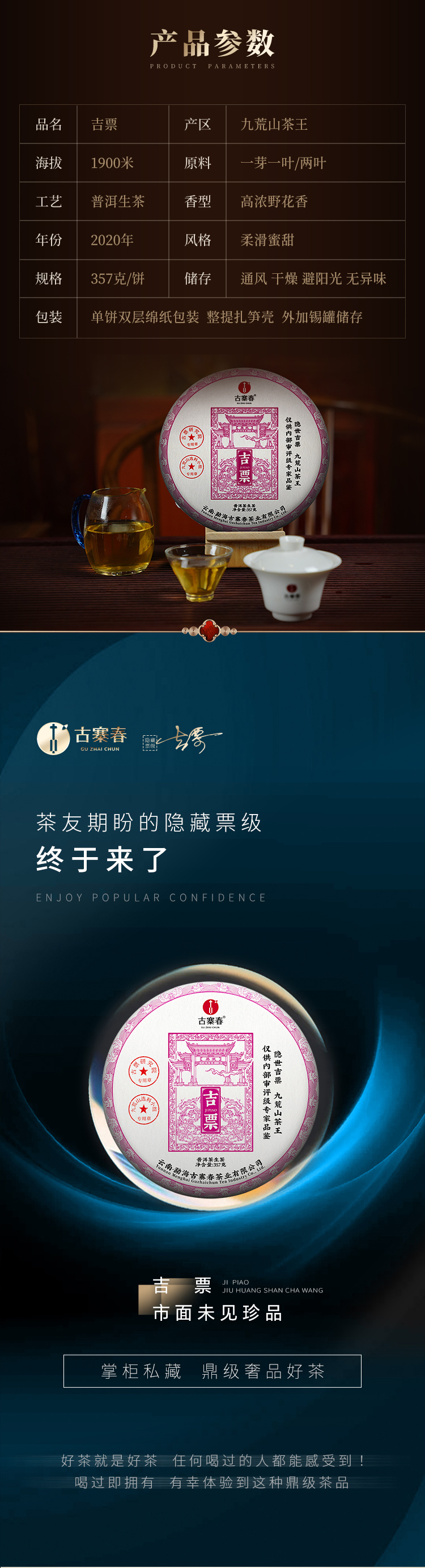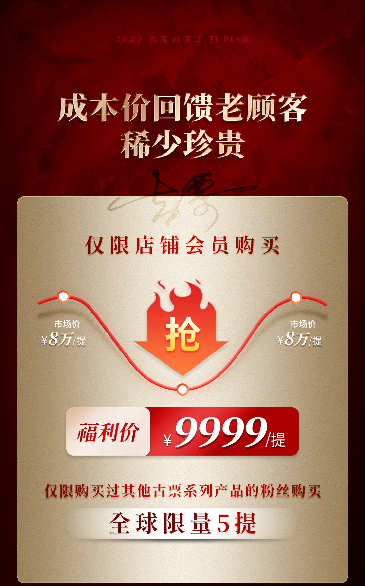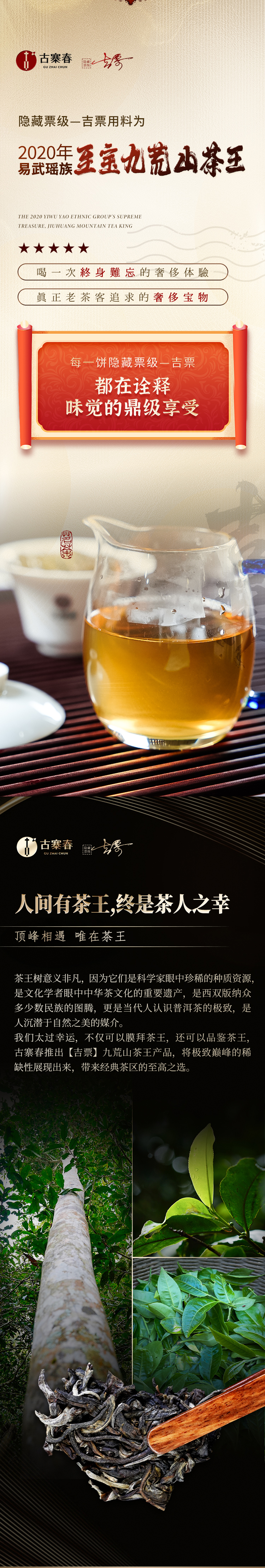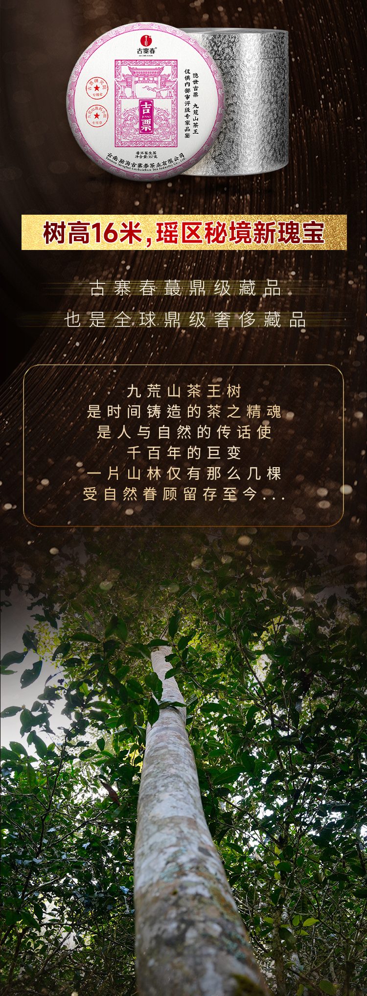 蕞鼎级产品【吉票】2020年易武瑶族至宝—九荒山茶王,树高16米,瑶区秘境新瑰宝,年底回馈喜欢极致口感的茶友,357克/饼*5,锡罐包装