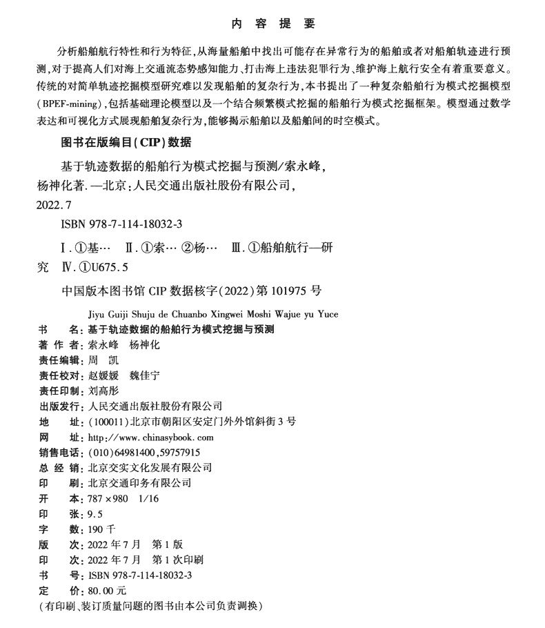 书名:基于轨迹数据的船舶行为模式挖掘与预测