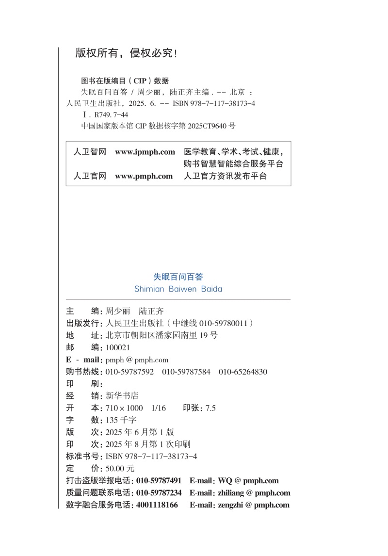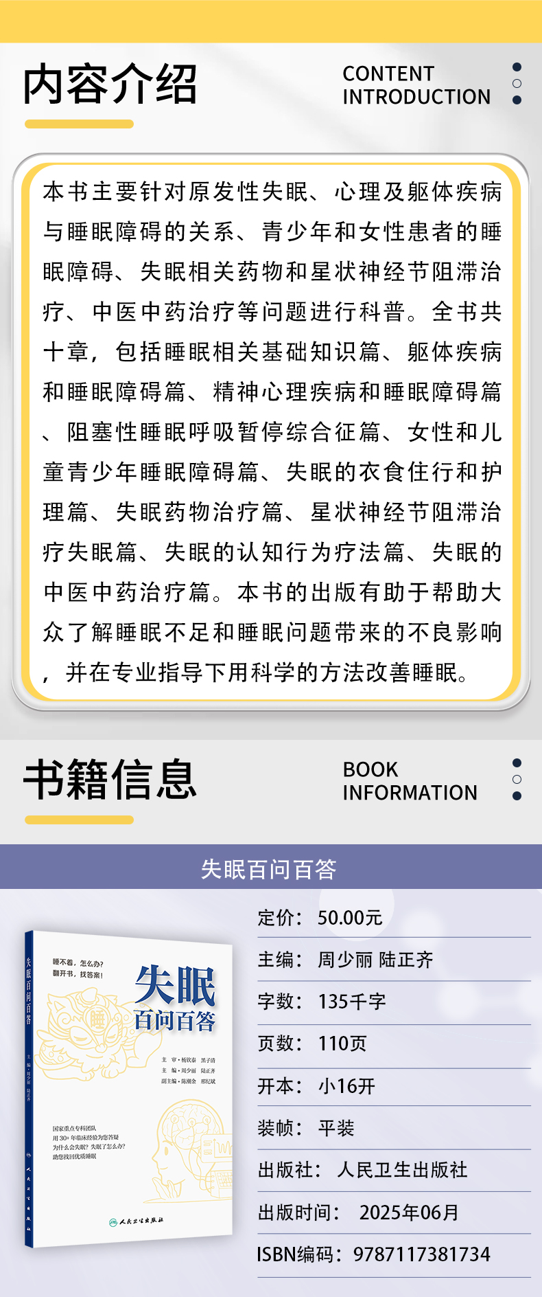 失眠百问百答 周少丽 陆正齐 主编 涵盖睡眠生理机制 躯体及精神疾病相关性 特殊人群睡眠特征等十大知识模块 人民卫生出版社