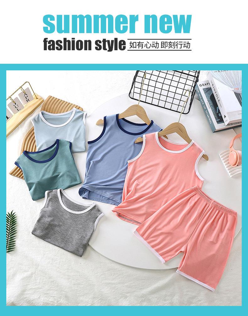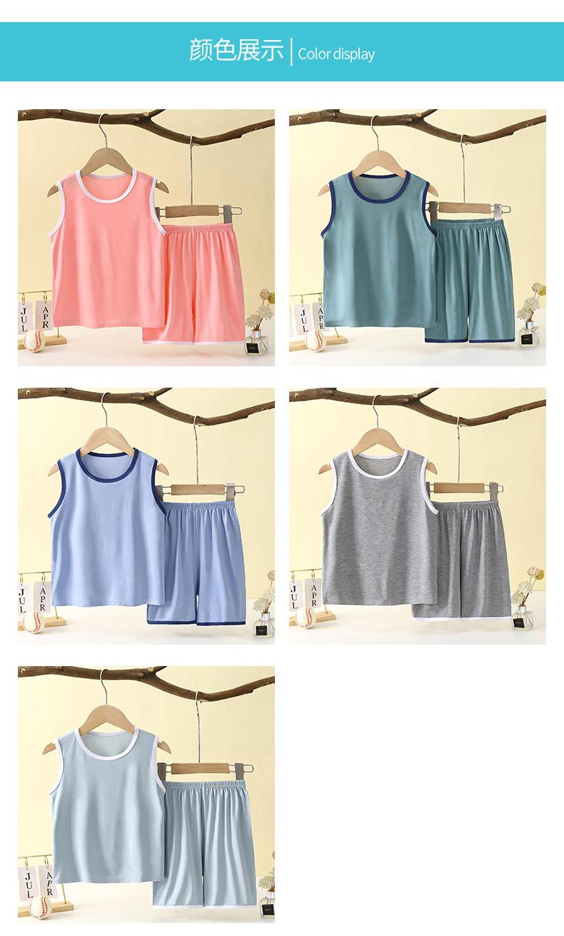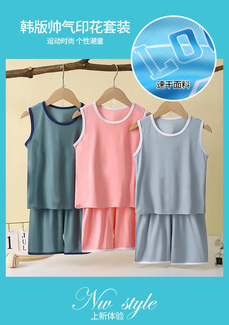 儿童背心套装薄款莫代尔家居男童无袖空调服宝宝冰丝睡衣夏季男孩