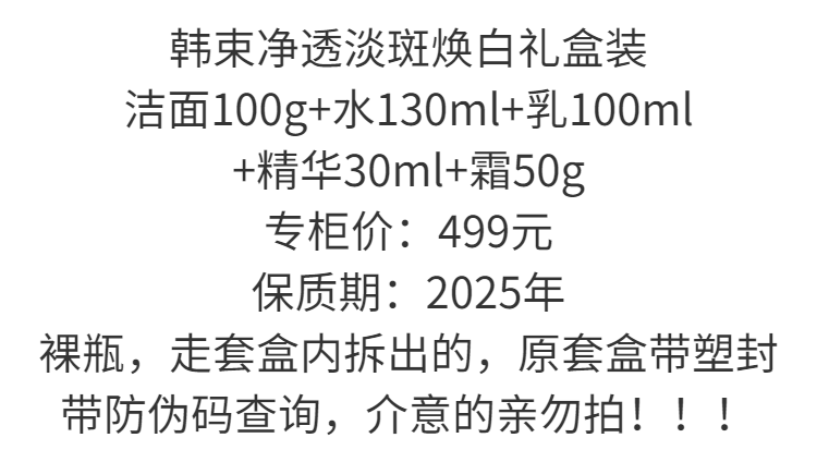 【爆款超低价预售 急单慎拍】韩束净透淡斑焕白护肤品洁面水乳精华霜补水保湿烟酰胺提亮肤色女