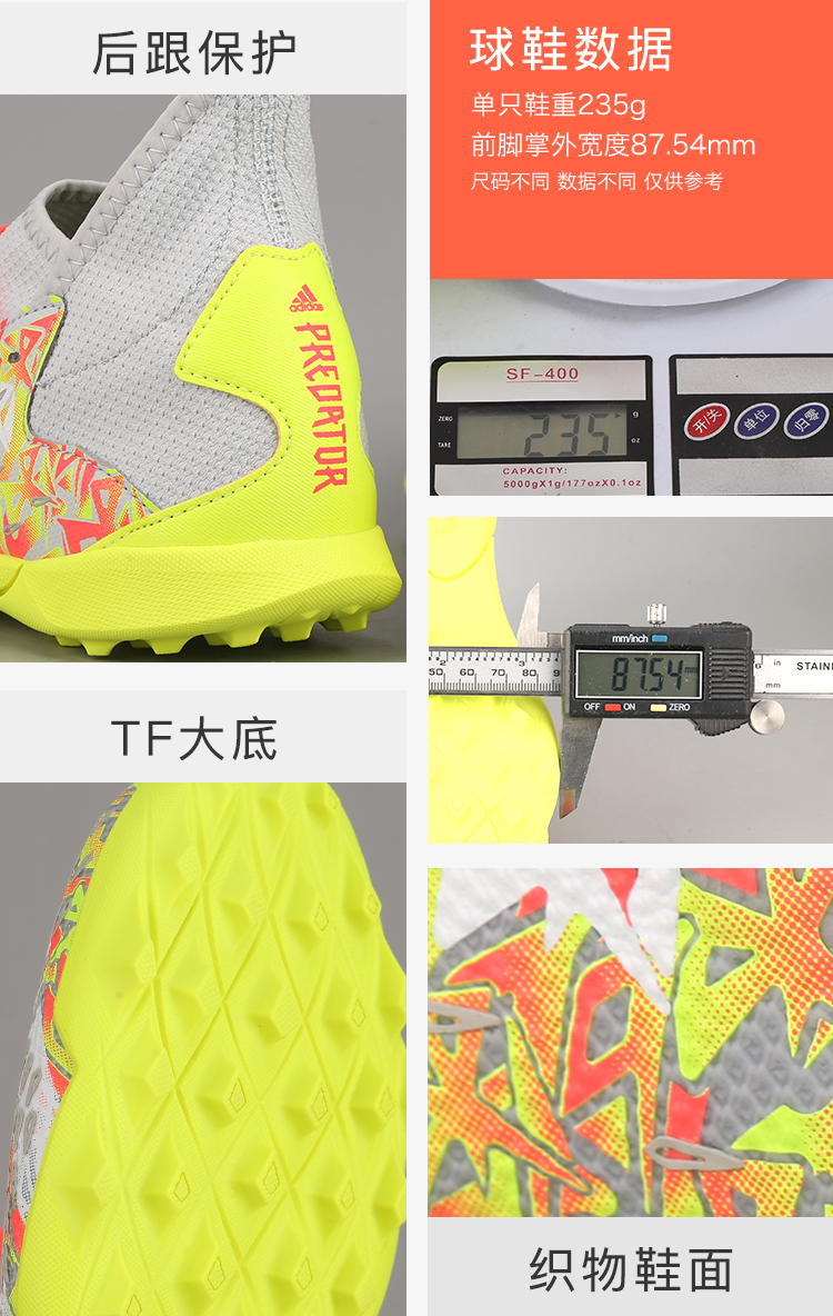 ADIDAS 猎鹰FREAK.3中端TF碎钉人草青少年足球鞋男GZ7095