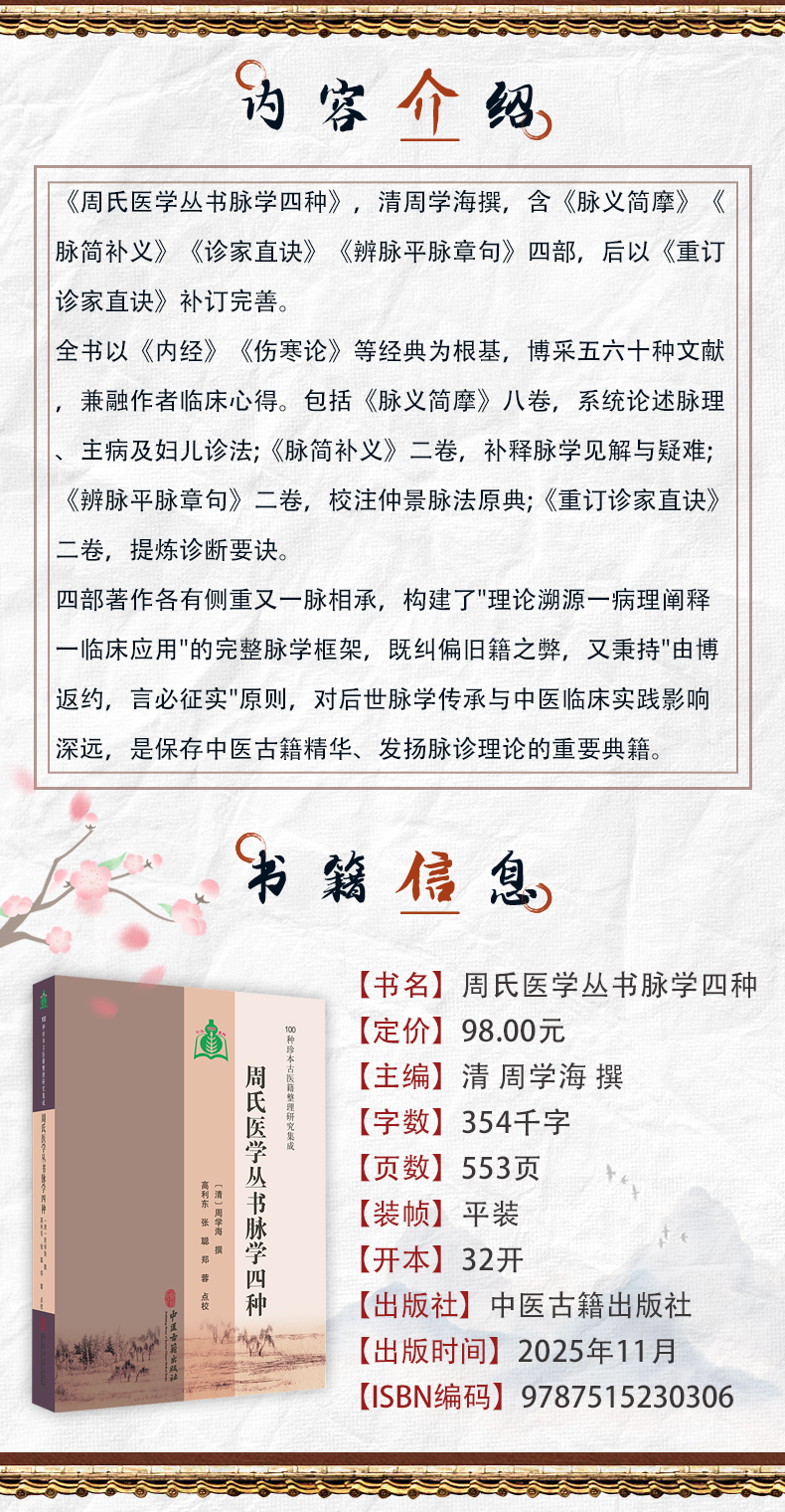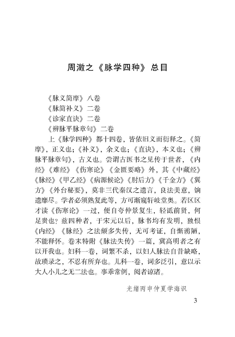 书名:周氏医学丛书脉学四种 100种珍本古医籍整理研究集成