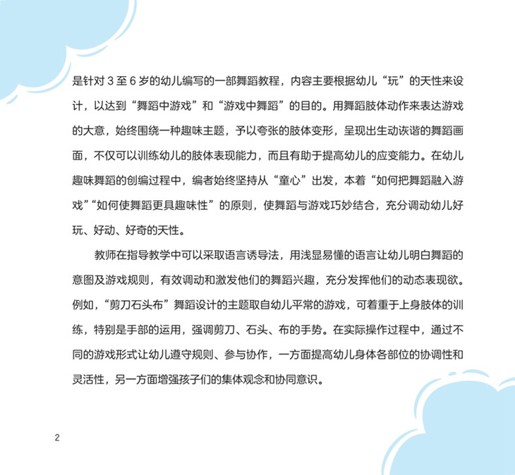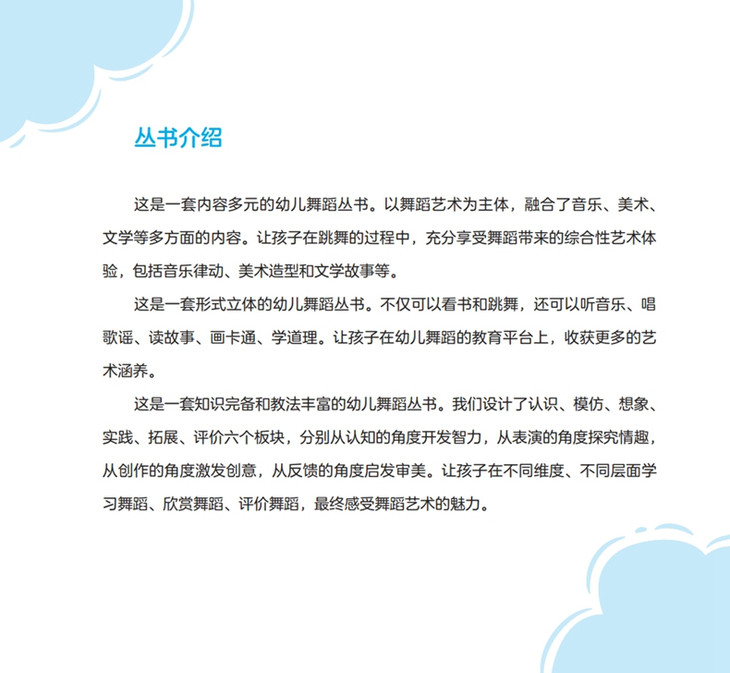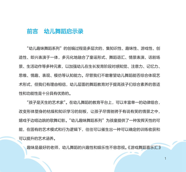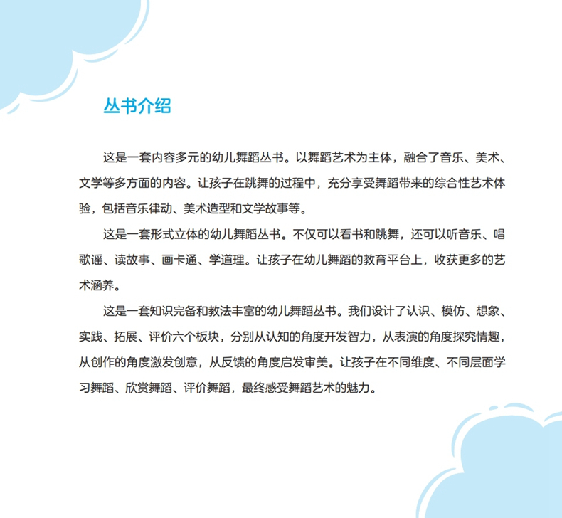 “幼儿趣味舞蹈系列”是一套针对3至6岁幼儿编写的内容多元、设计丰富的系列舞蹈丛书,包括《形象舞蹈创意荟》《游戏舞蹈喜乐汇》《玩具舞蹈总动员》《素质舞蹈训练营》4册,以舞蹈艺术为主体,融合了音乐、美术、文学等多方面的内容,不仅可以看书和跳舞,还可以听音乐、歌谣、读故事、画卡通、学道理,让孩子尽情驰骋于有说有笑的情景之中,嬉戏于边唱边跳的歌舞幻影,充分享受舞蹈带来的综合性艺术体验。参考使用。