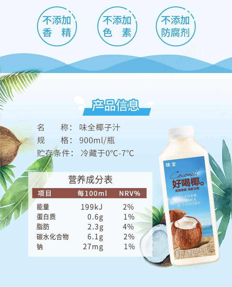 味全好喝椰椰子汁 900ml/瓶