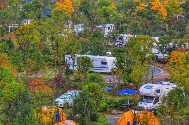 休闲 等功能。营地共 11 个营区共 413 个房车营位,其中 1 至 10 号营区为牵引式房车营地 353 个, 11