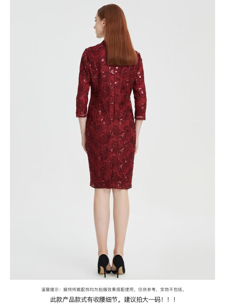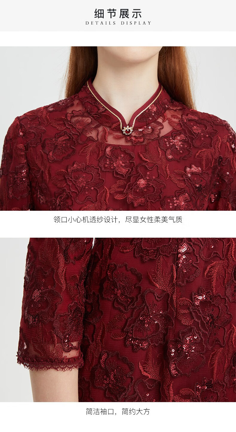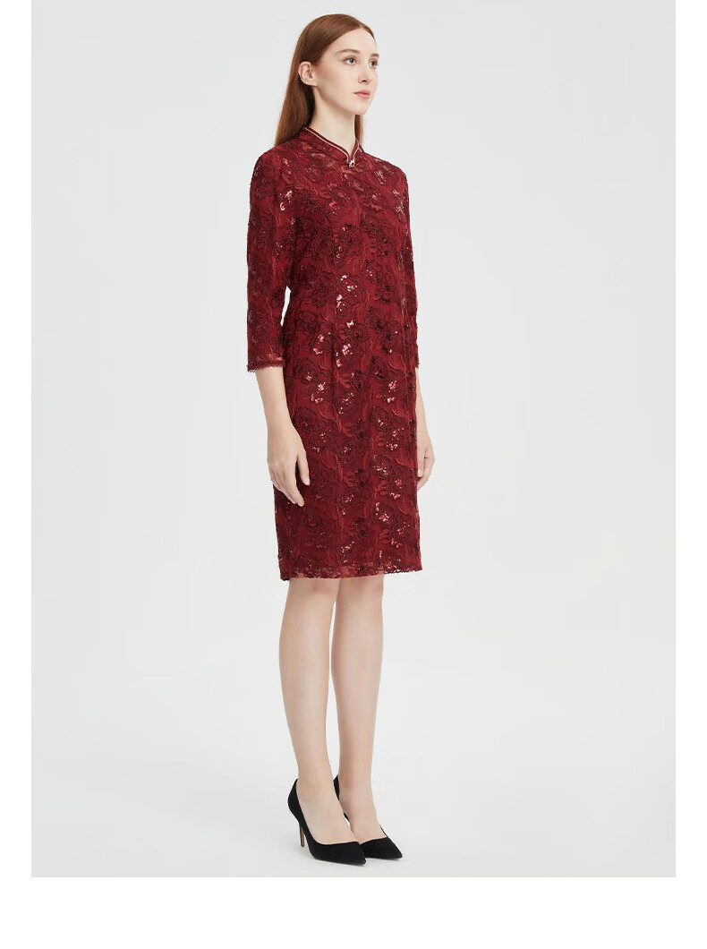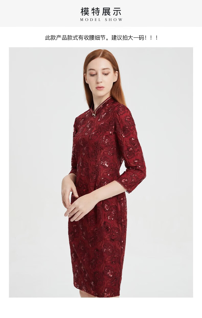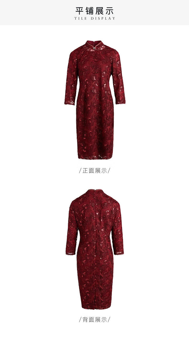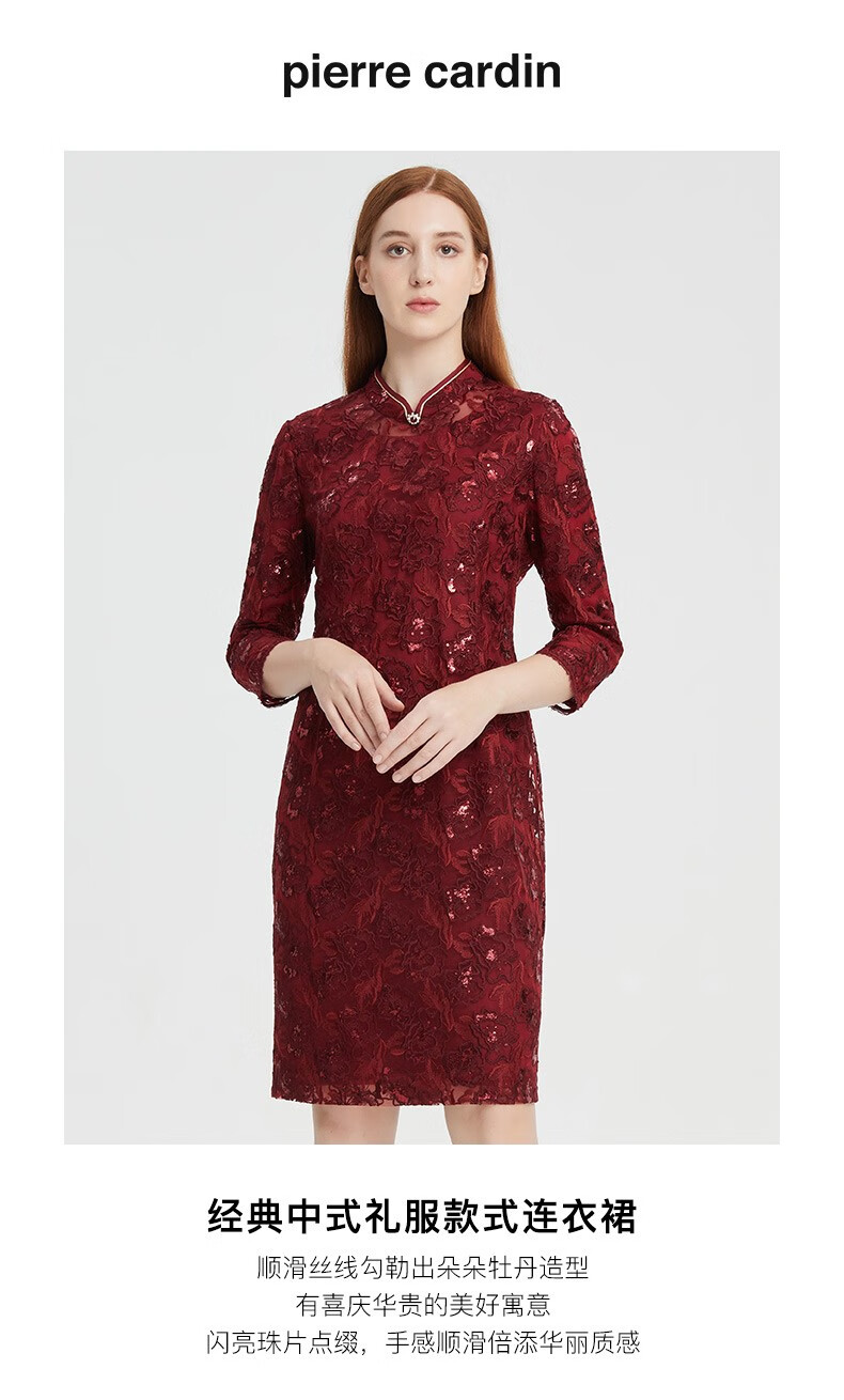 皮尔卡丹女装秋季新款浪漫蕾丝中式旗袍连衣裙P1410E1822R0