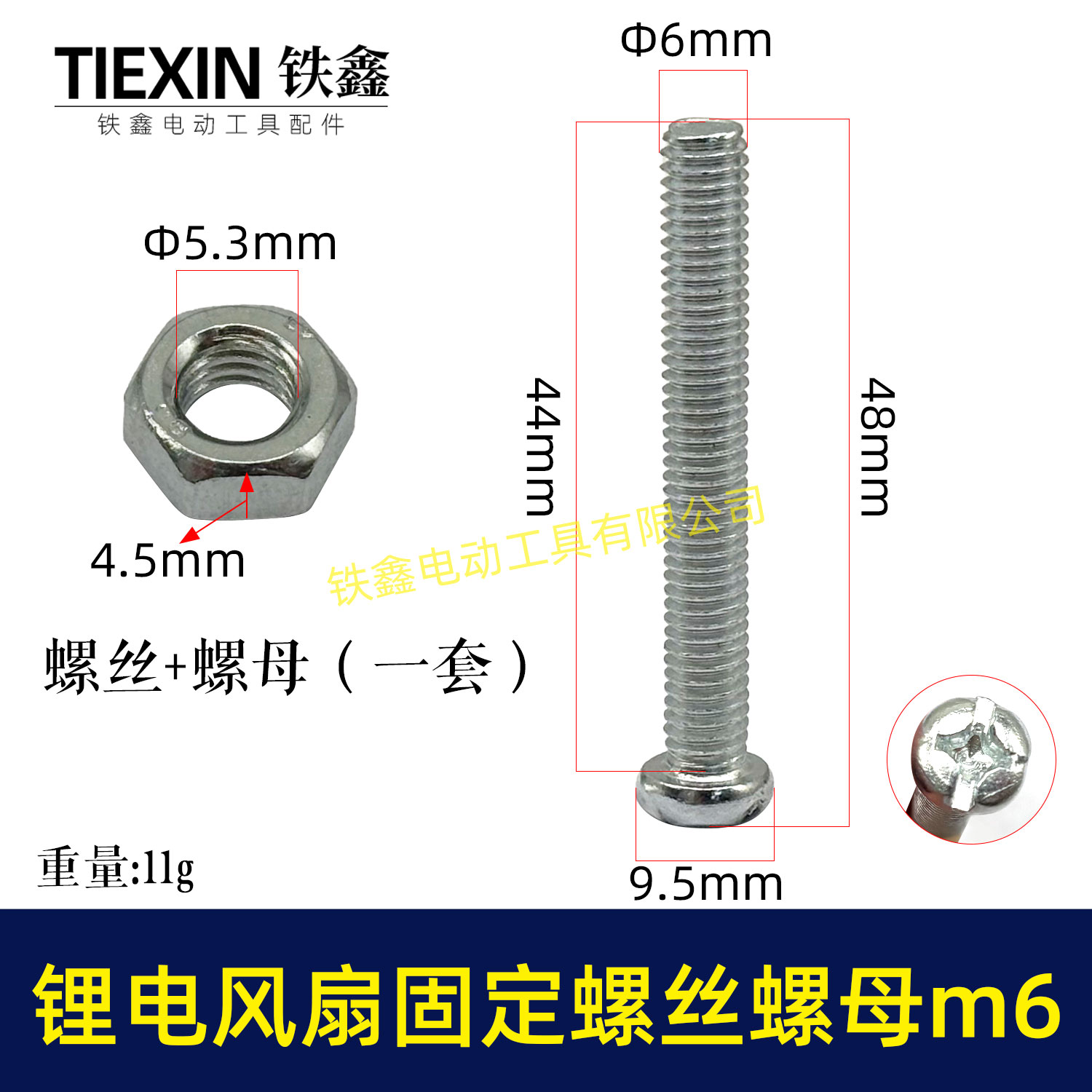 【货号01858】锂电风扇固定螺丝螺母6*40螺丝螺母整套固定螺丝十字螺丝M6螺母
