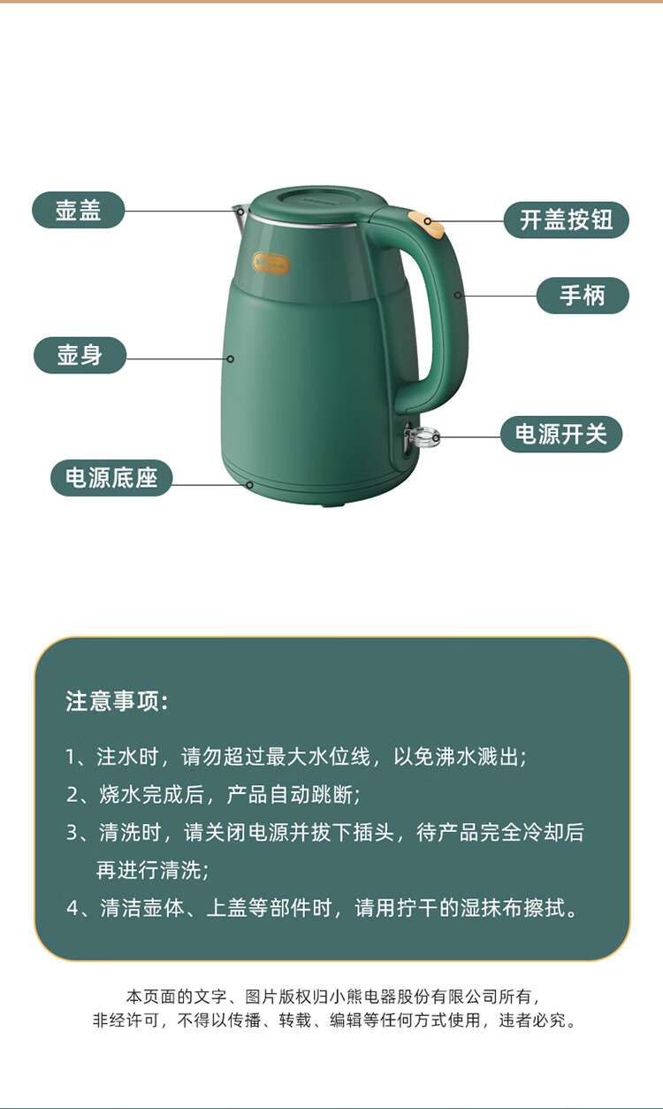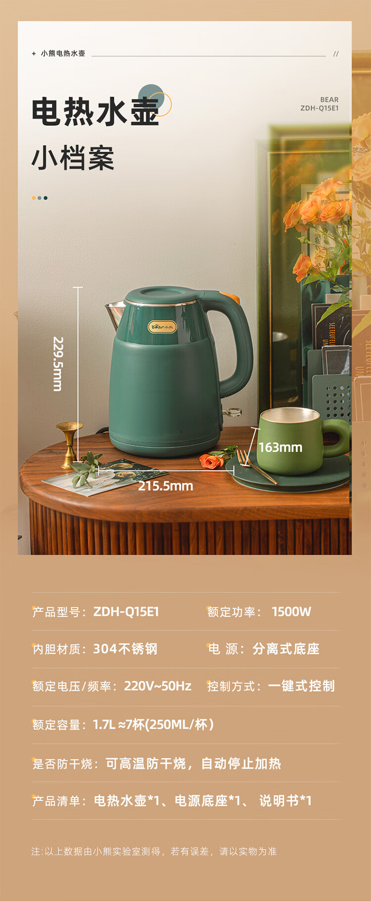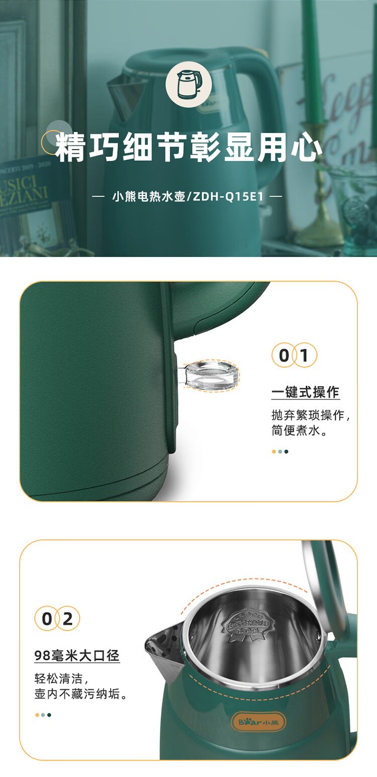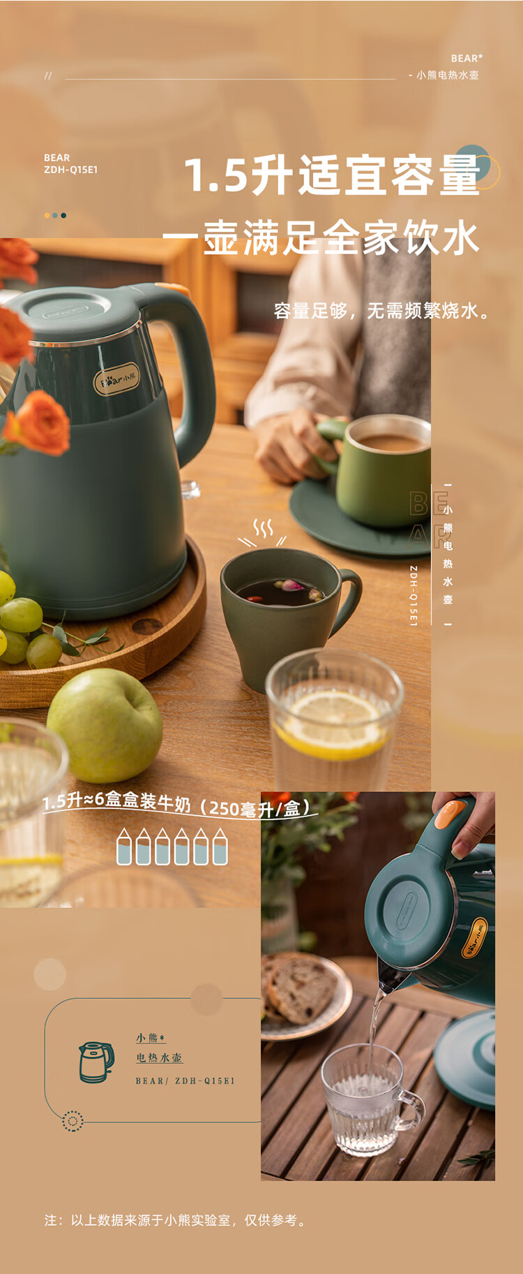 小熊(Bear) 烧水壶电水壶保温电热水壶开水壶1.5L大容量 ZDH-Q15E1