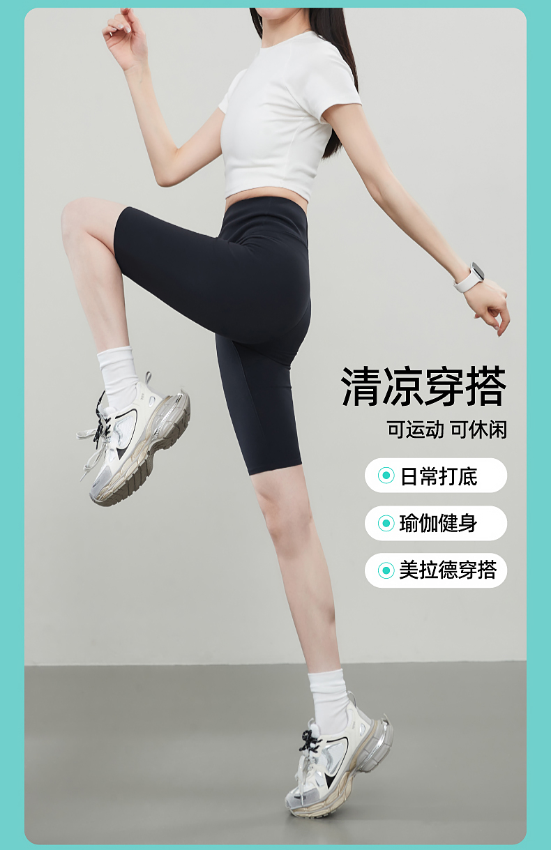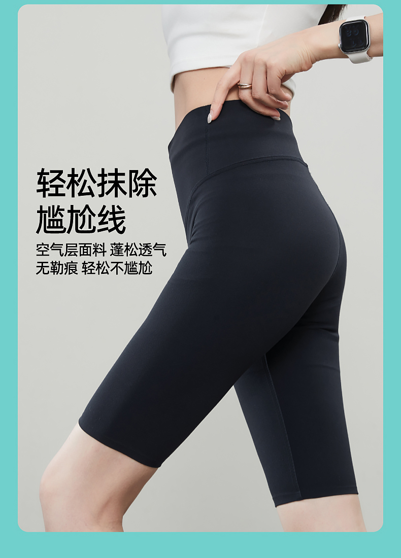 【清凉四分鲨鱼皮裤】逸阳瑜伽运动防走光外穿黑色弹力修身打底1177