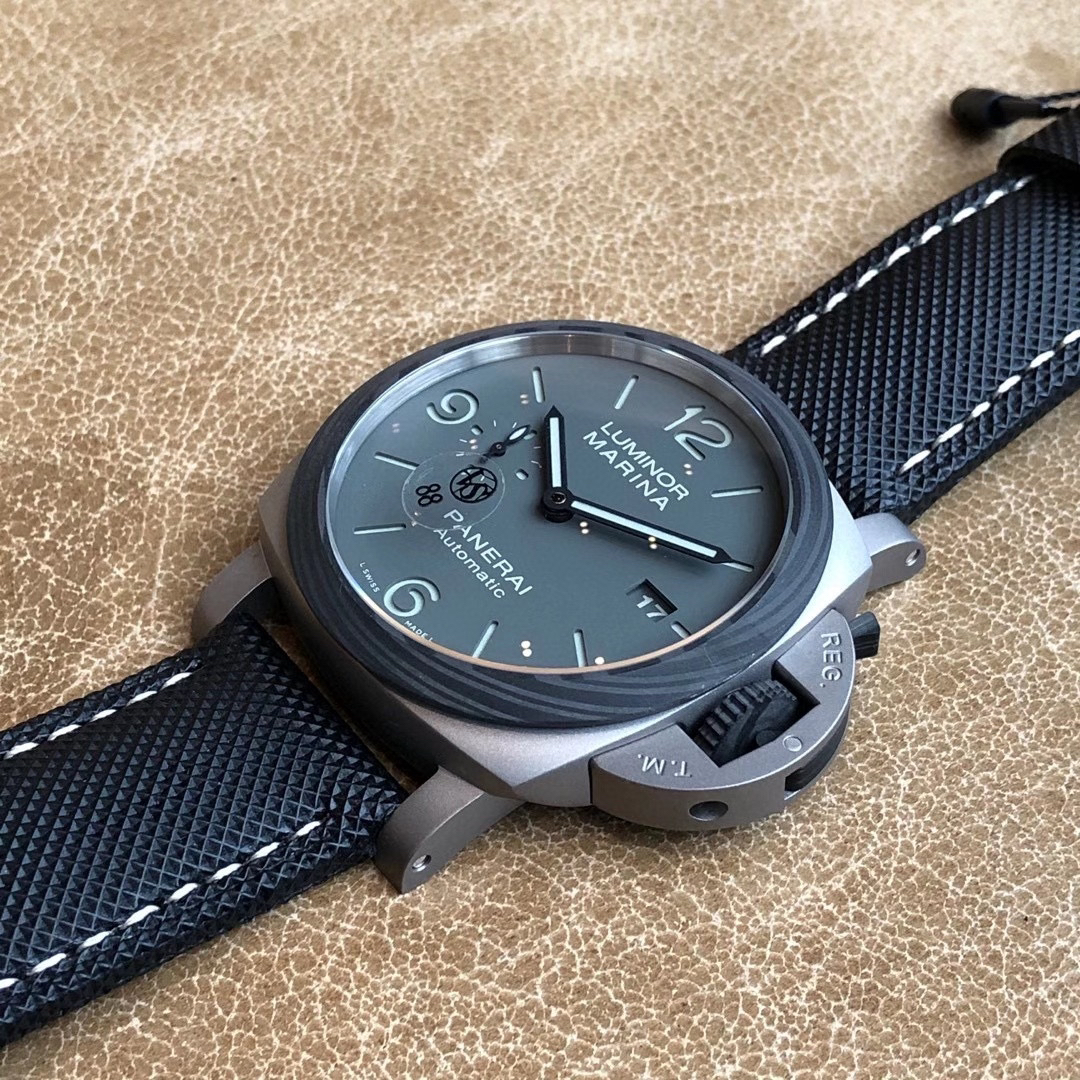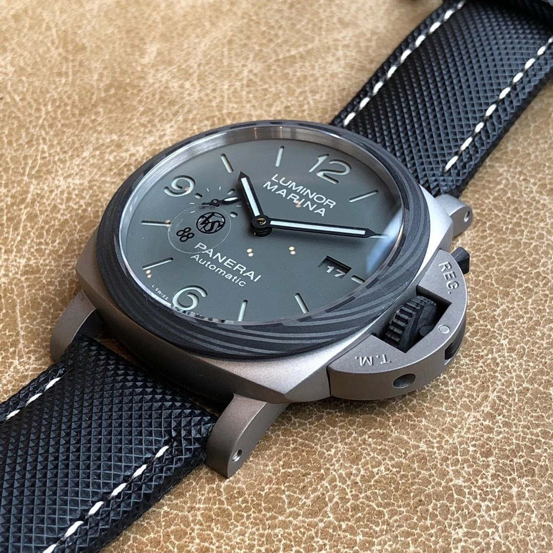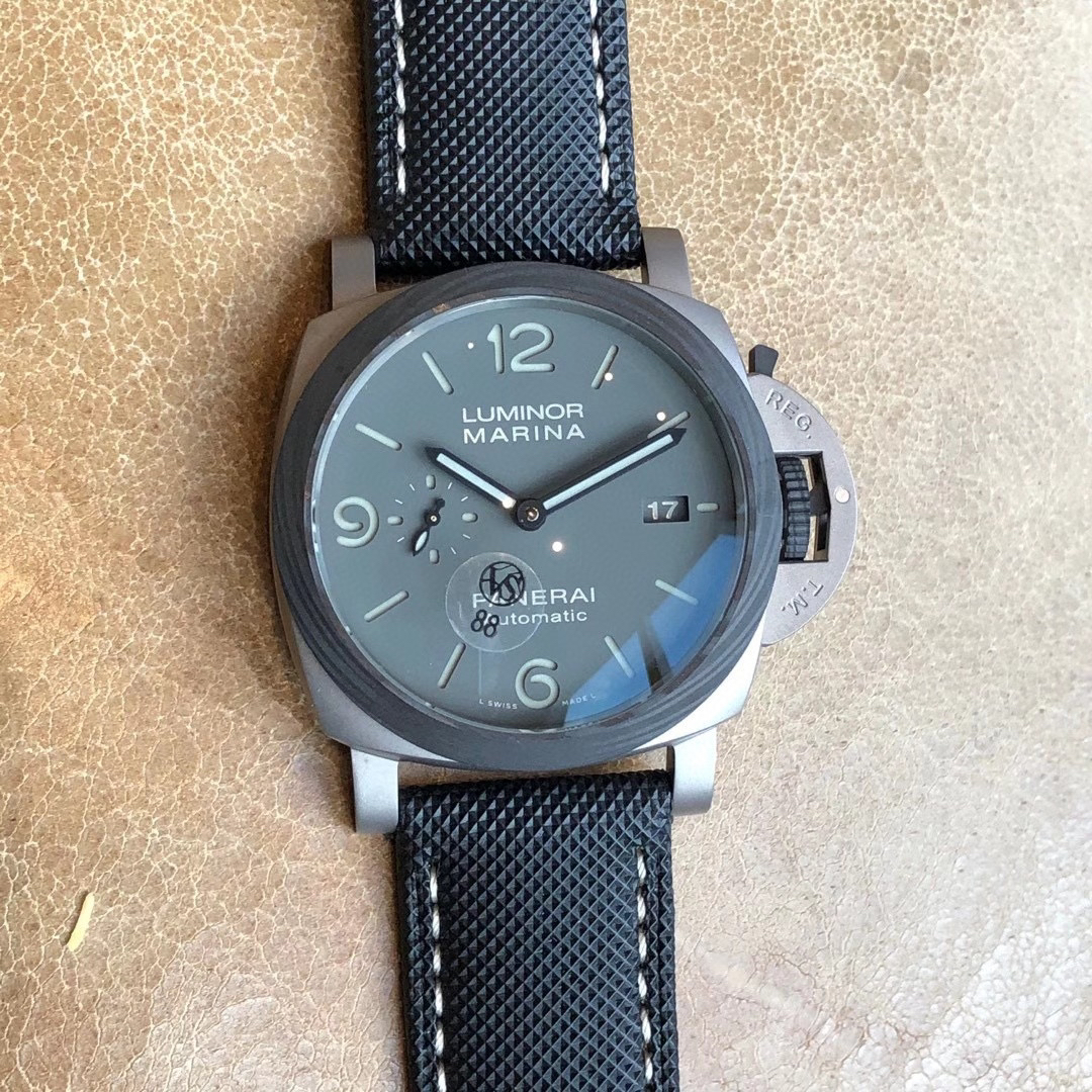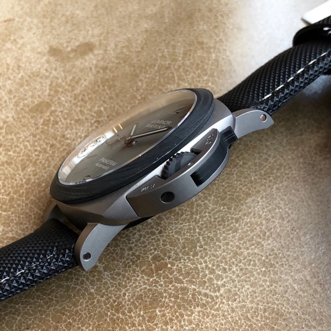VS新品沛纳海Luminor Marina 44MM “烟灰”1662 喷砂钛壳工业感十足护侨把 圈口 把头深色碳纤维 色调层次高级上档次,与1661 相似却比1661 更闷骚,实表比图片好看。