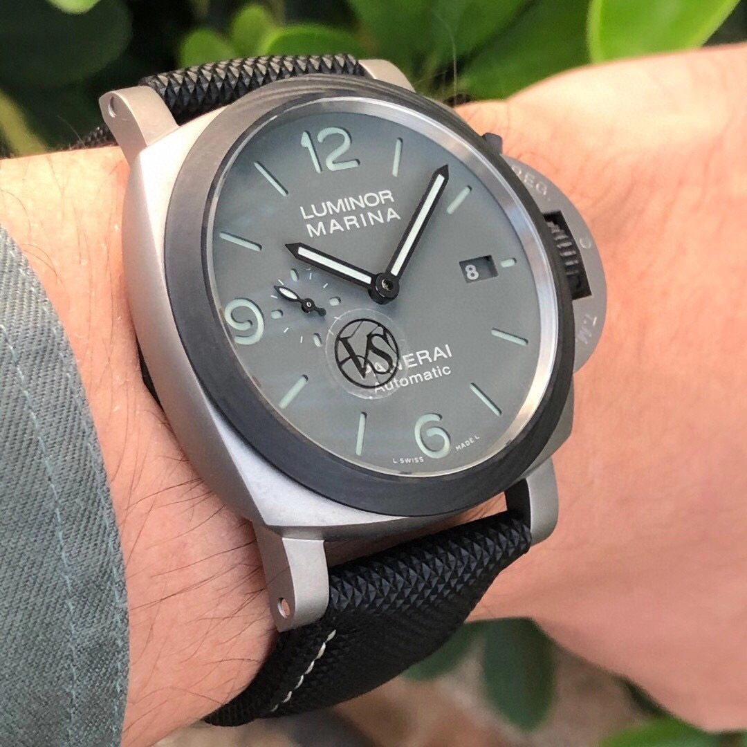 VS新品沛纳海Luminor Marina 44MM "烟灰"1662 喷砂钛壳工业感十足护侨把 圈口 把头深色碳纤维 色调层次高级上档次,与1661 相似却比1661 更闷骚,实表比图片好看。