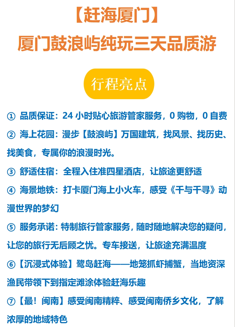 【赶海厦门】厦门鼓浪屿纯玩双动3天游