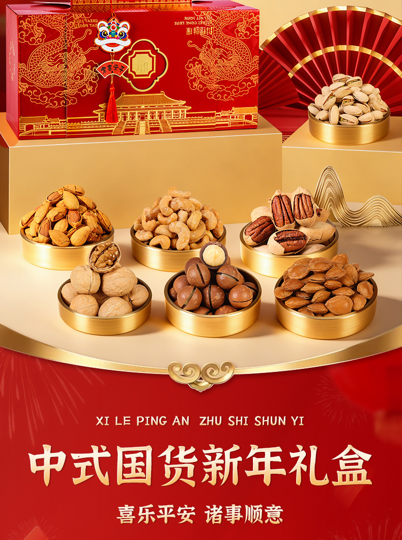 【年货好礼❗️鸿福祥瑞坚果礼盒】甄选品质原料,送礼大气更有面,混合坚果组合炒货干果,开心果夏威夷果,坚果礼盒装年货送礼佳品L