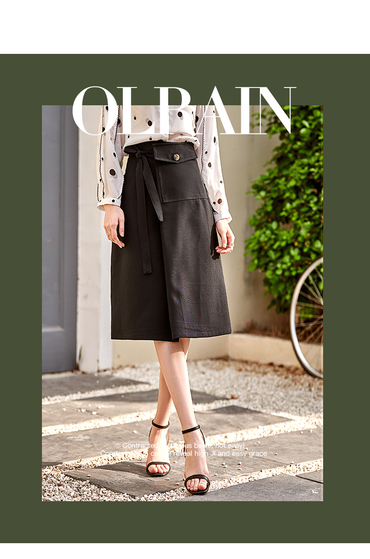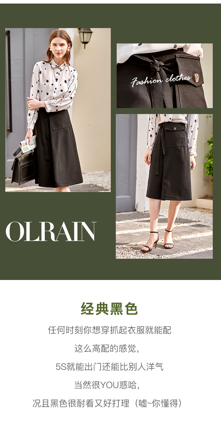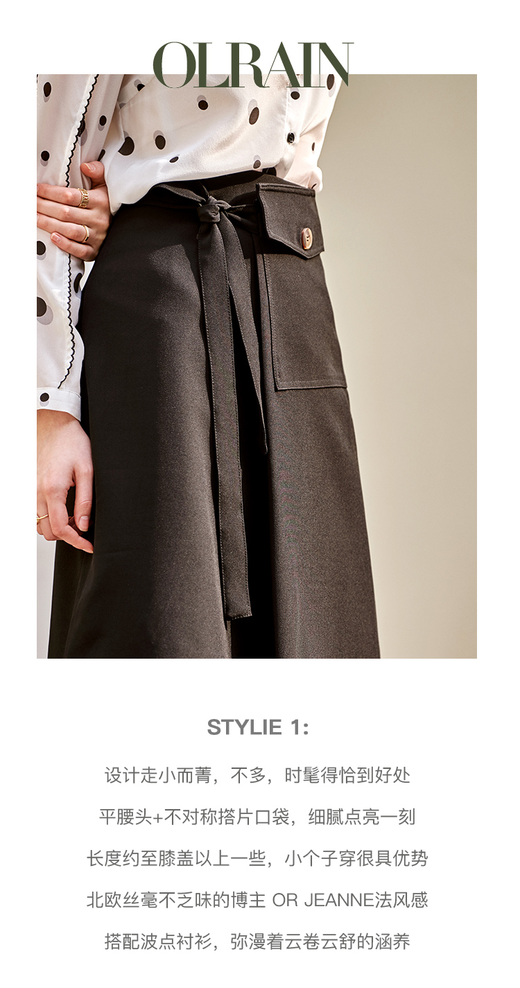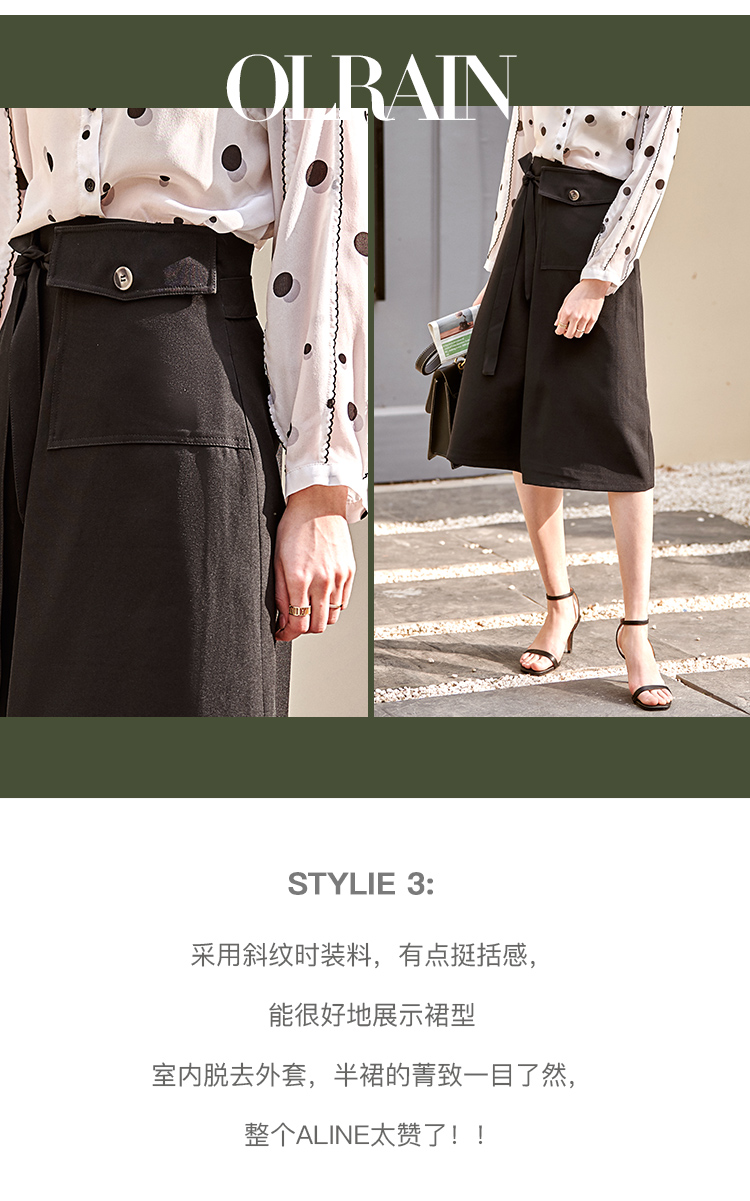 欧芮儿黑色半身裙春季新款高腰显瘦时髦经典气质设计感A字中长裙
