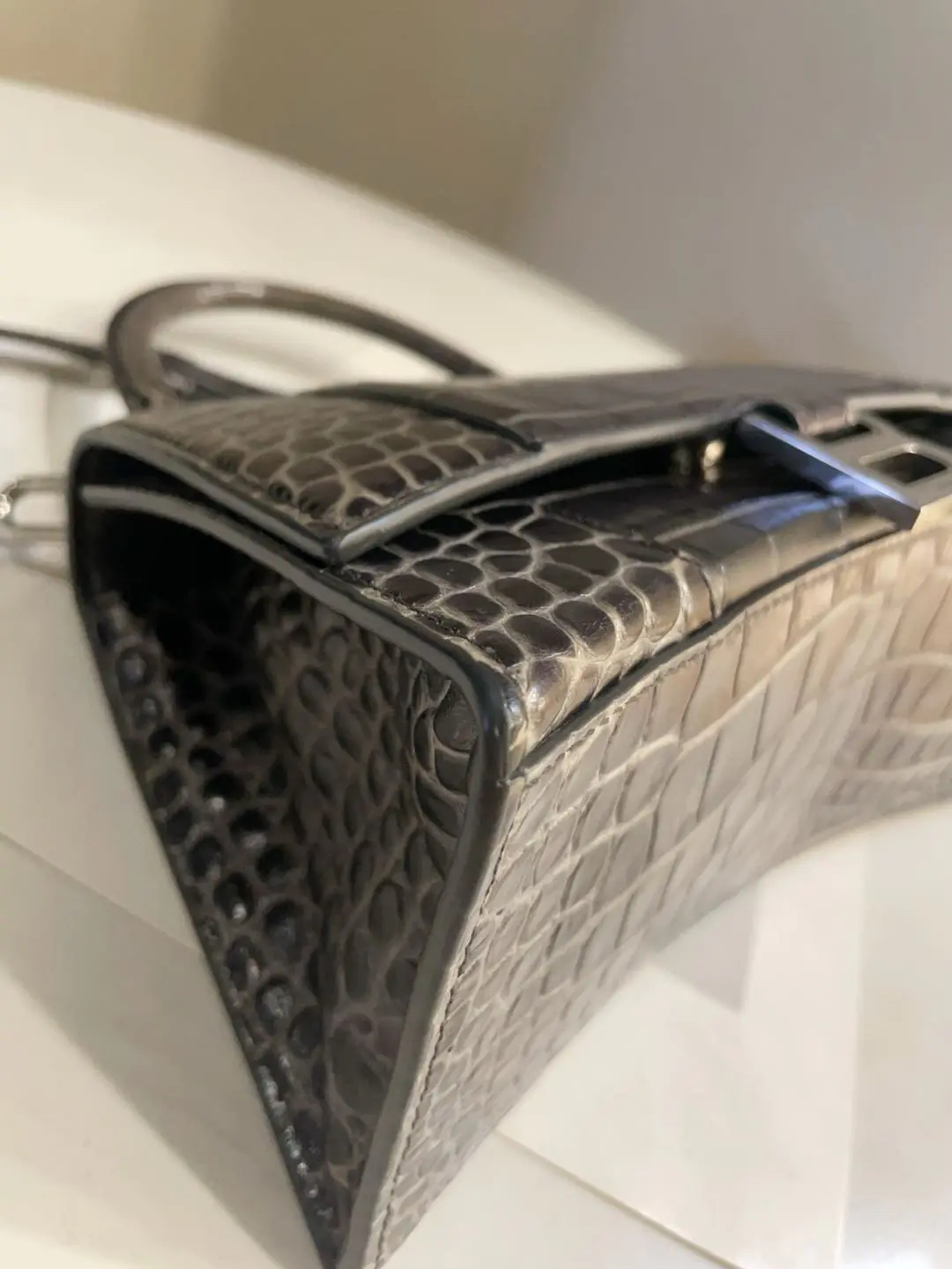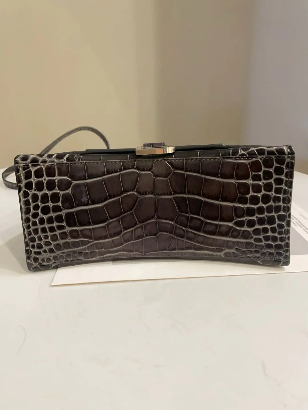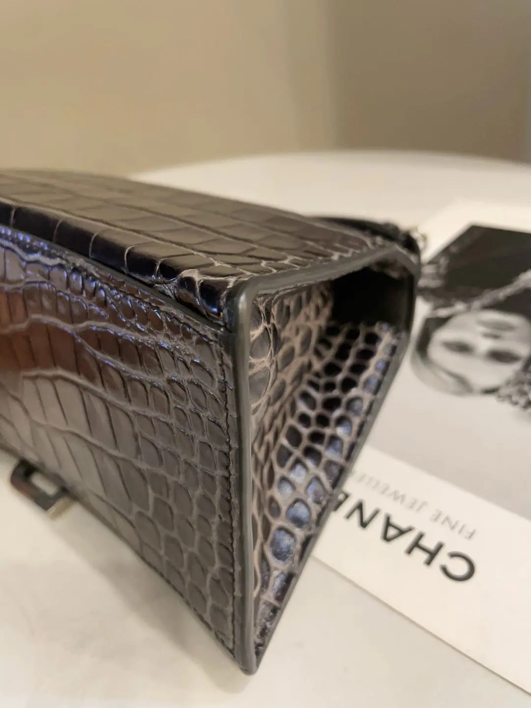 正品二手 巴黎世家 s号 灰黑色 鳄鱼压纹 牛皮 沙漏包🪢95新 22x13 。配件:肩带。内翻盖正常使用痕迹。拍照绝美