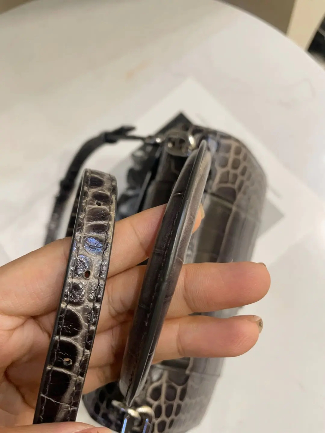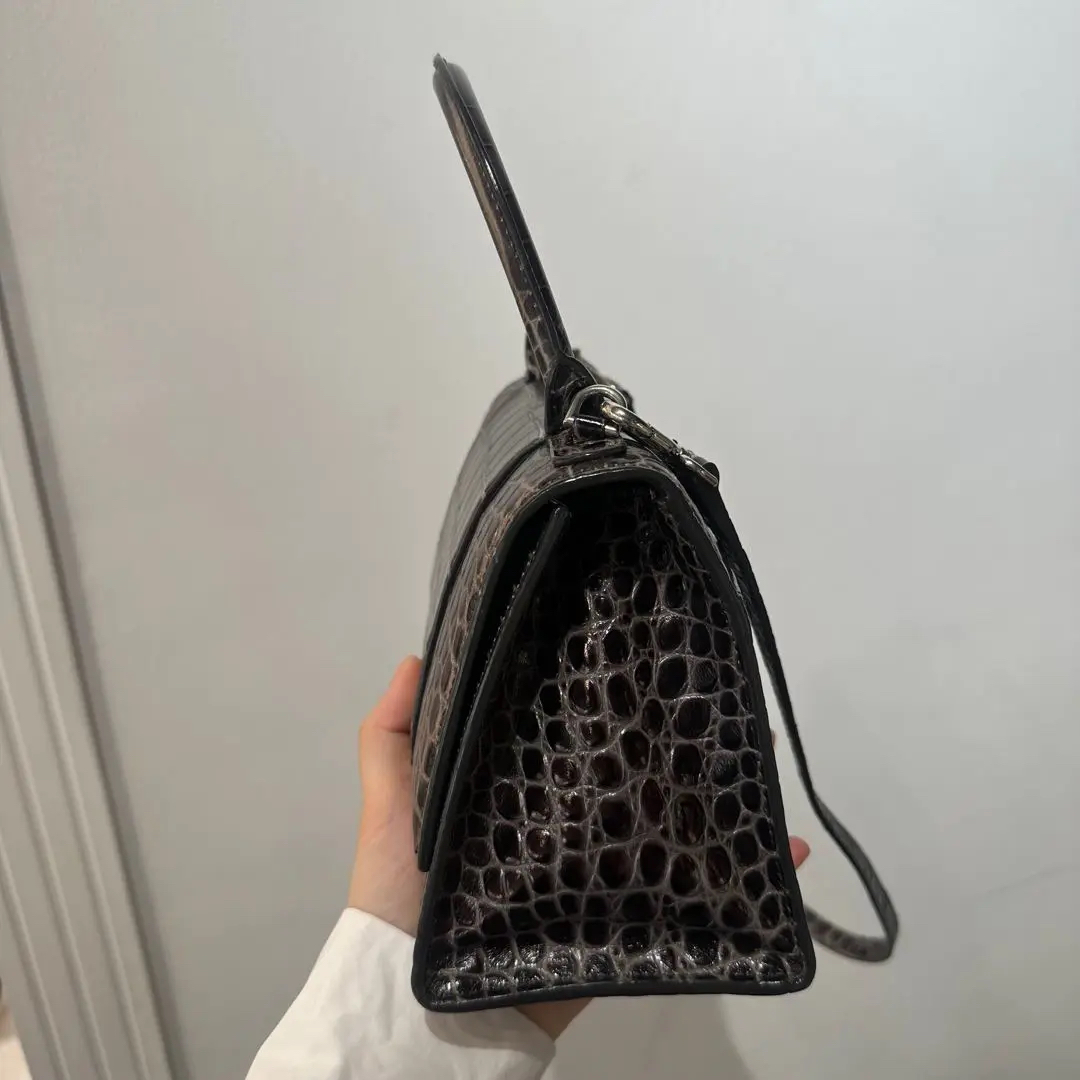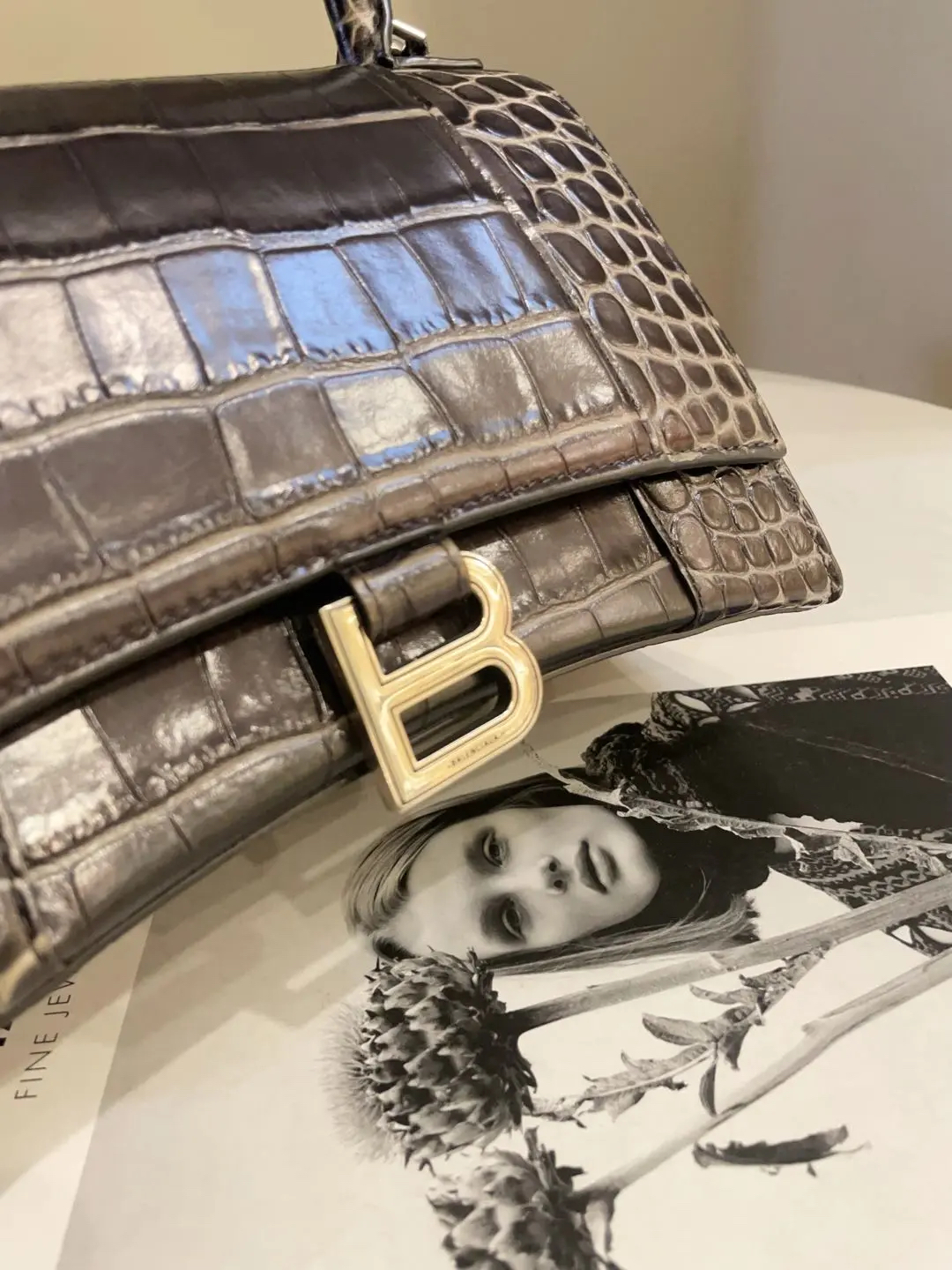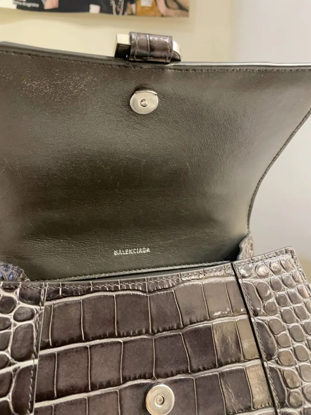 正品二手 巴黎世家 s号 灰黑色 鳄鱼压纹 牛皮 沙漏包🪢95新 22x13 。配件:肩带。内翻盖正常使用痕迹。拍照绝美