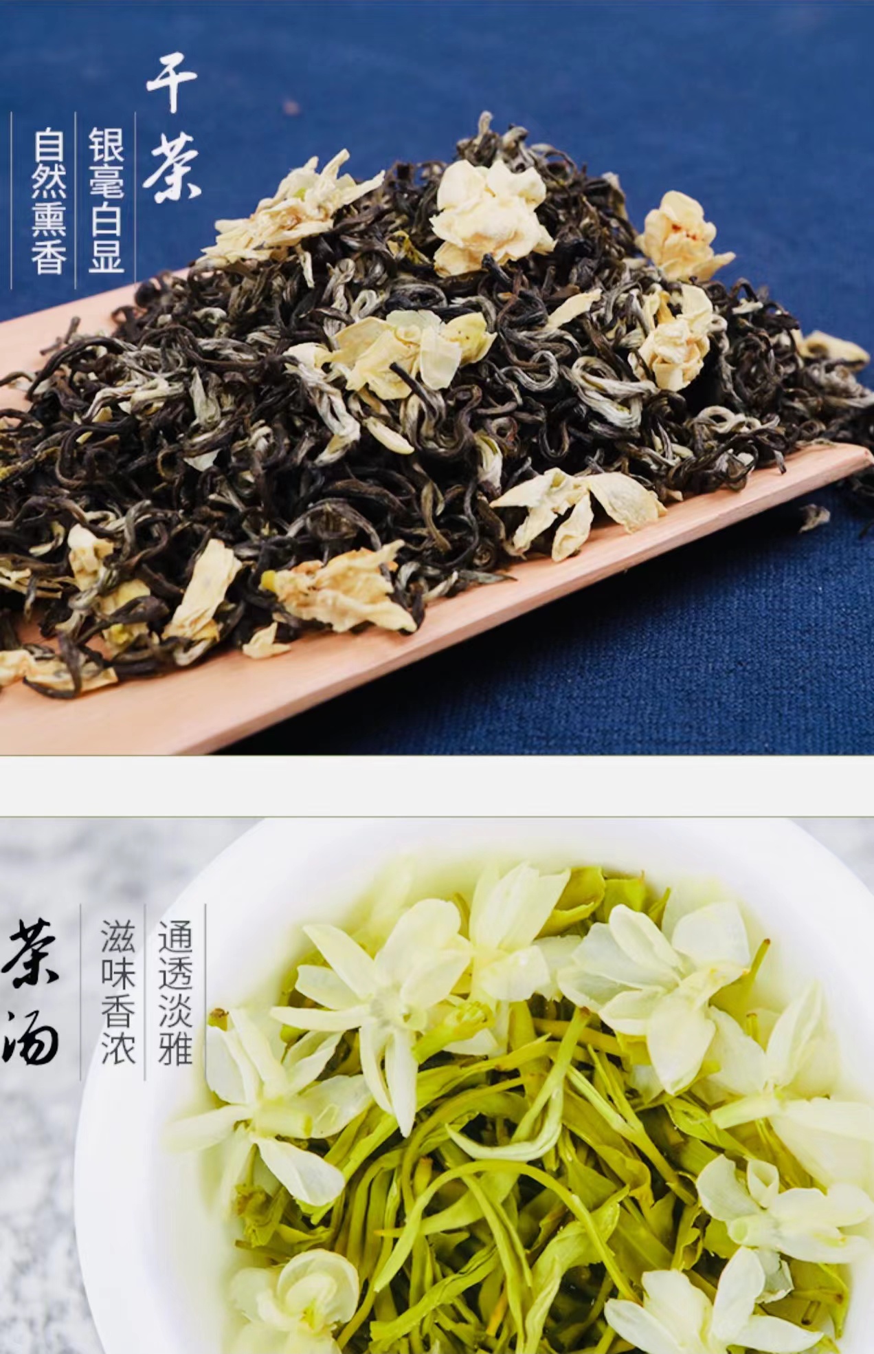 采用头春高山小白茶为底茶,使用伏天茉莉鲜花多次窨制,手工大量炒花,这样做不仅茶的花香味更足,还能让茶味更醇厚,花香与茶味完美融合。