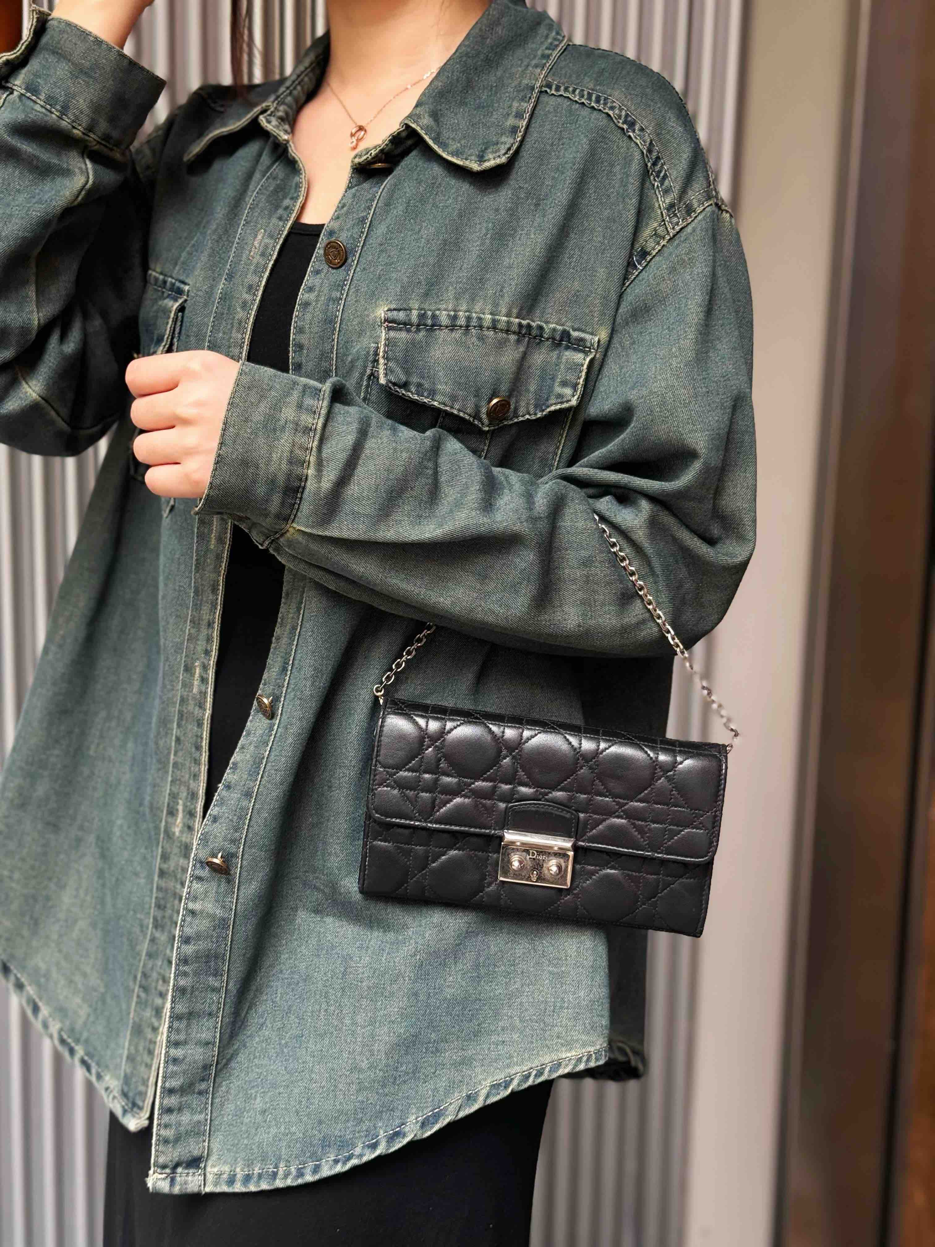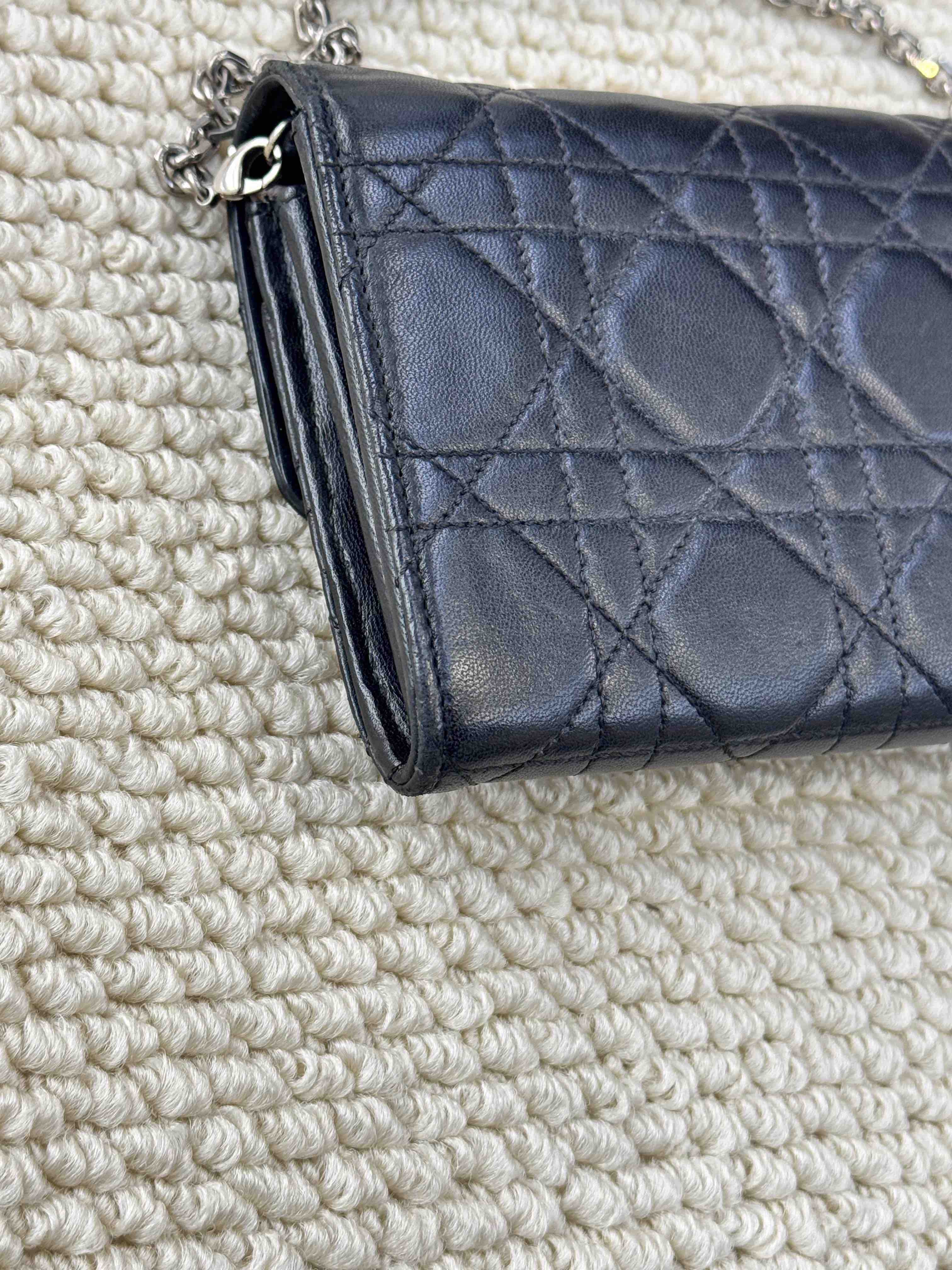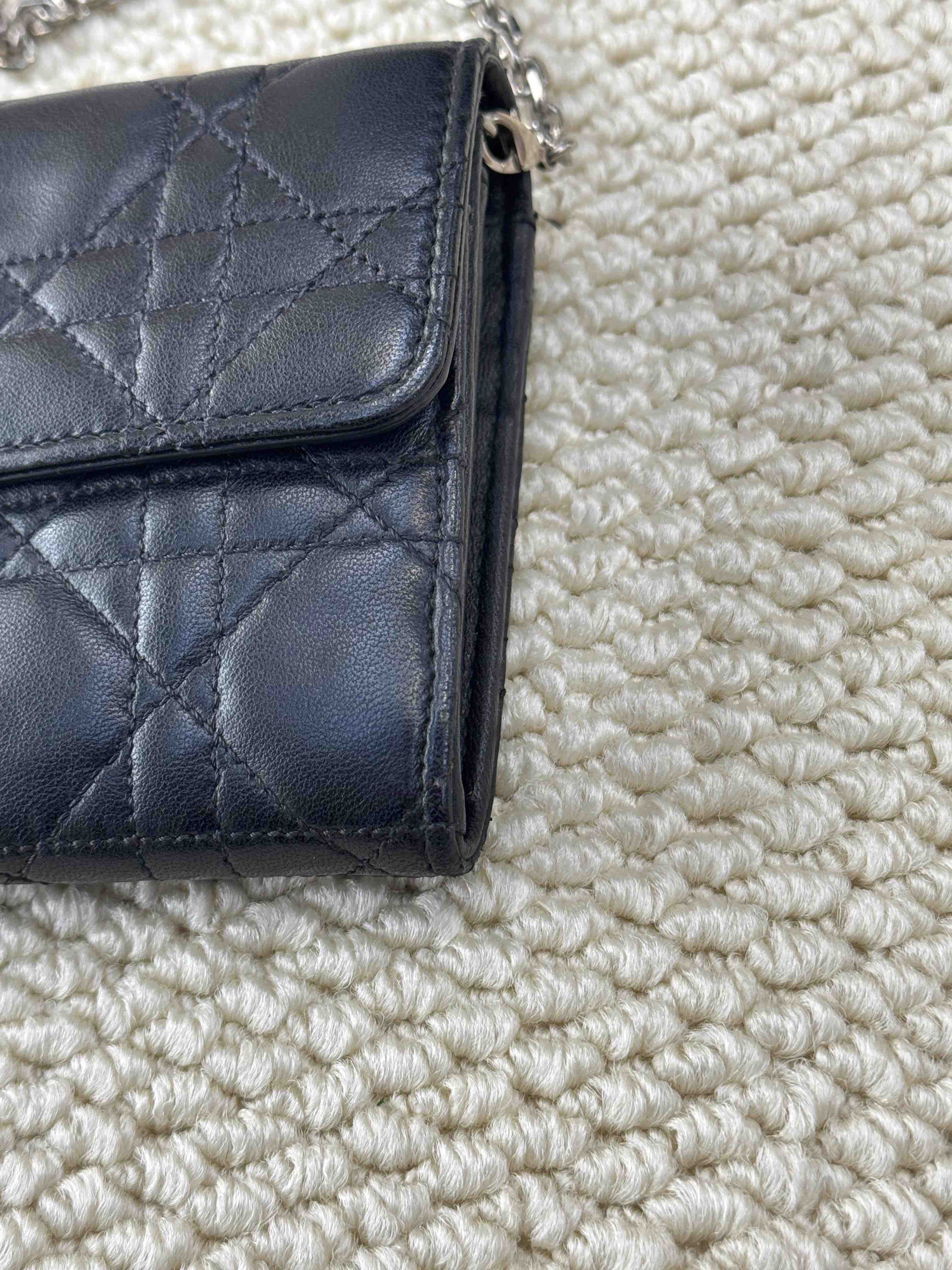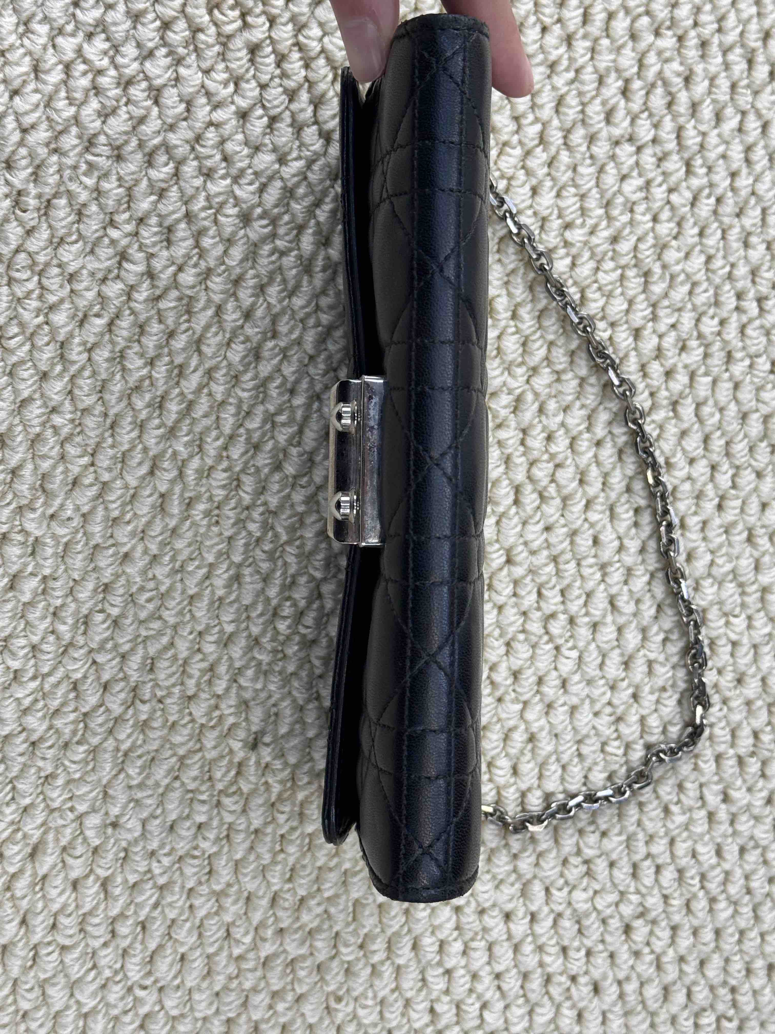 【商品详情】正品二手 Dior 黑银 羊皮 woc 链条包⚖️ 93新 19×11 配件:链条 。包包底角有磨损 五金处有使用痕迹 内里有轻微霉点和使用痕迹 性价捡漏款