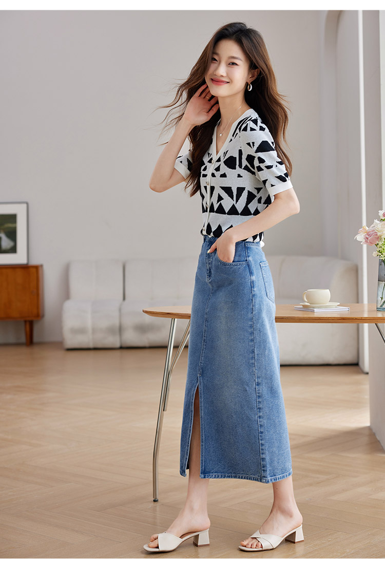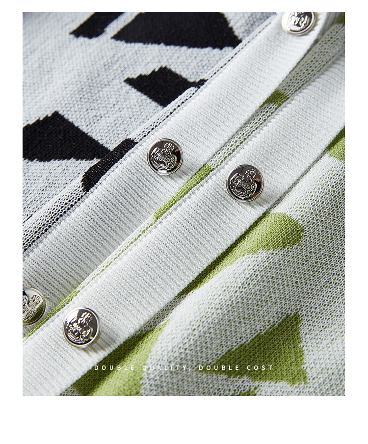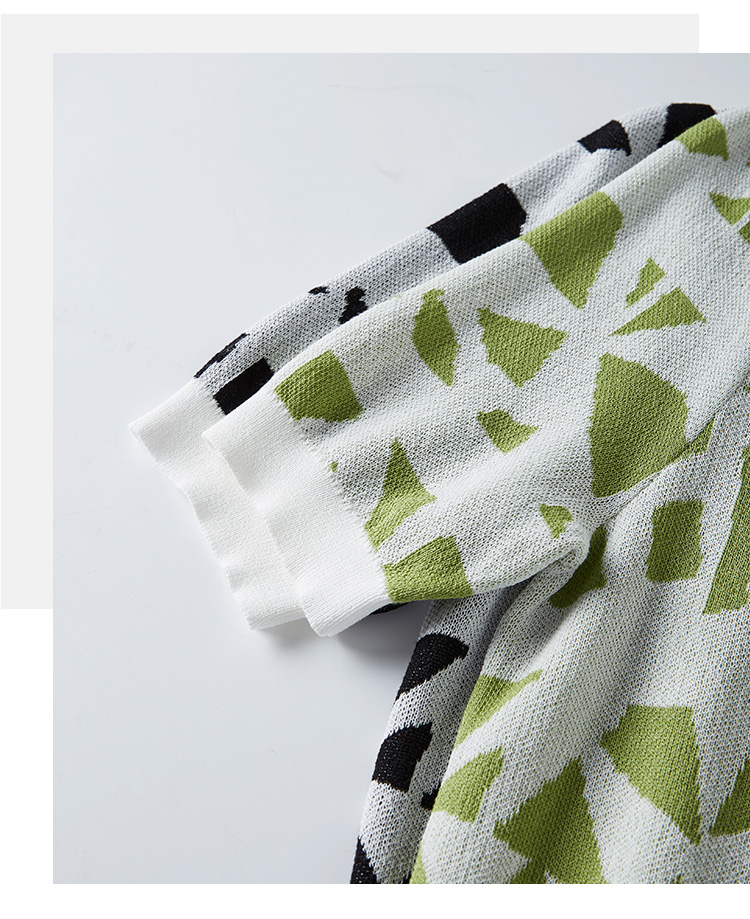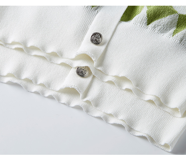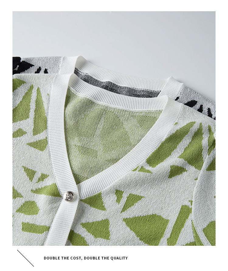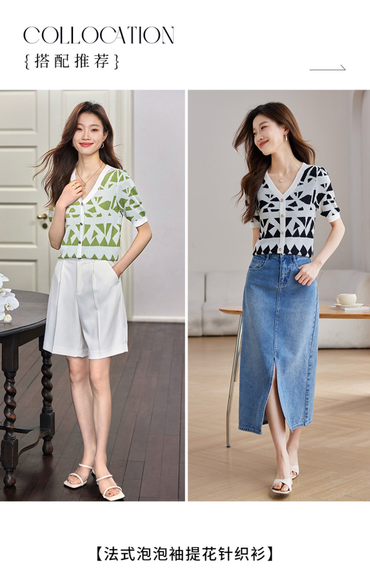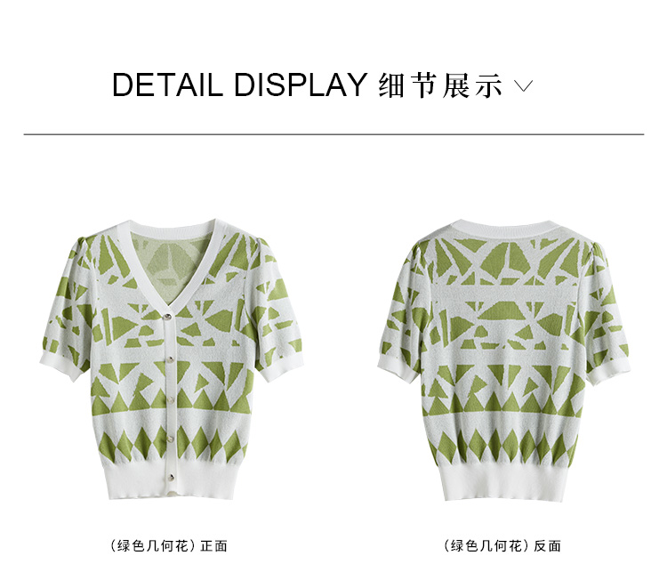 【专属特价】熙世界小香风撞色提花V领针织衫短袖薄款冰丝上衣2025夏装新款