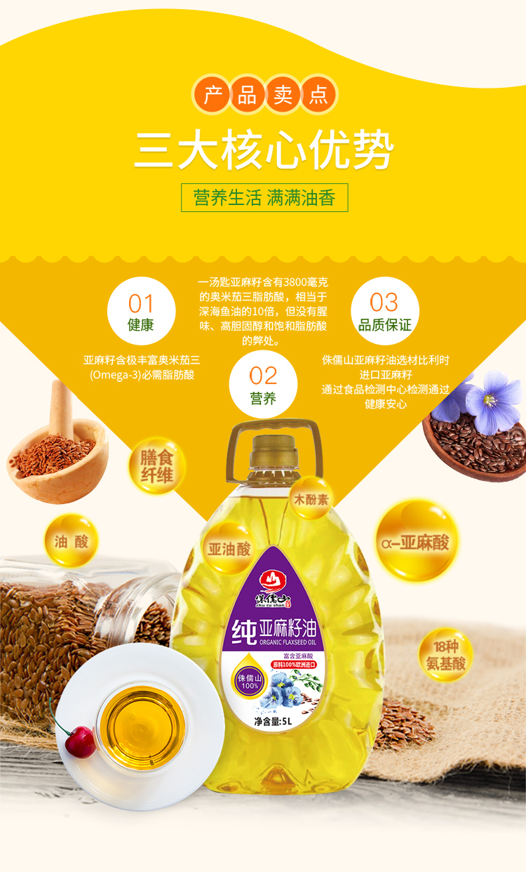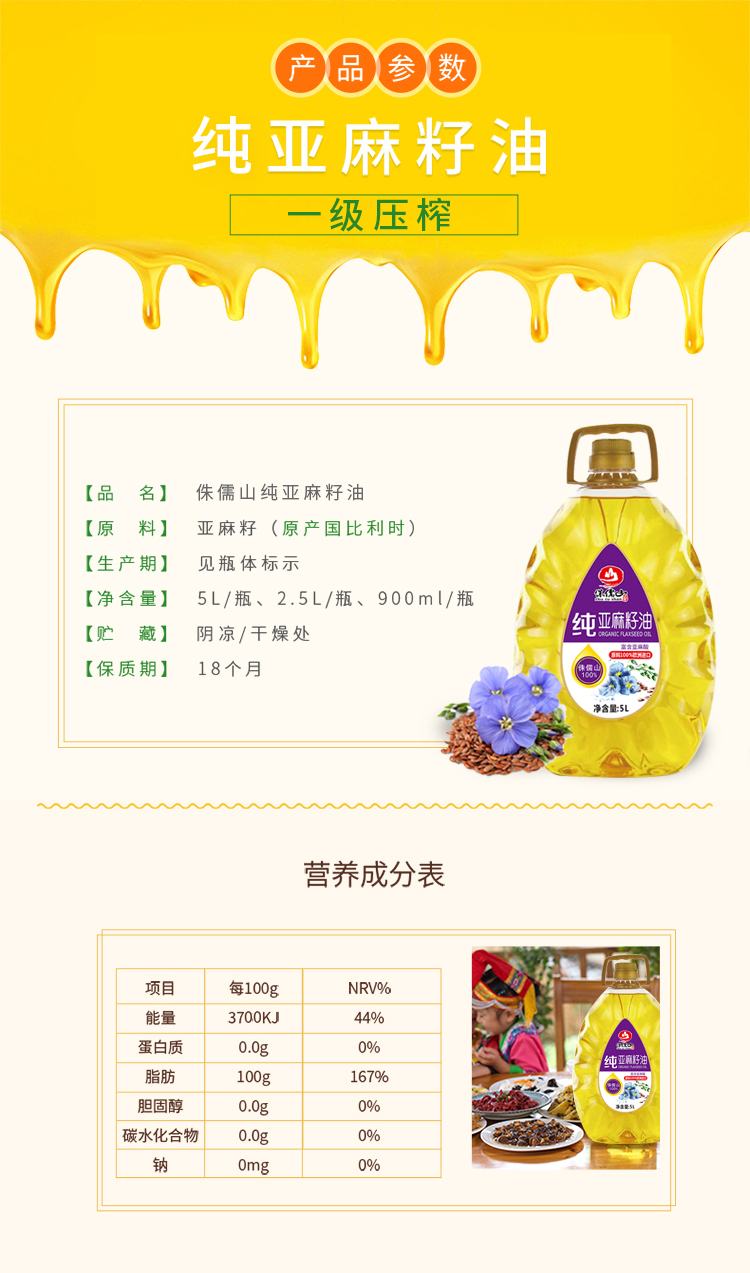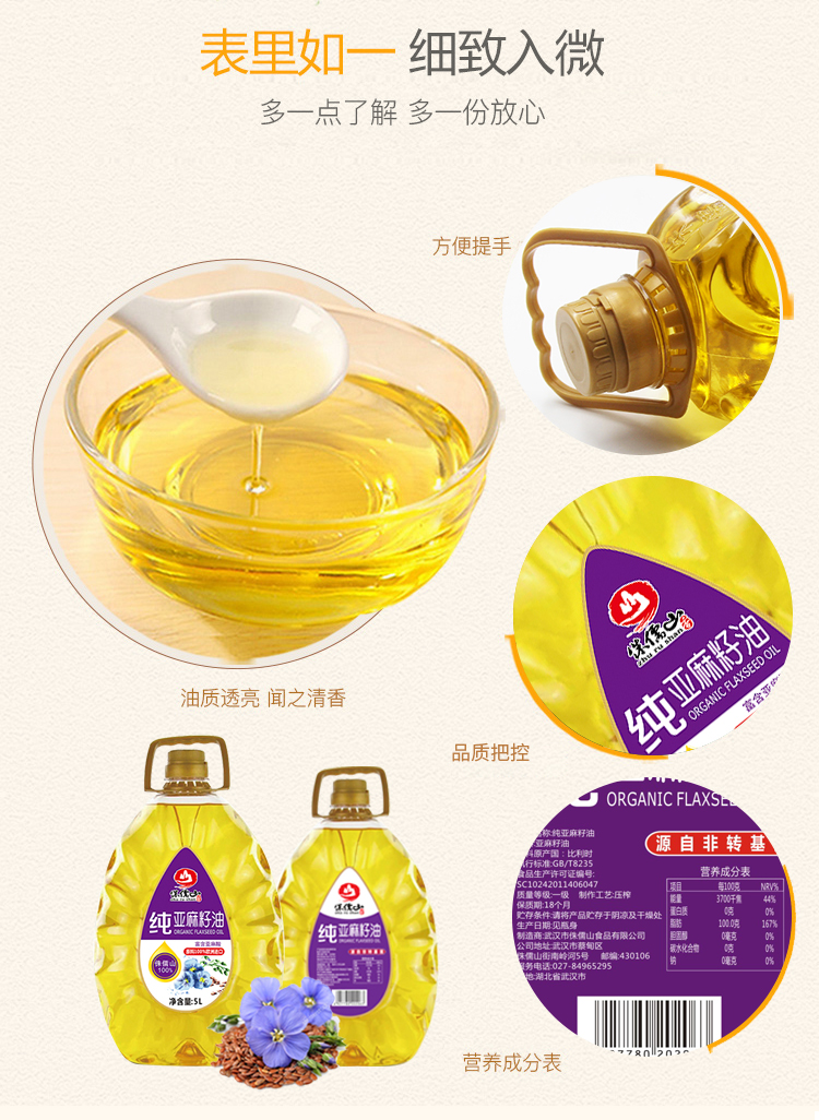 武汉侏儒山亚麻籽油5L/亚麻籽油2.5L