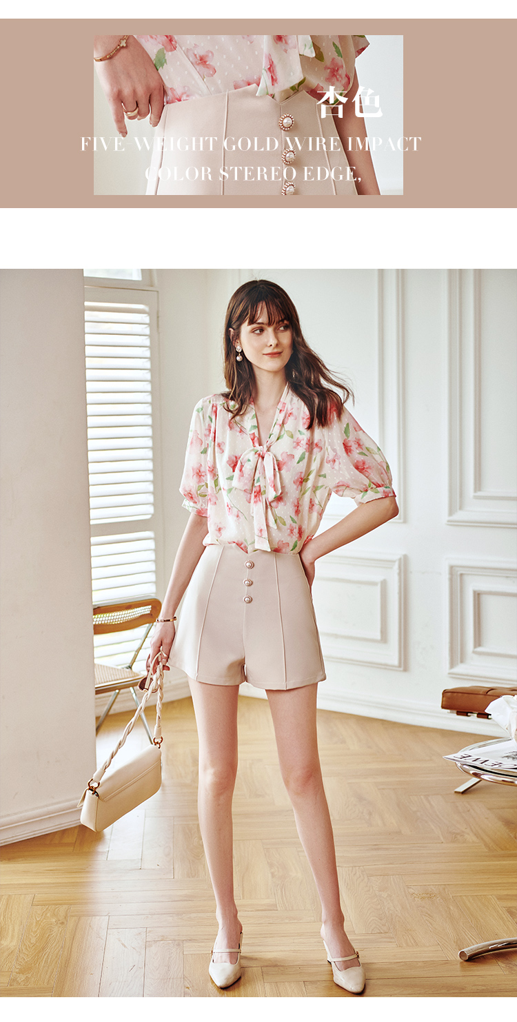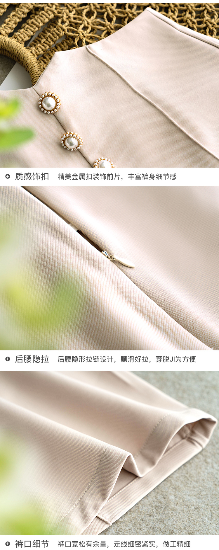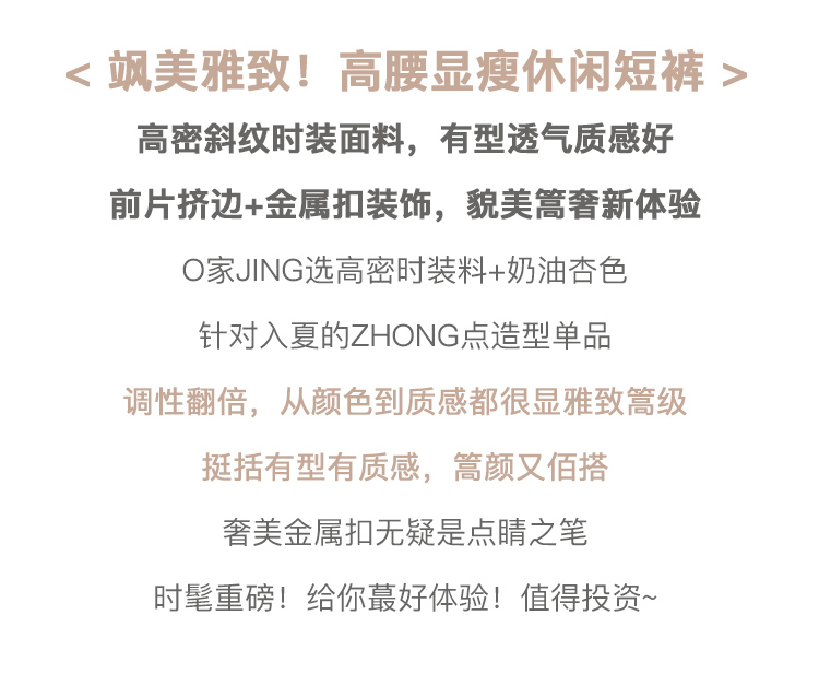 欧芮儿杏色休闲裤女2021高腰显瘦气质优雅直筒小个子薄款短裤