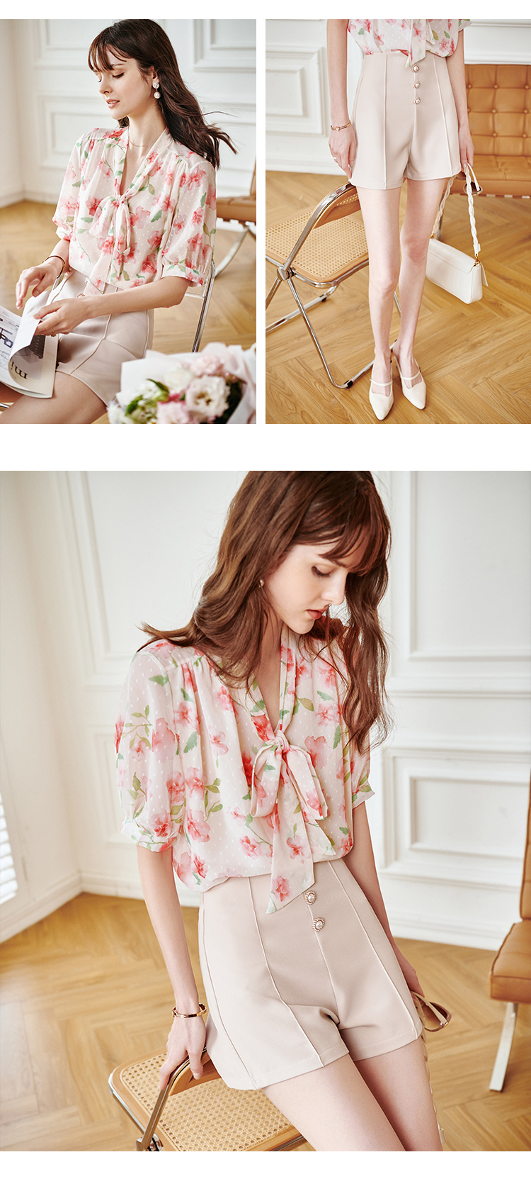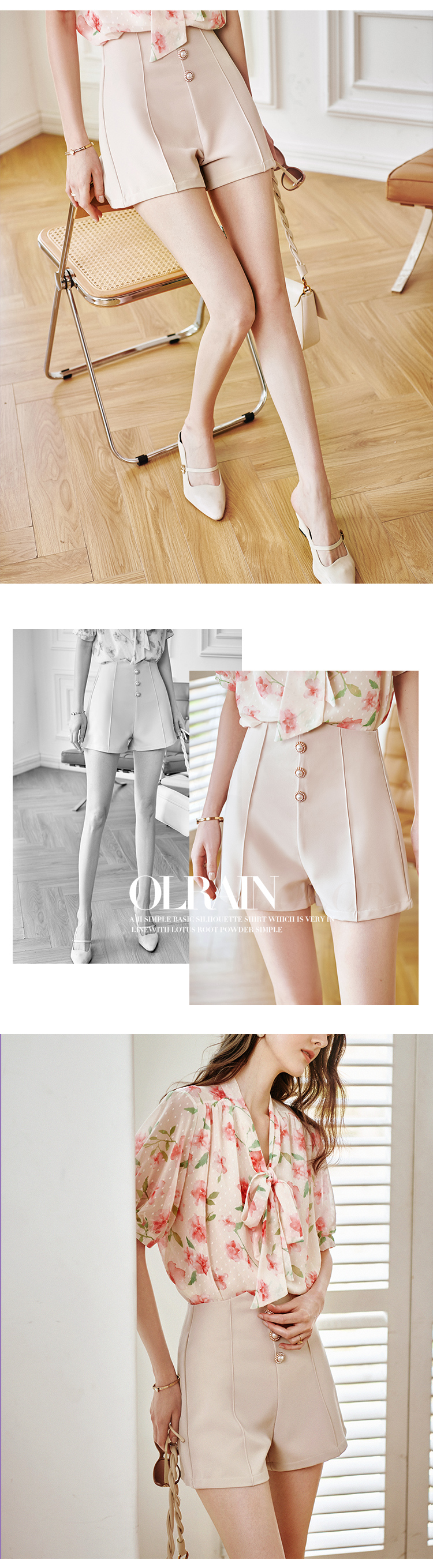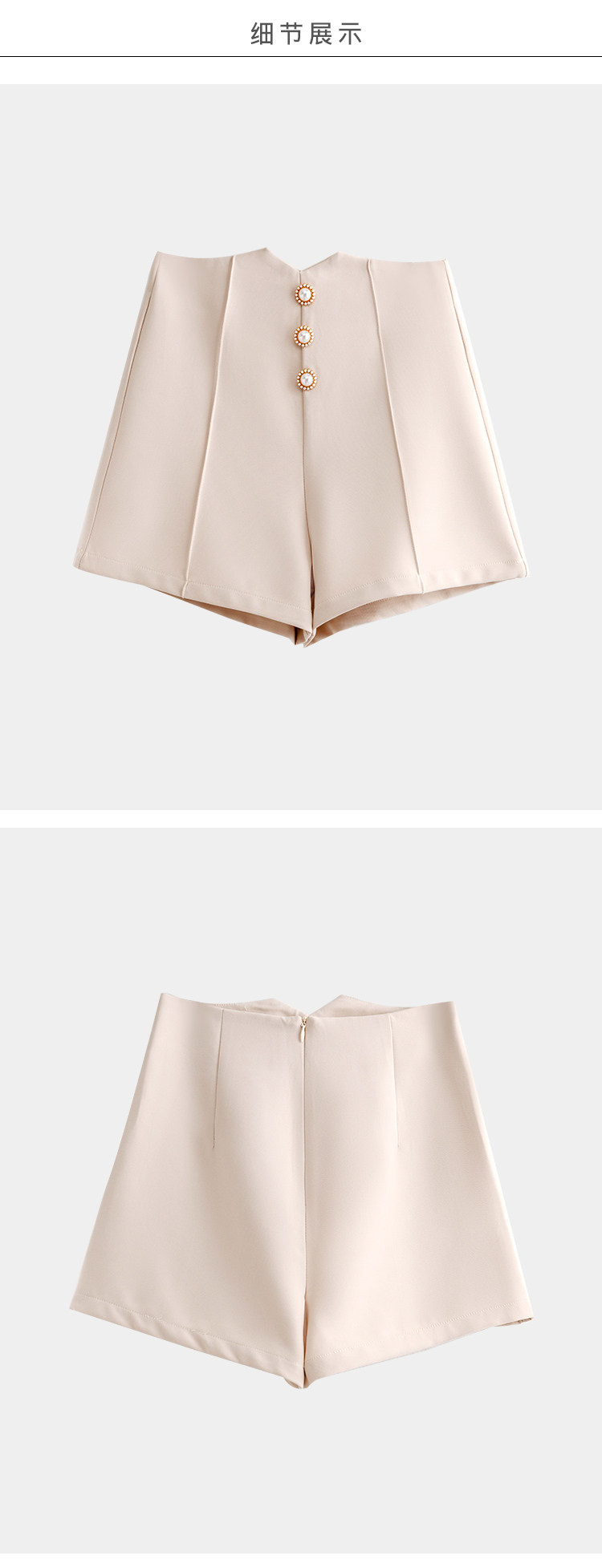 欧芮儿杏色休闲裤女2021高腰显瘦气质优雅直筒小个子薄款短裤