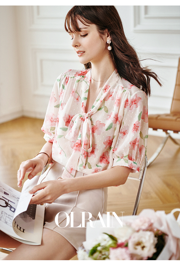 OLrain欧芮儿法式粉色衬衫女夏季2023新款宽松气质泡泡袖薄款衬衣