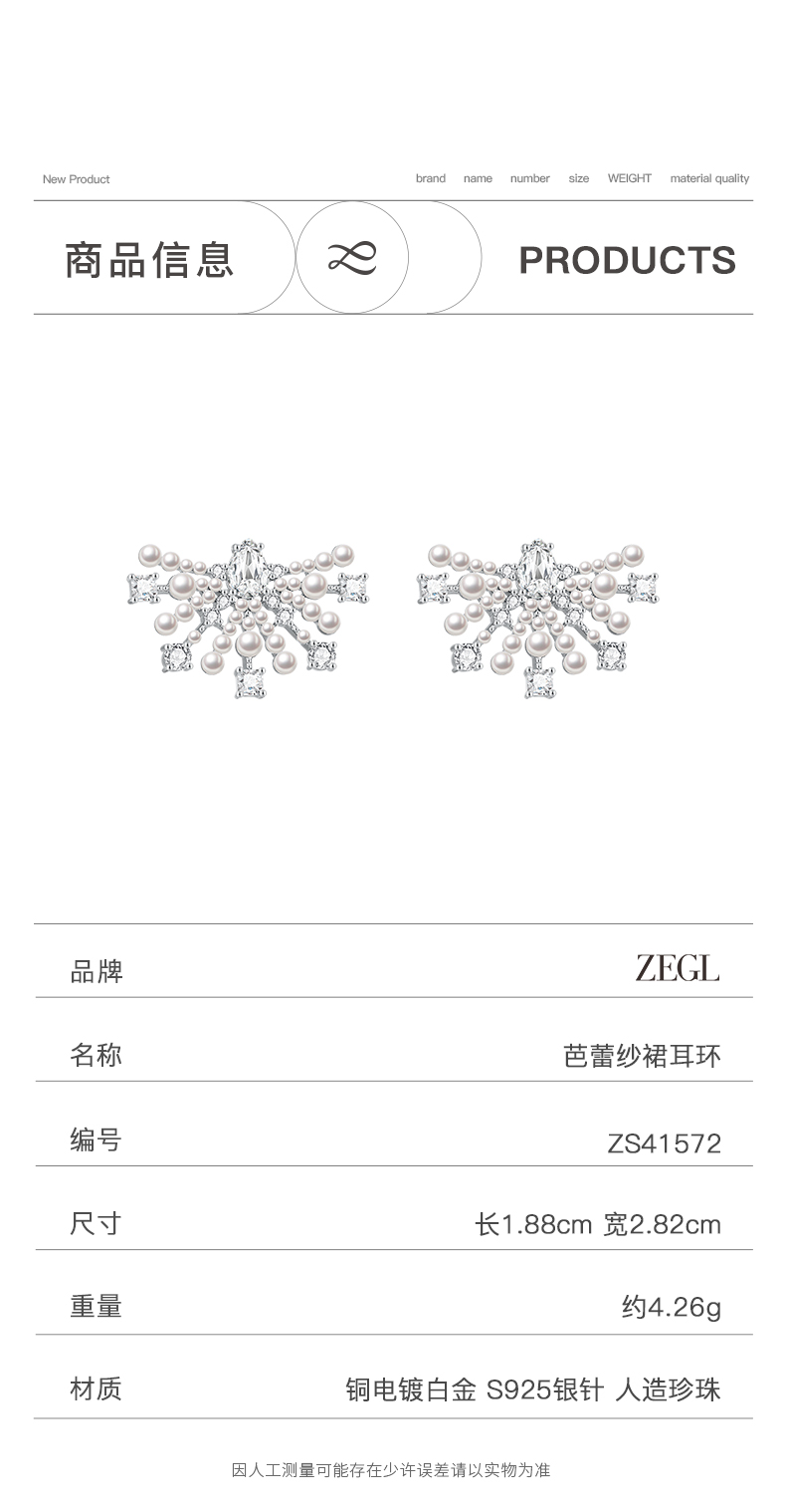 ZEGL设计师芭蕾系列人造珍珠耳环女2023新款法式气质耳钉银针耳饰