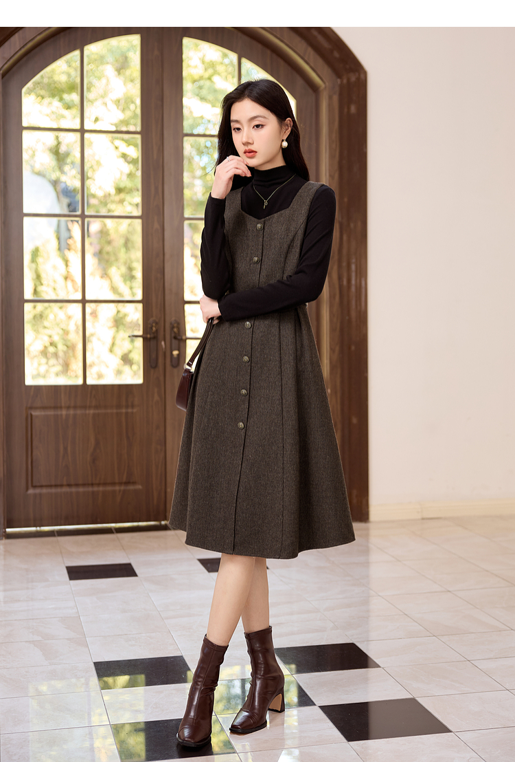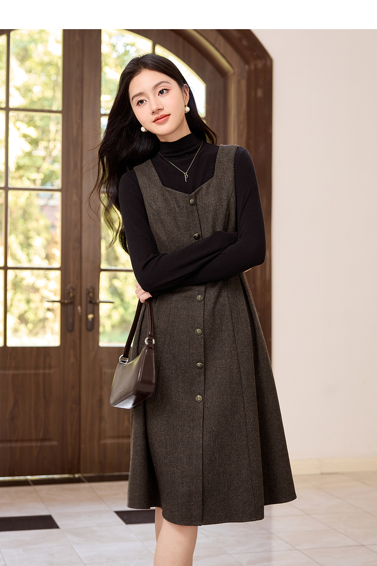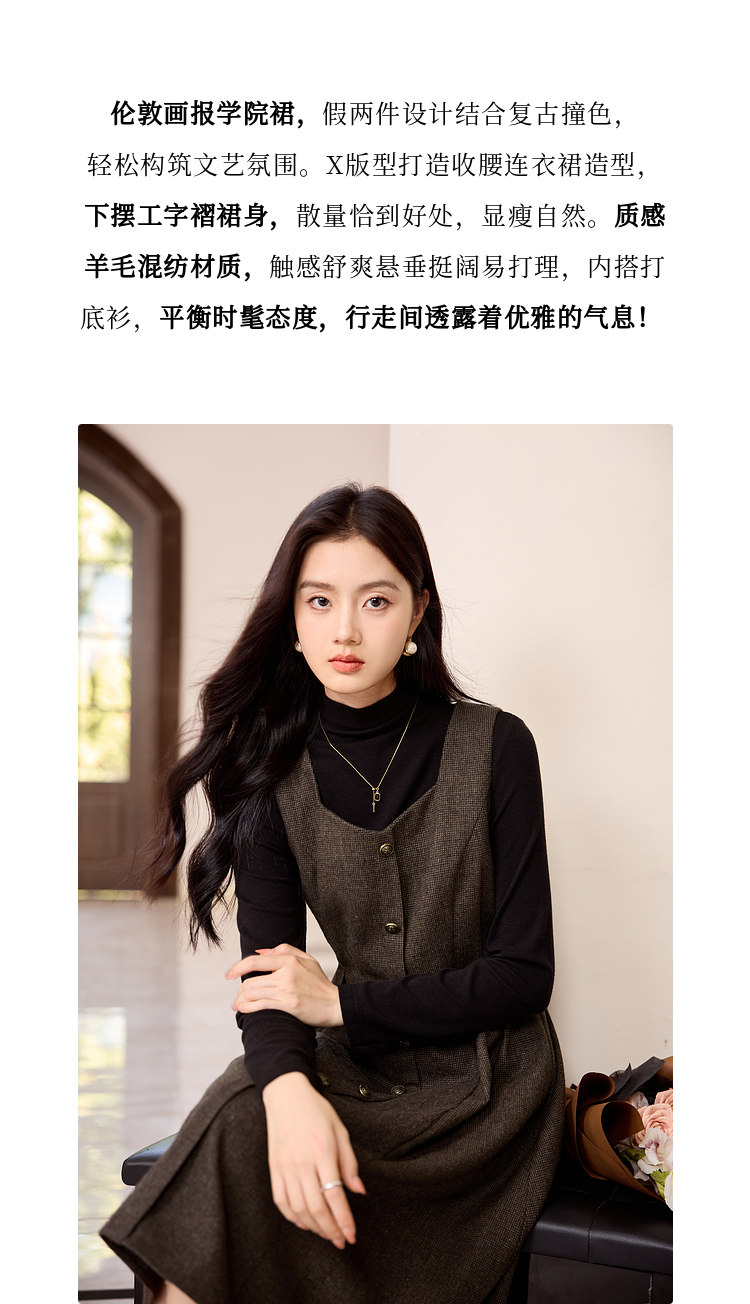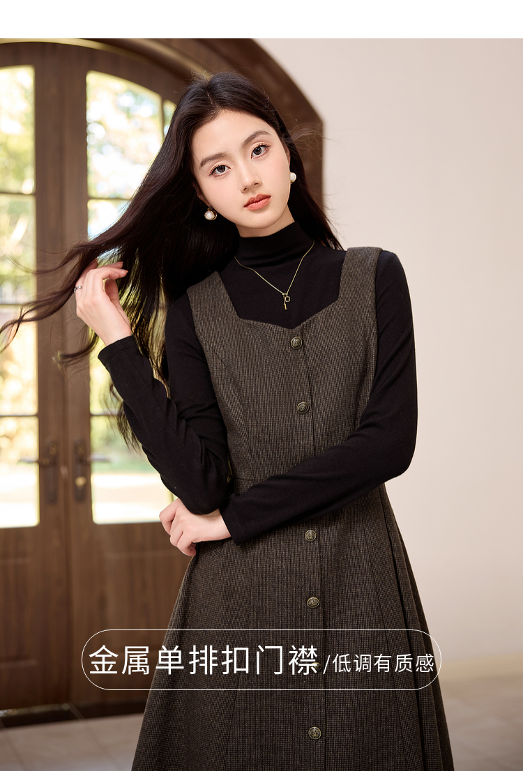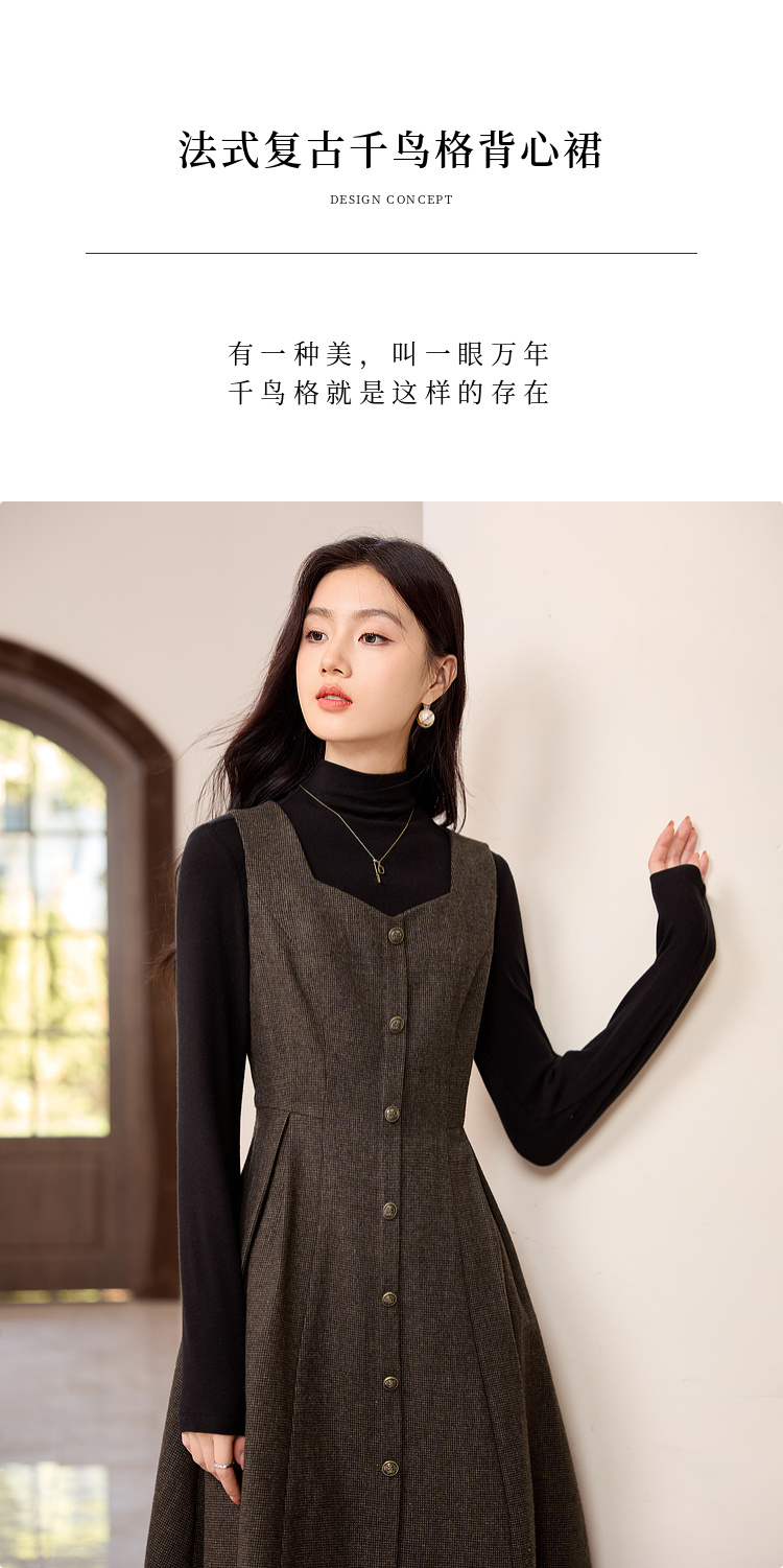 【专属特价】熙世界2025秋冬法式复古千鸟格吊带连衣裙女高级感羊毛背心裙子