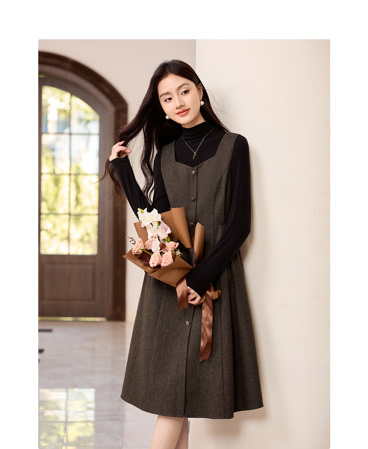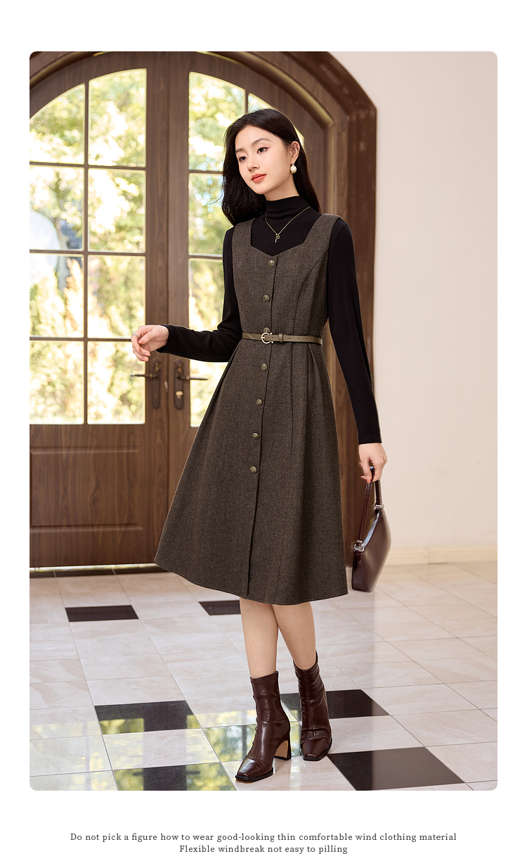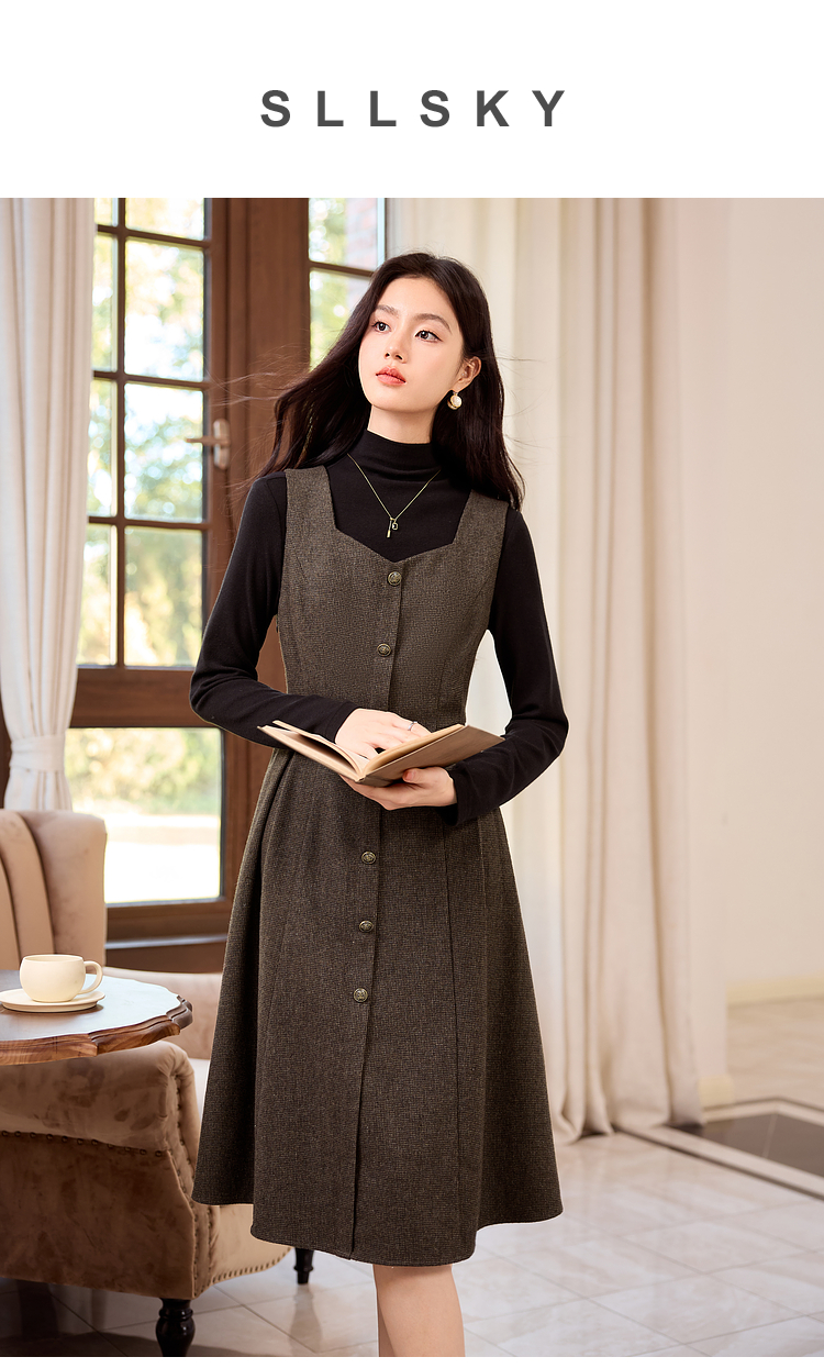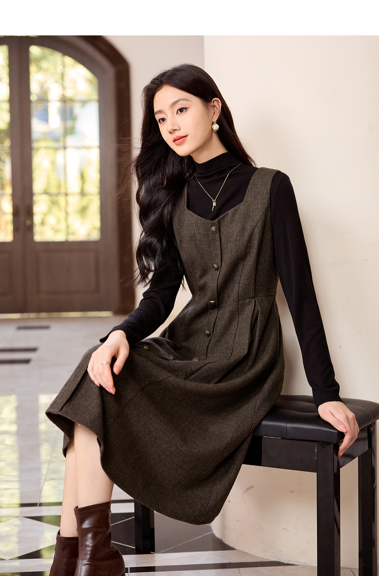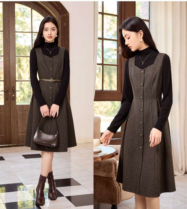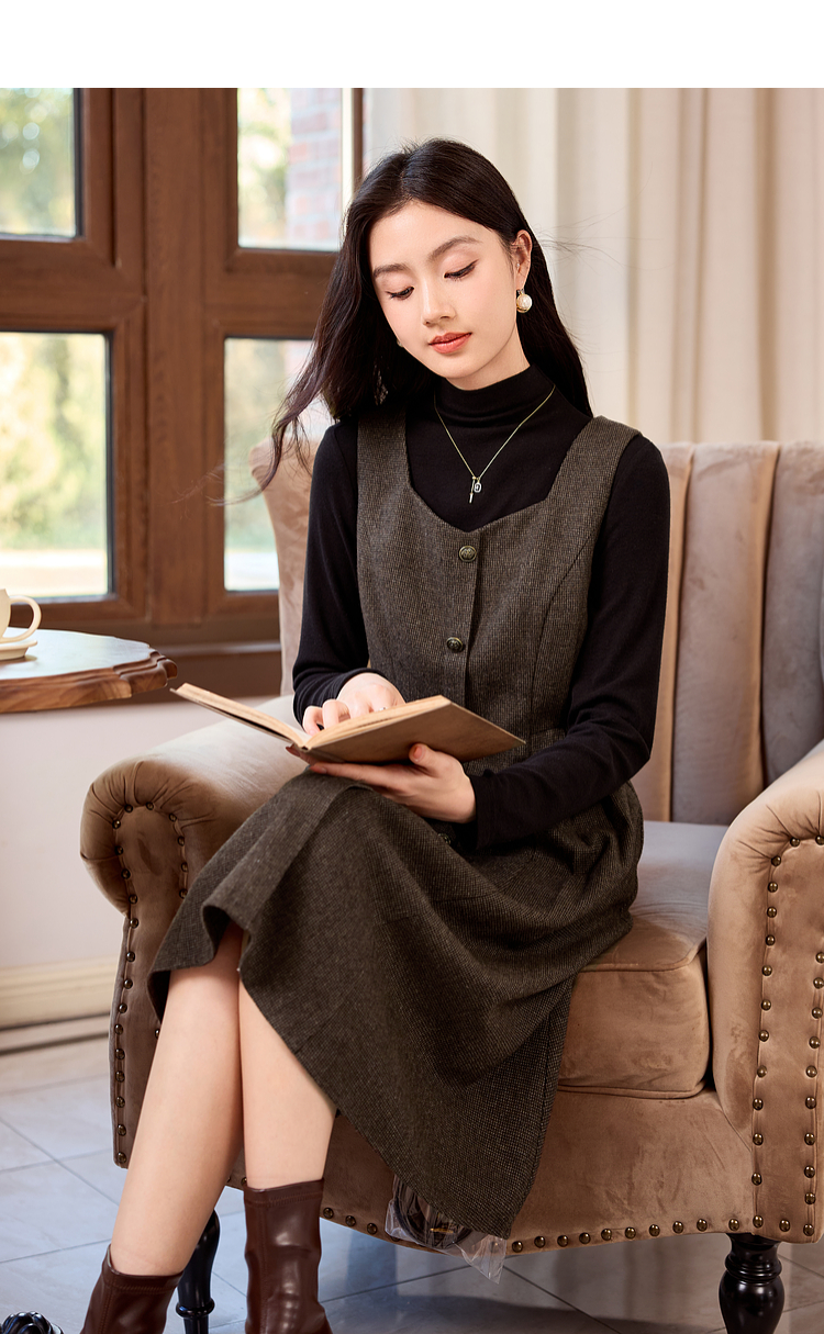 【专属特价】熙世界2025秋冬法式复古千鸟格吊带连衣裙女高级感羊毛背心裙子