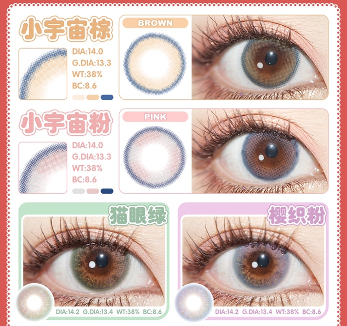 【小红书推荐款】lilyanna 猫眼绿,半年抛/直径14.2/着色13.4,138/一副,158/两副