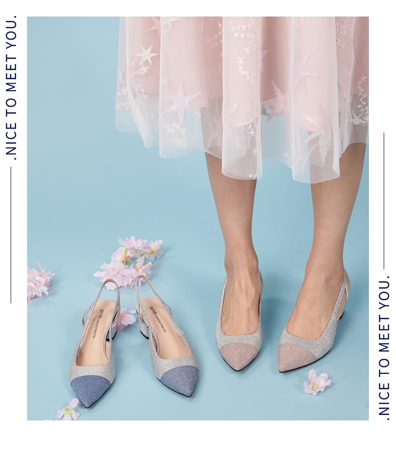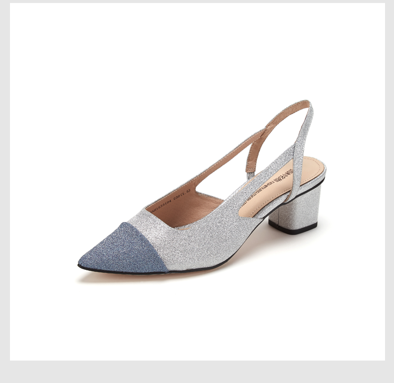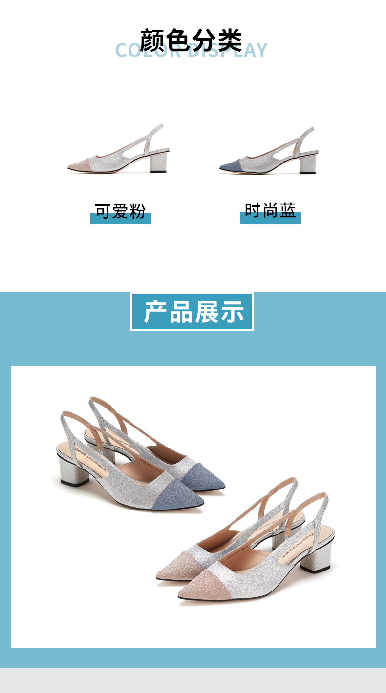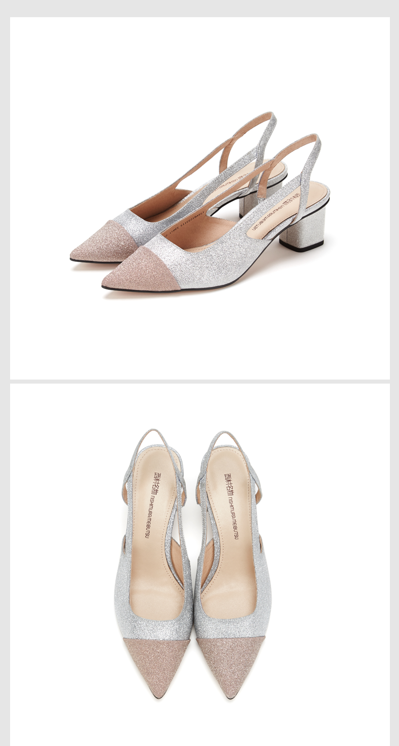 西村名物拼色尖头凉鞋女仙女风2020春夏新款粗跟包头T29AH15331