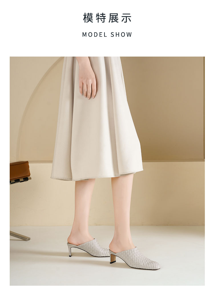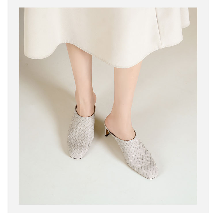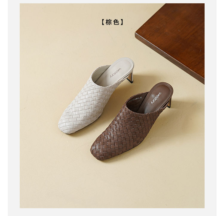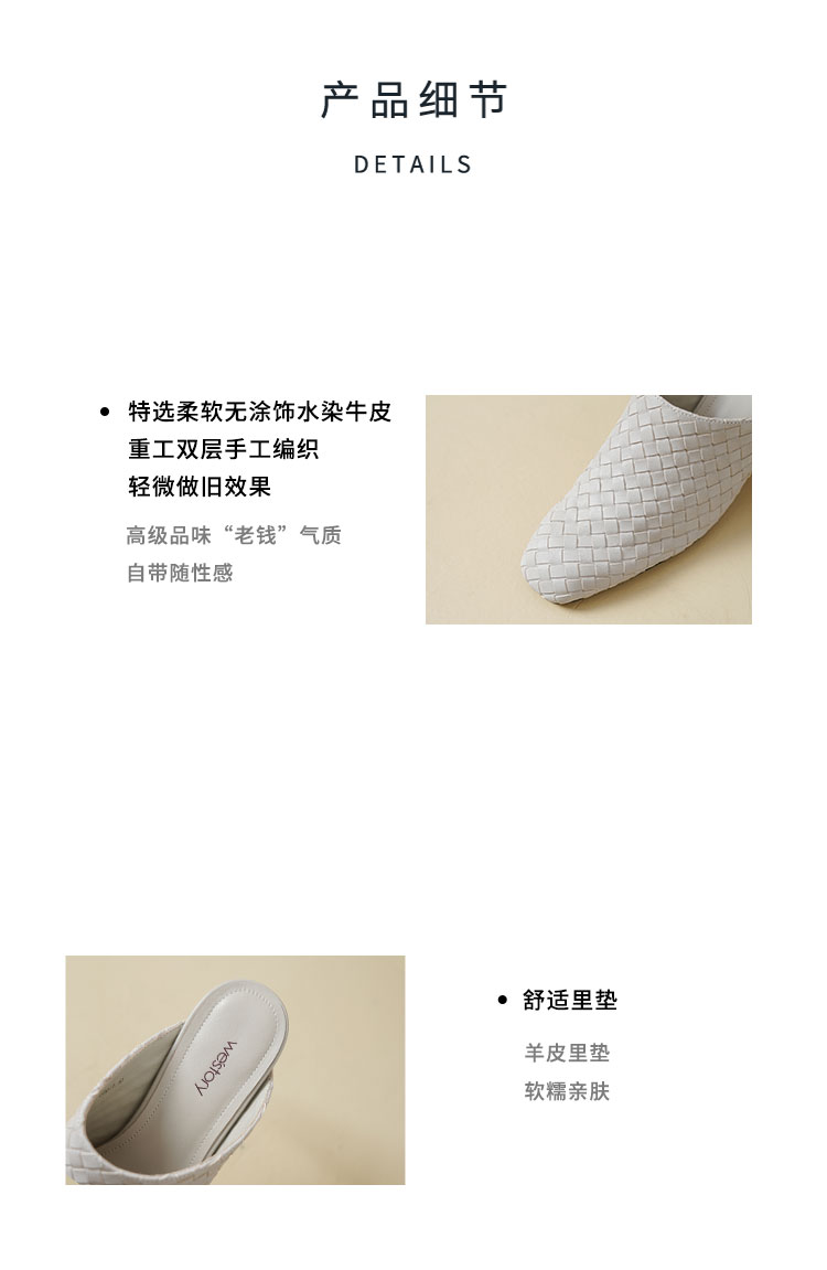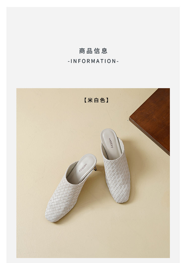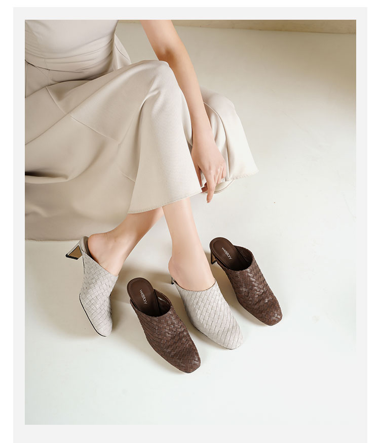 Westory2026年春季小方头中跟牛皮编织穆勒拖鞋后空鞋W26AH51081