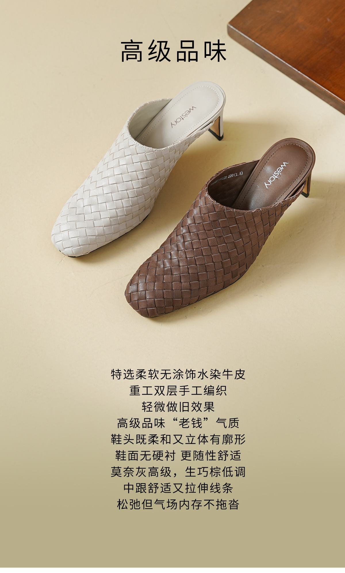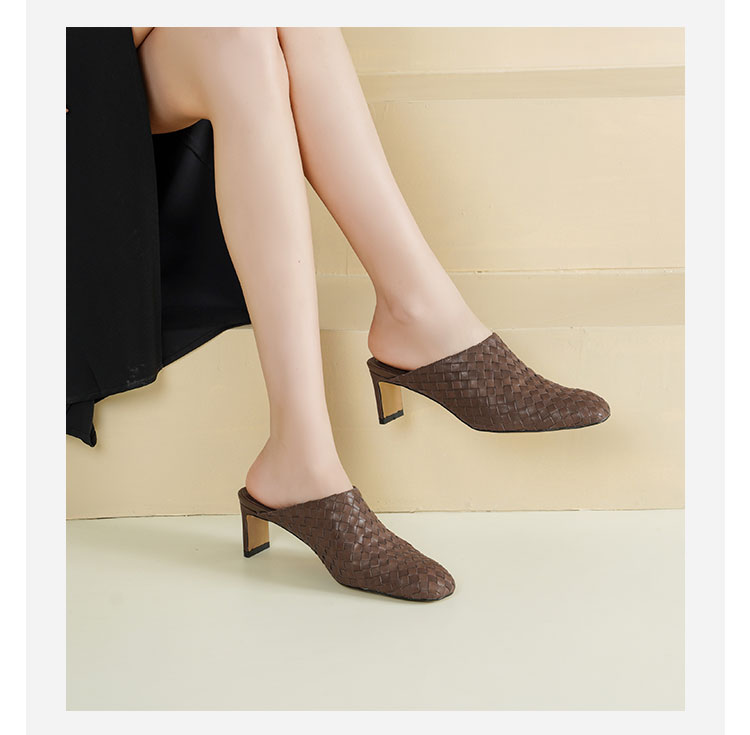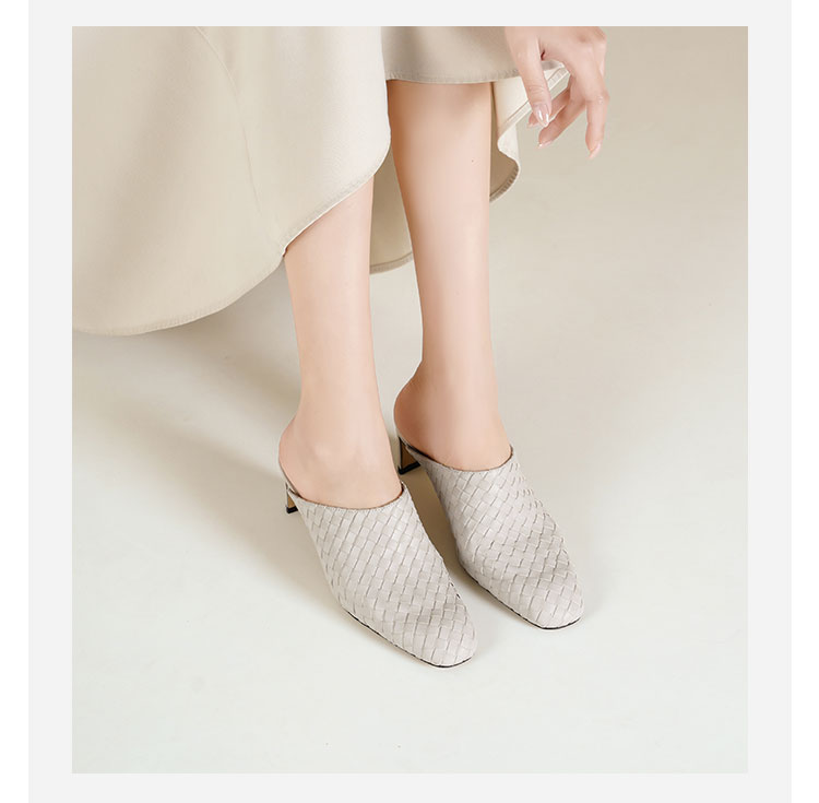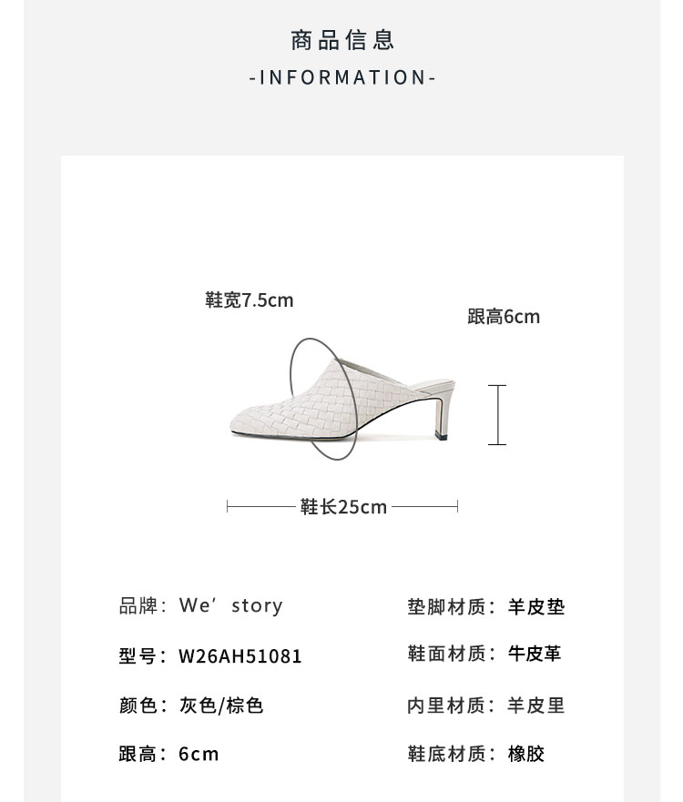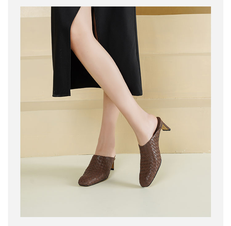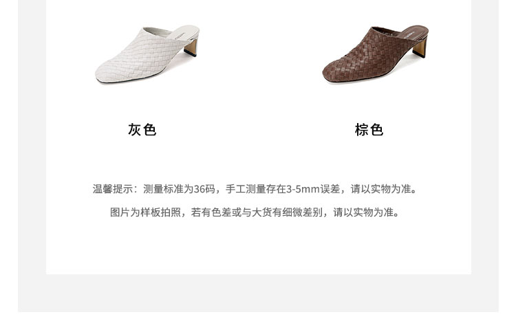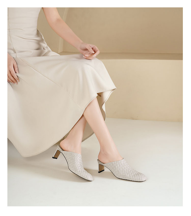 Westory2026年春季小方头中跟牛皮编织穆勒拖鞋后空鞋W26AH51081
