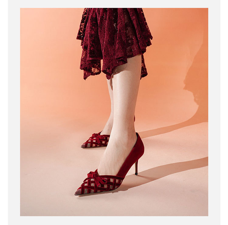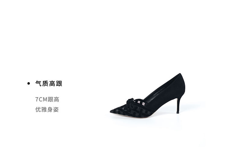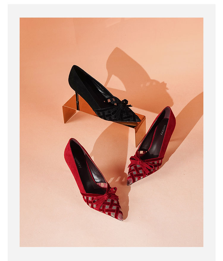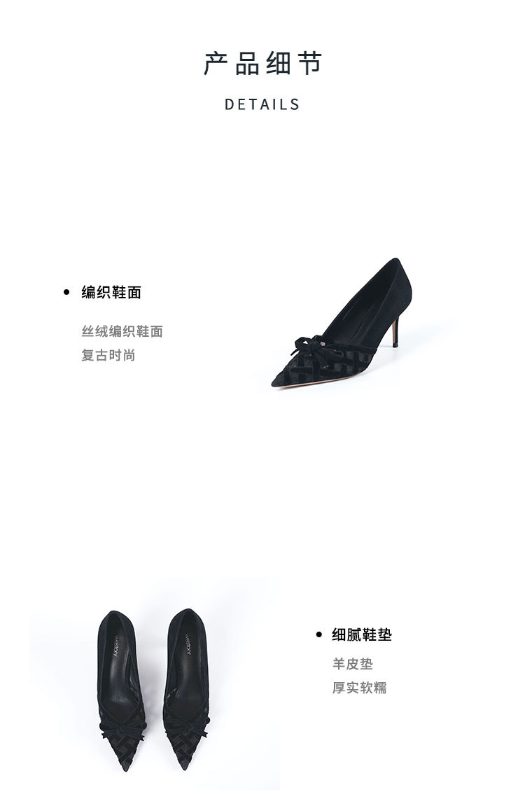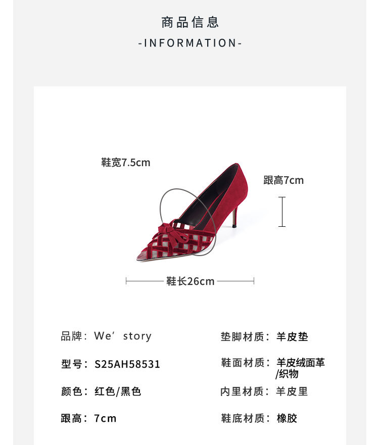 Westory2025年春季国风尖头中跟V口镂空浅口单鞋S25AH58531
