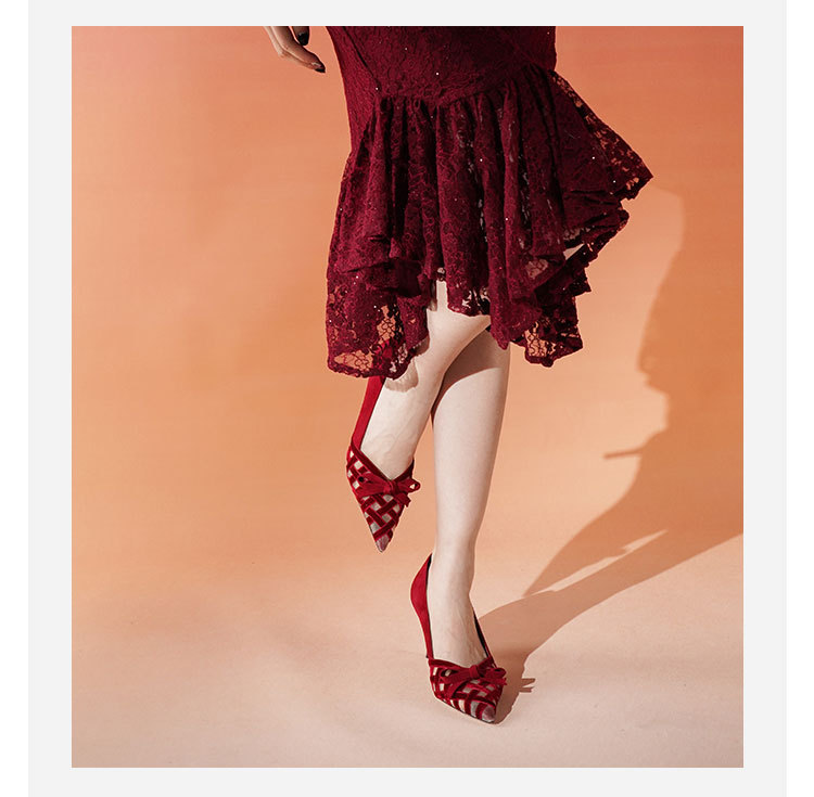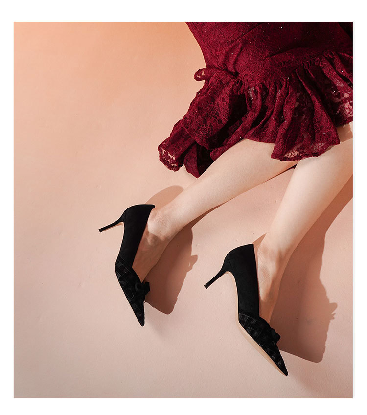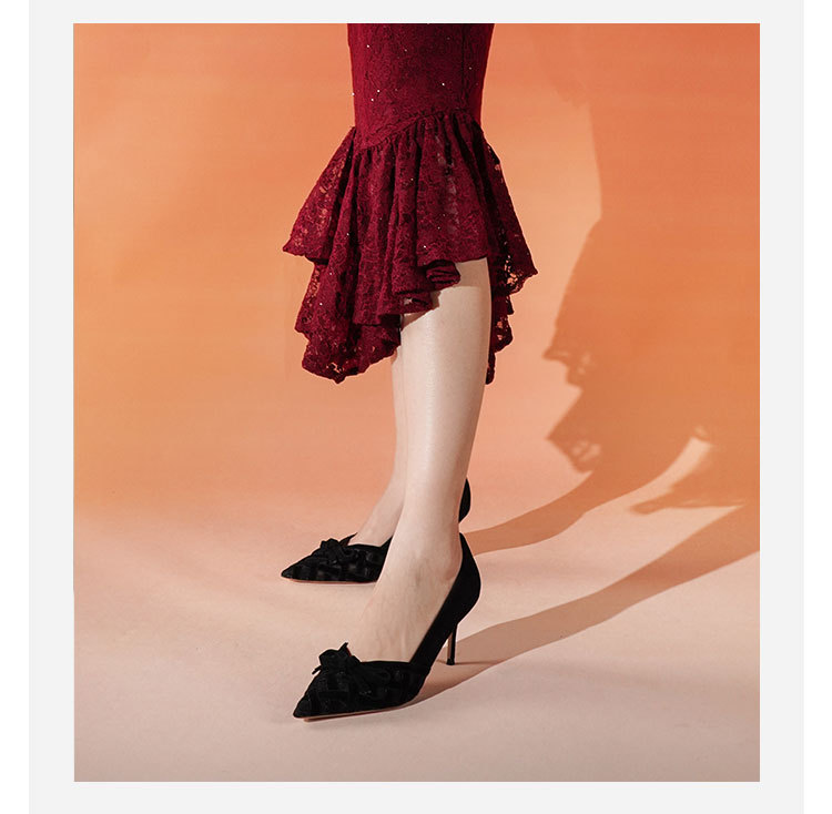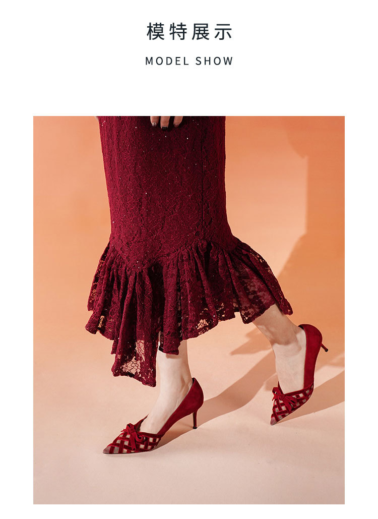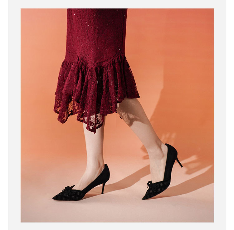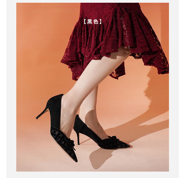 Westory2025年春季国风尖头中跟V口镂空浅口单鞋S25AH58531