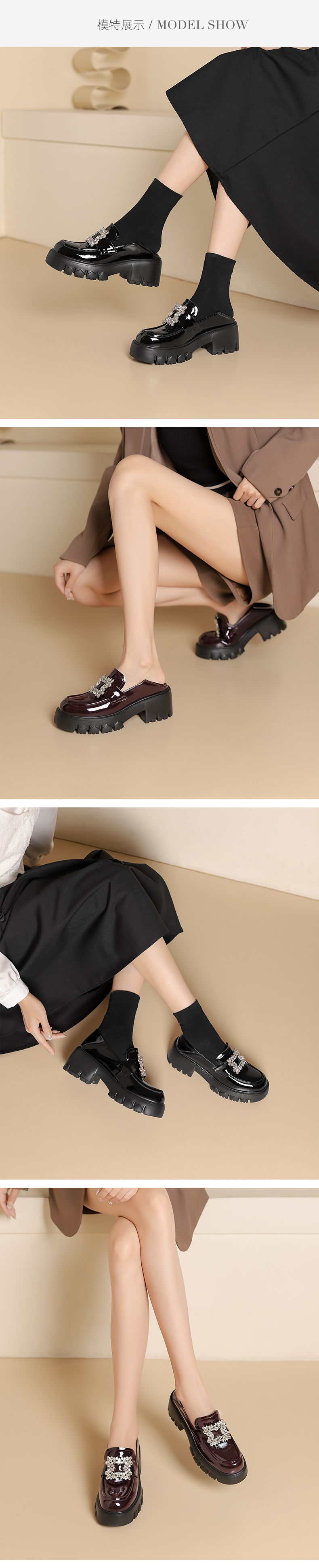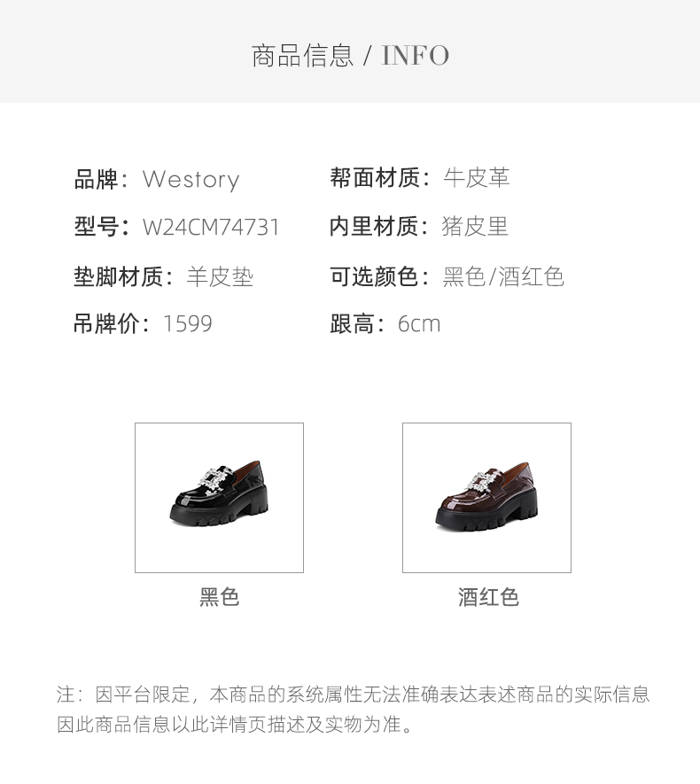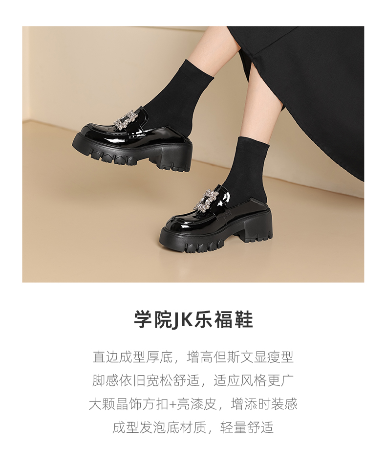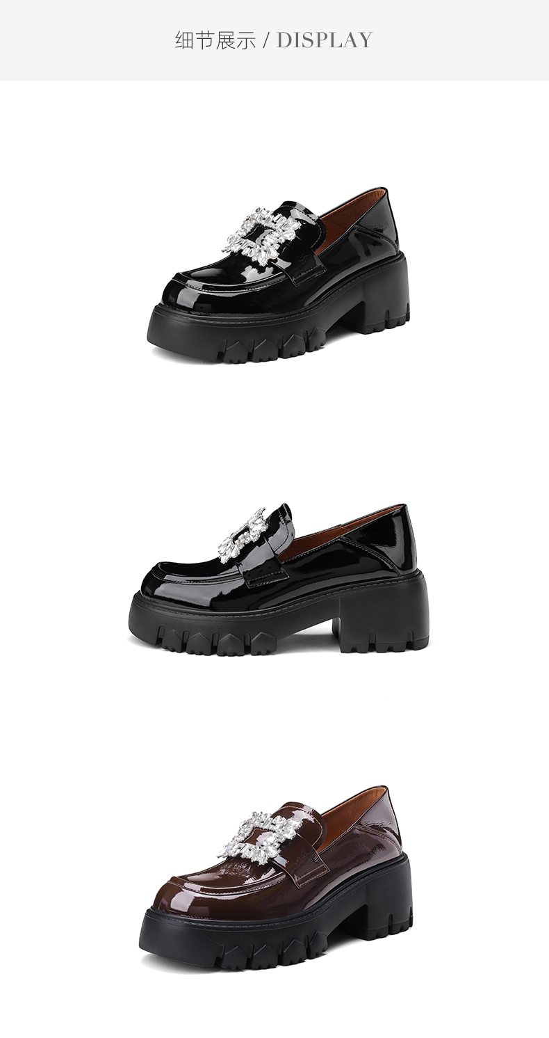 westory2024秋季新款时尚优雅单鞋方扣水钻气质百搭平底乐福鞋女W24CM74731