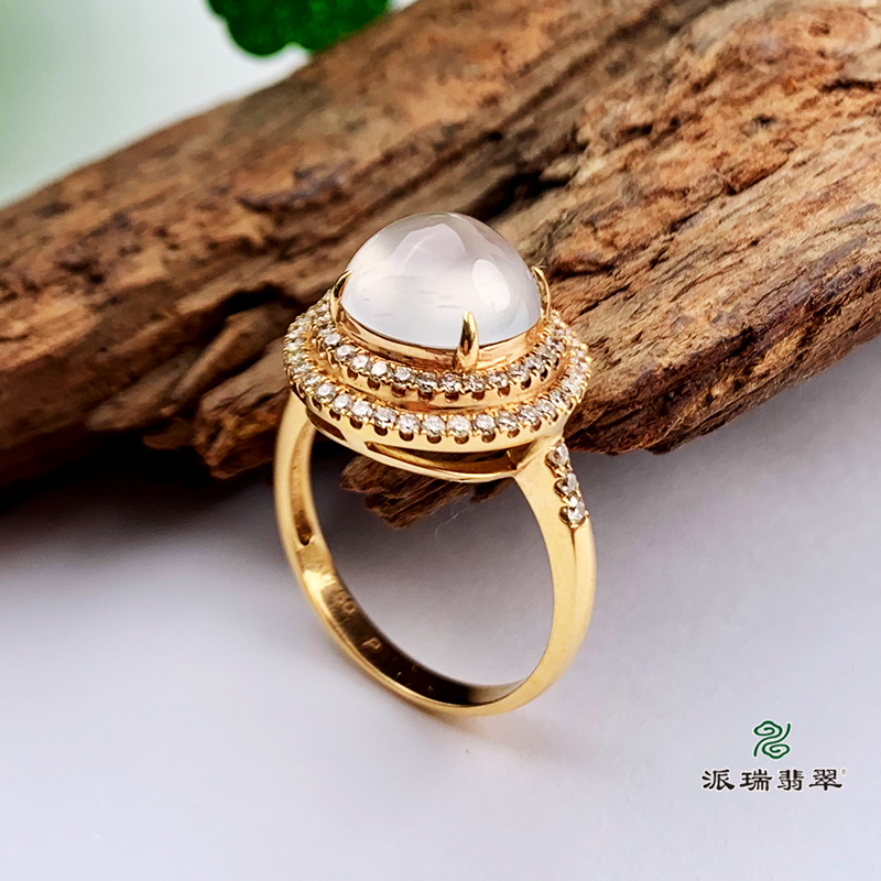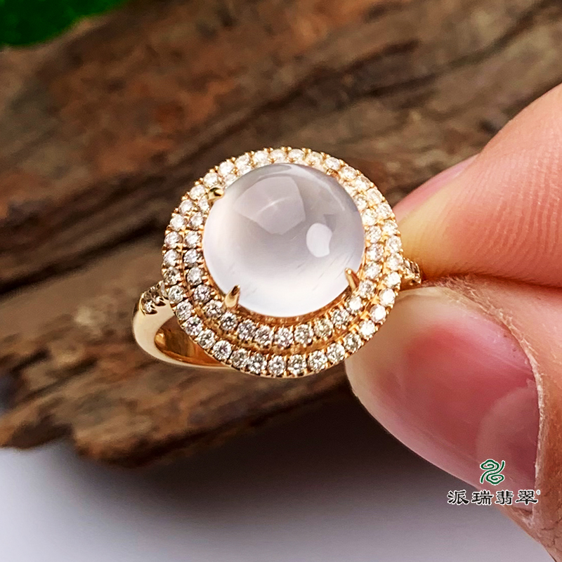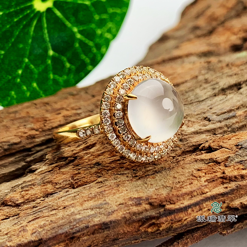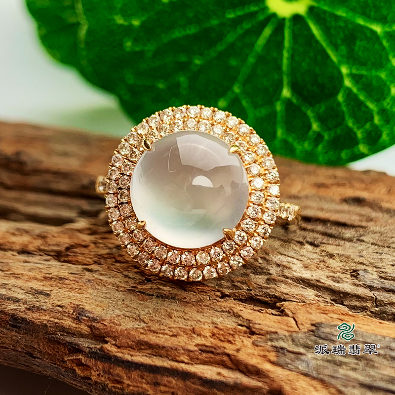 派瑞翡翠 18k金翡翠戒指 冰种 无色
