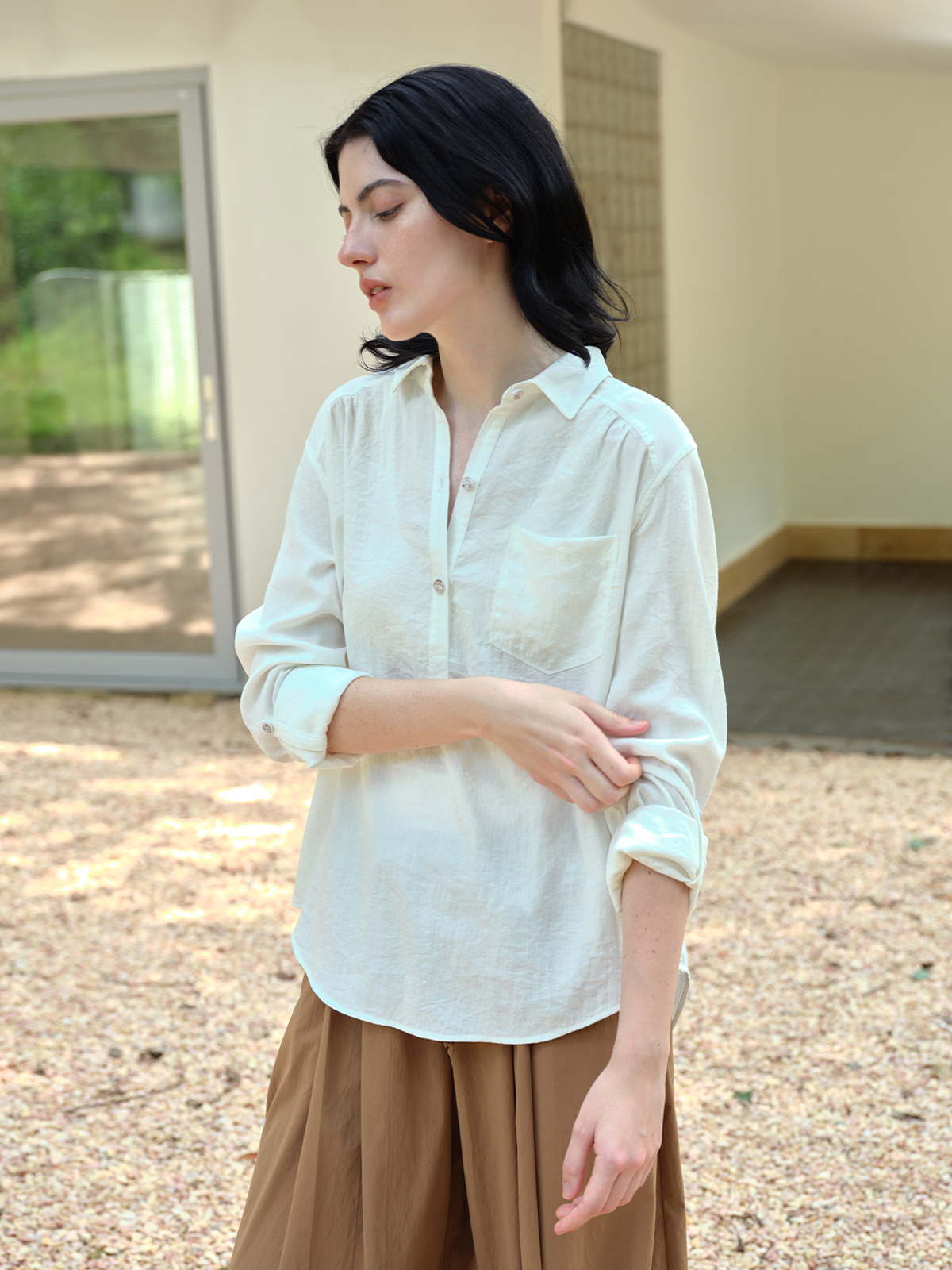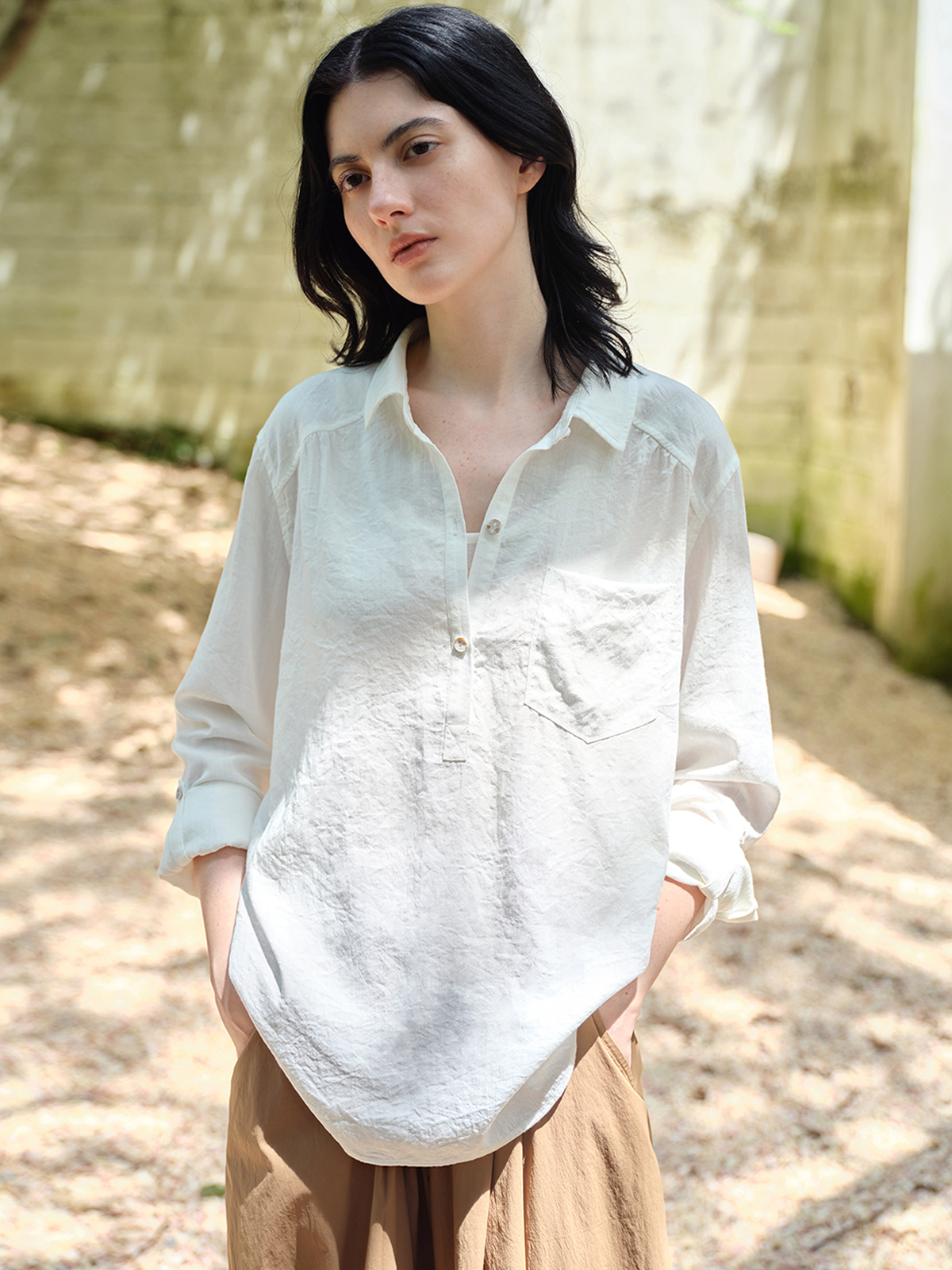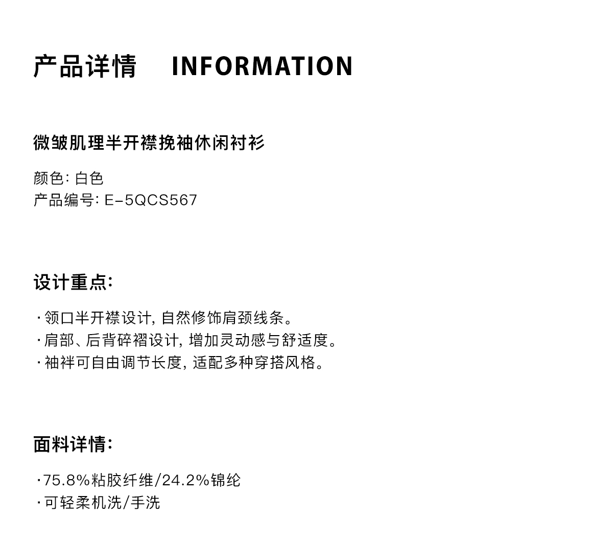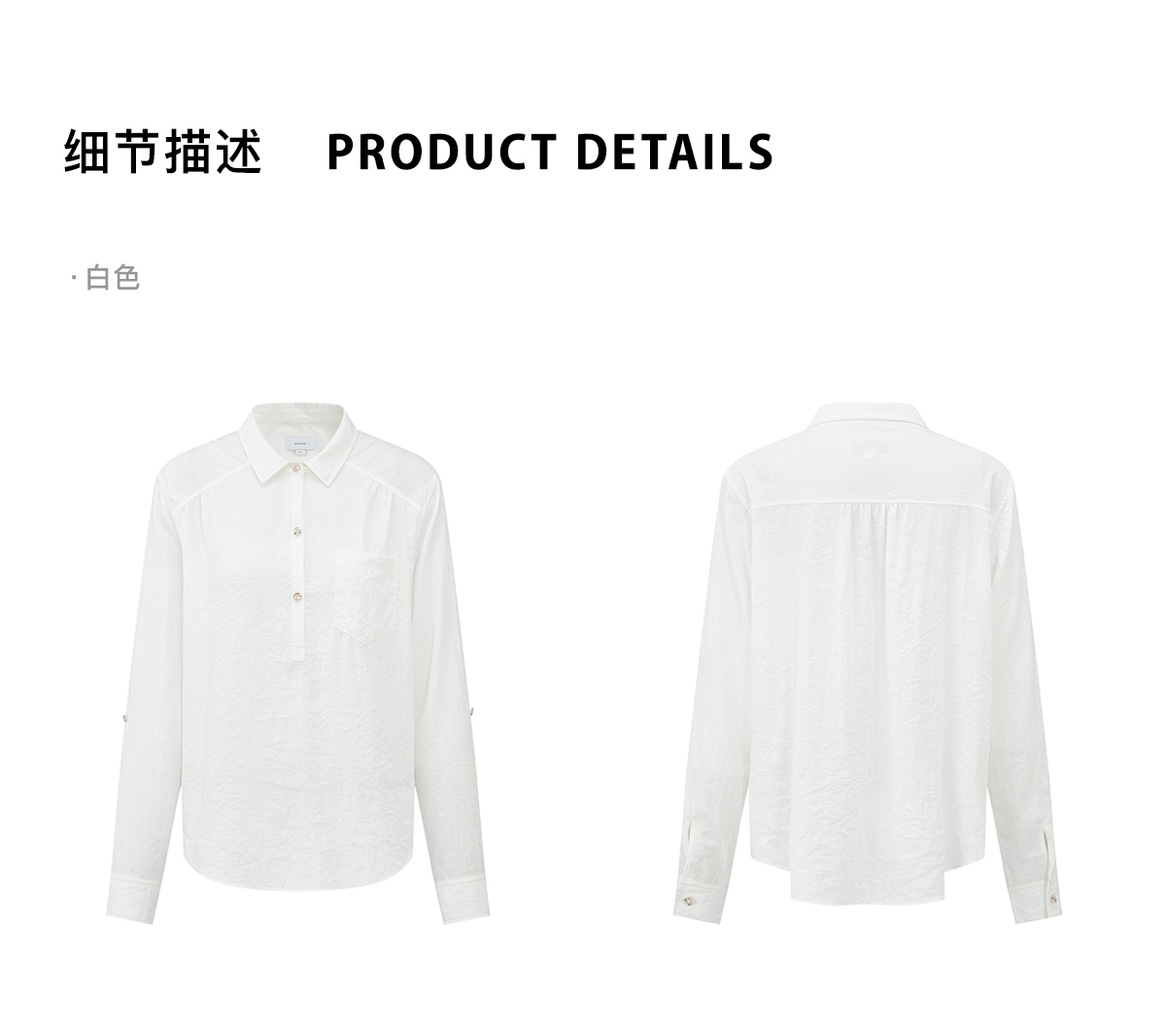 Evistub girls/E-5QCS567/轻盈皱感挽袖衬衫女秋季