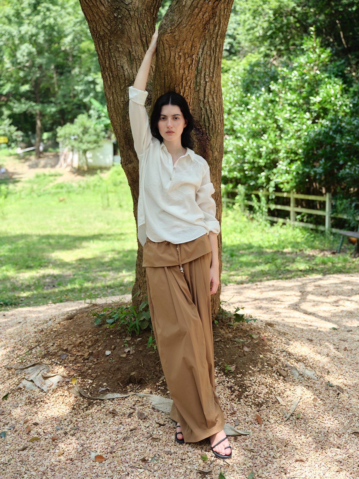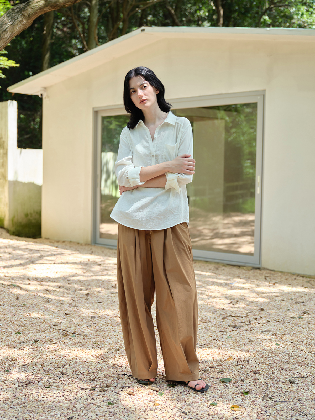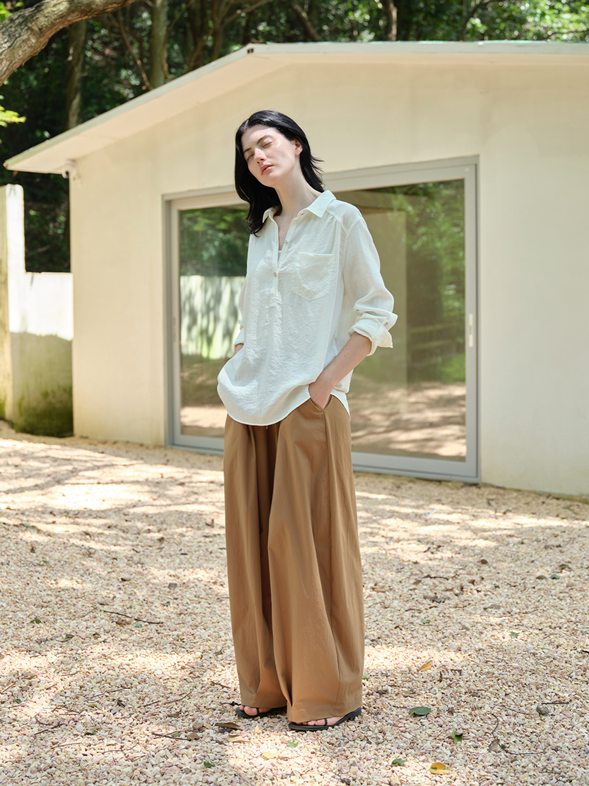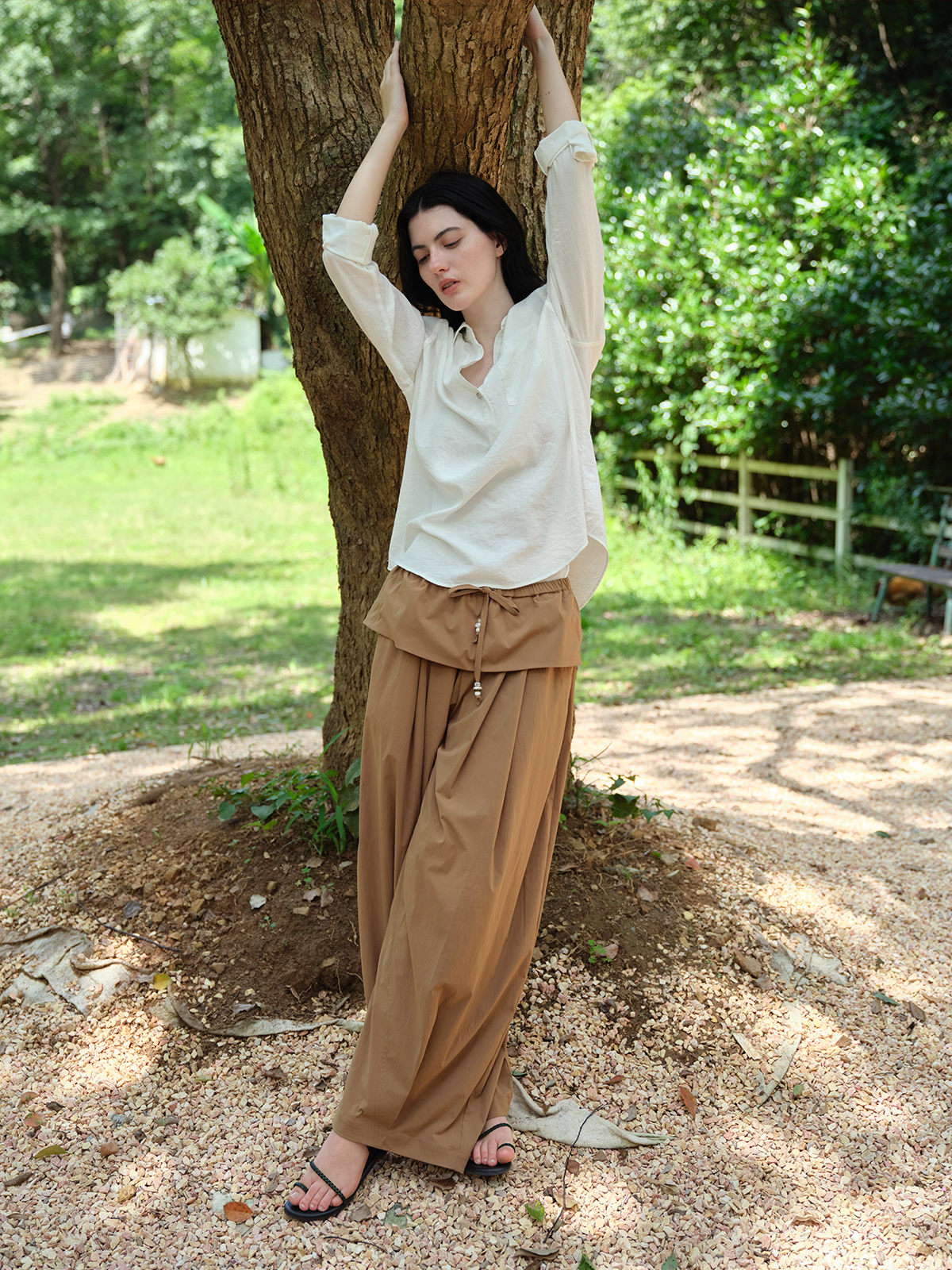 Evistub girls/E-5QCS567/轻盈皱感挽袖衬衫女秋季