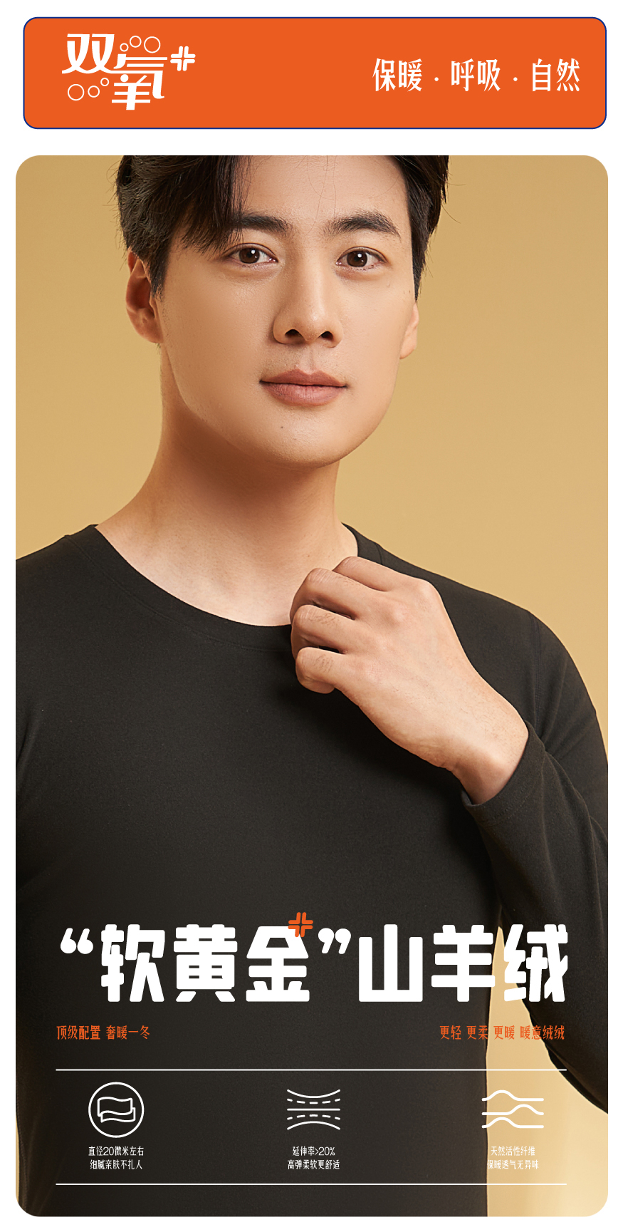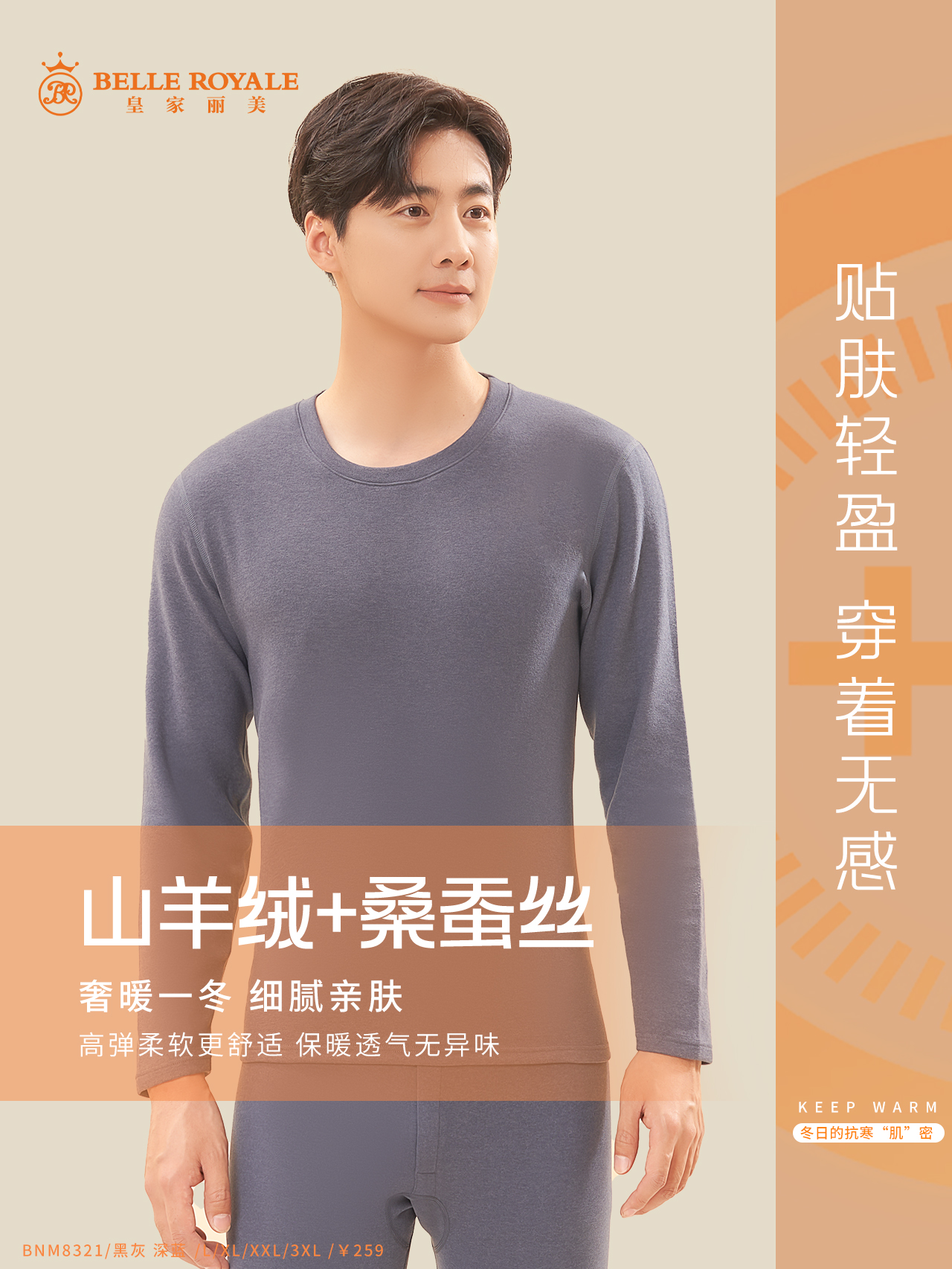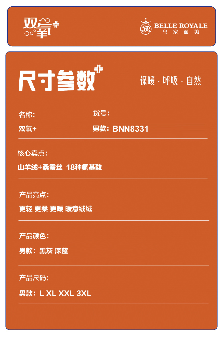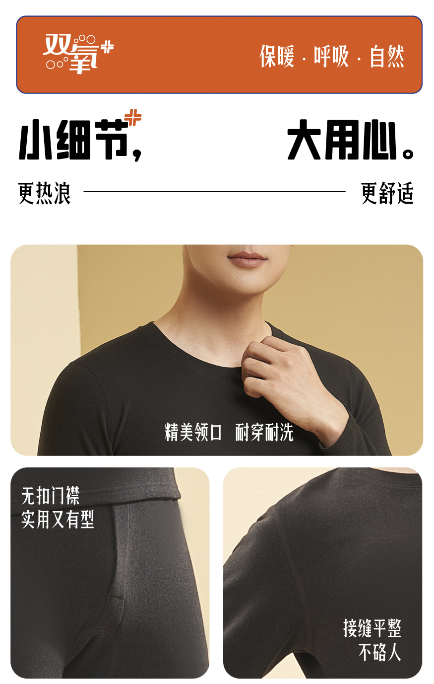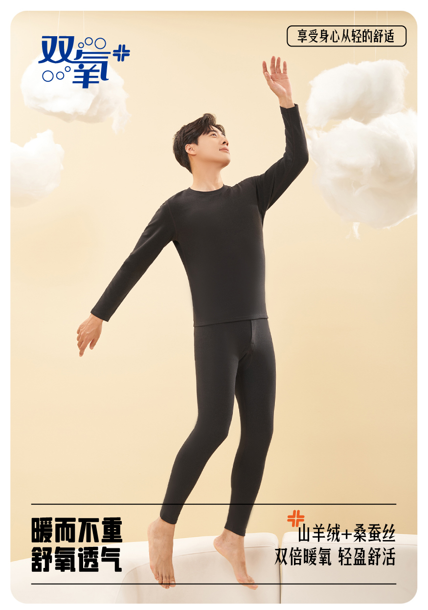 2023秋冬新款山羊绒桑蚕丝内衣男款保暖套装圆领打底衫秋衣秋裤BNN8321