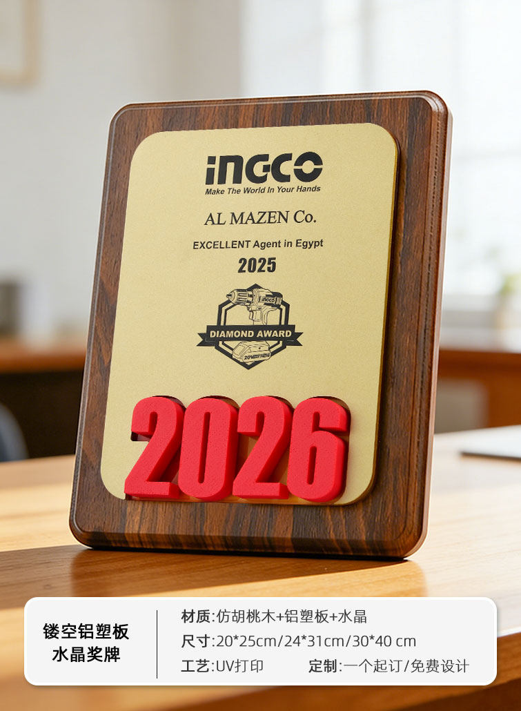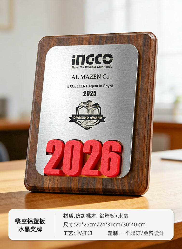 授权牌匾铝合金浮雕镜面证书加盟商会奖杯胡桃木水晶金属奖牌定制