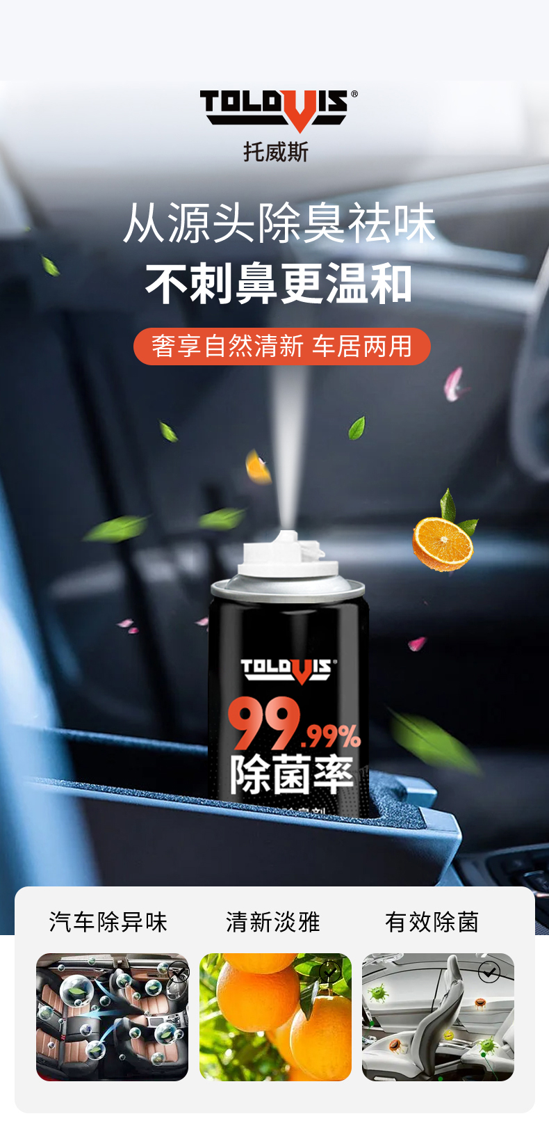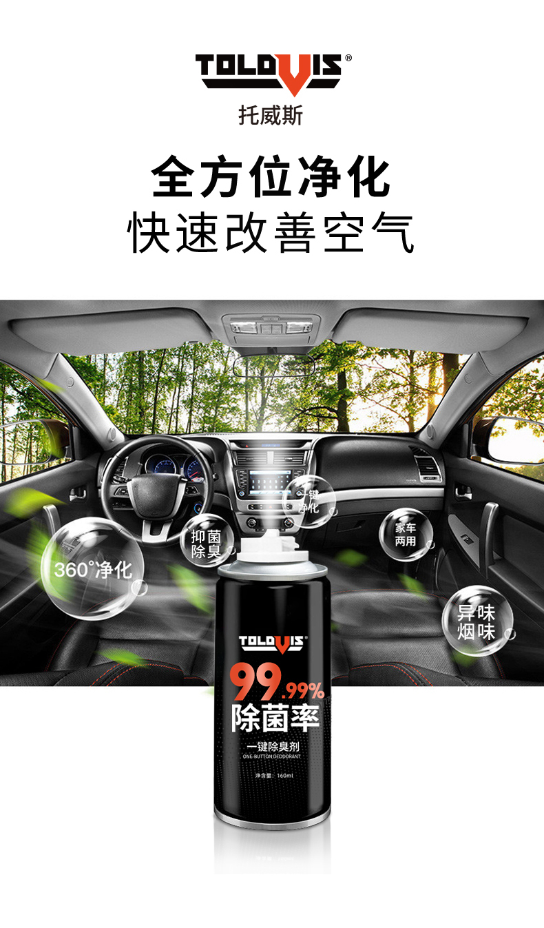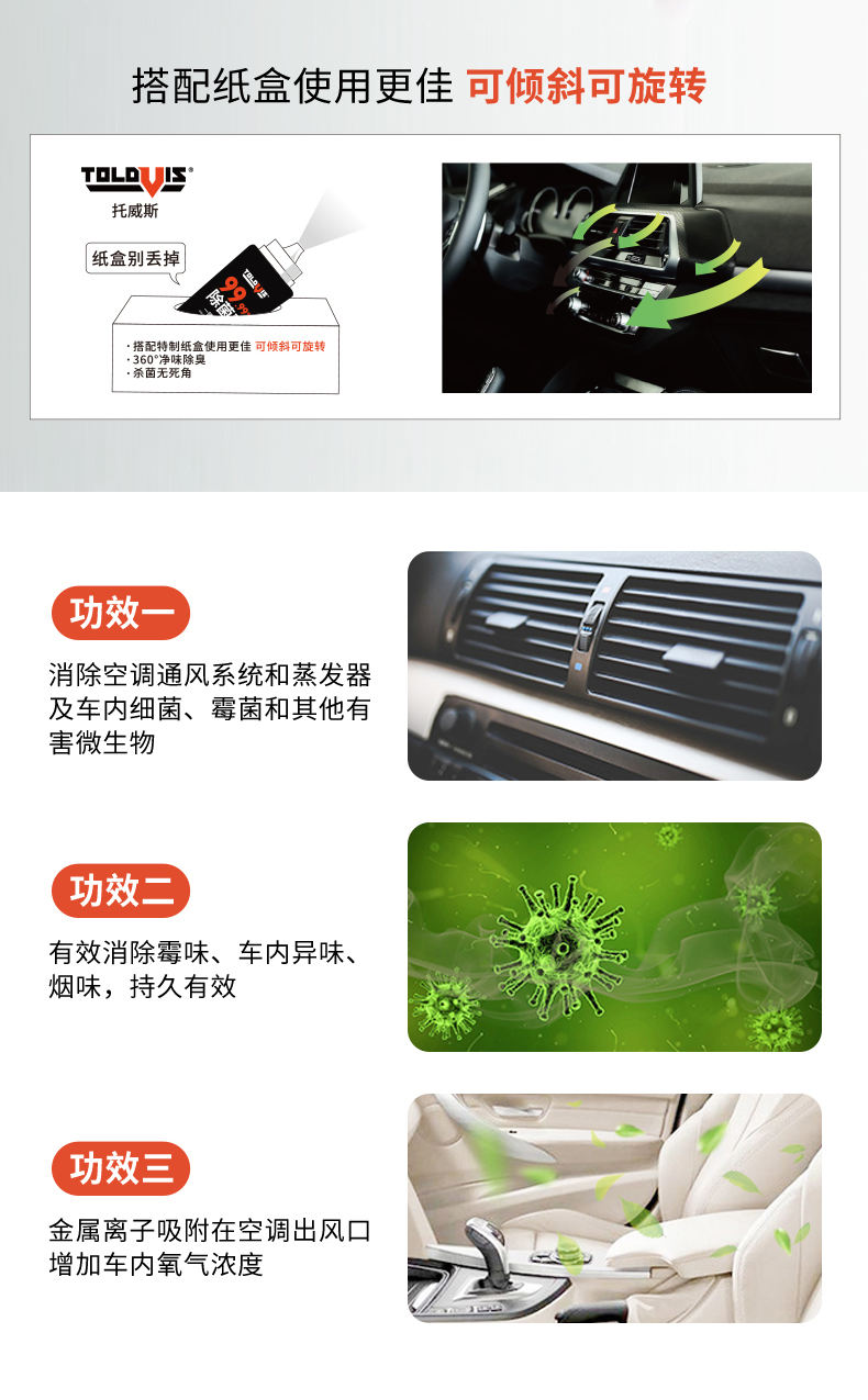 【除菌率≥99.9%】托威斯汽车空调除臭剂 去异味车内除菌 车载空气清新剂除异味 车居两用