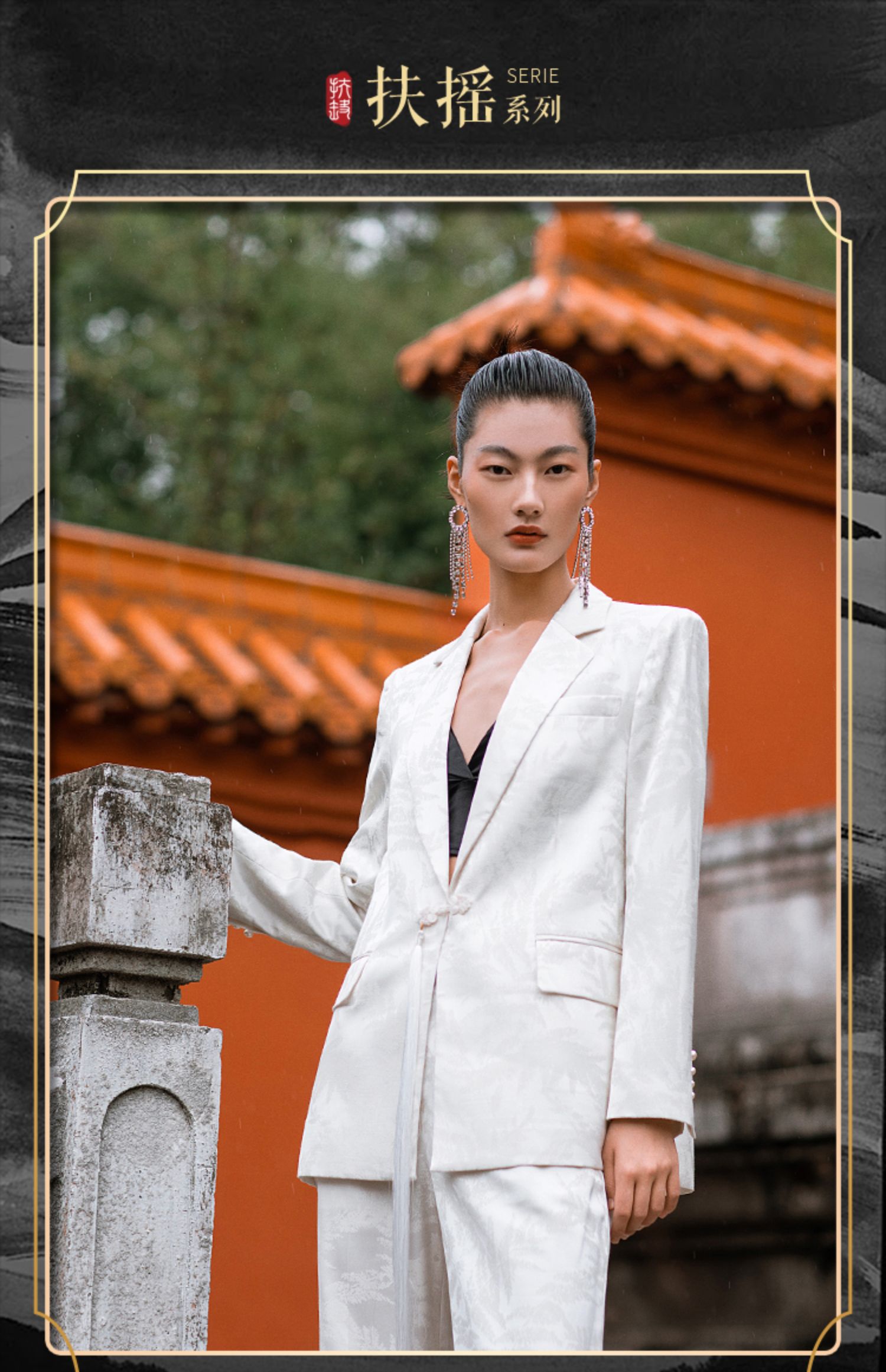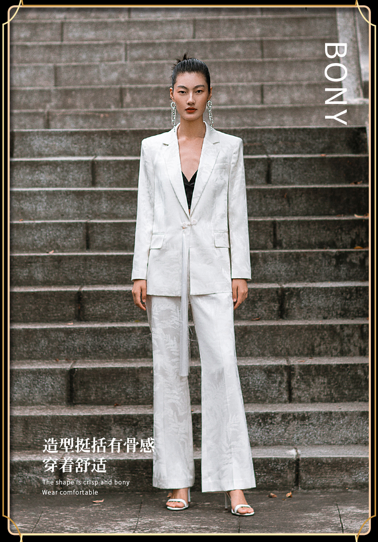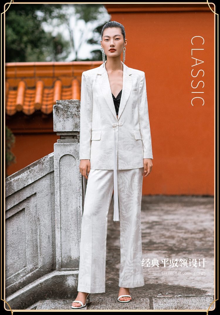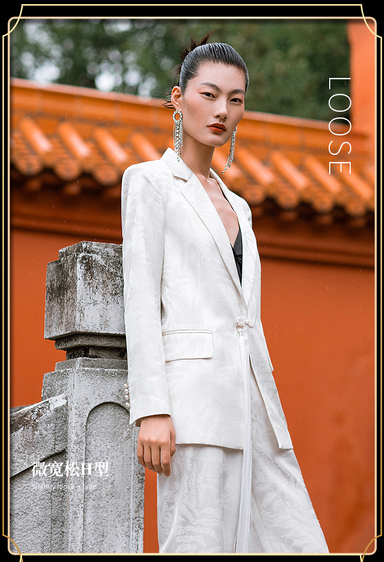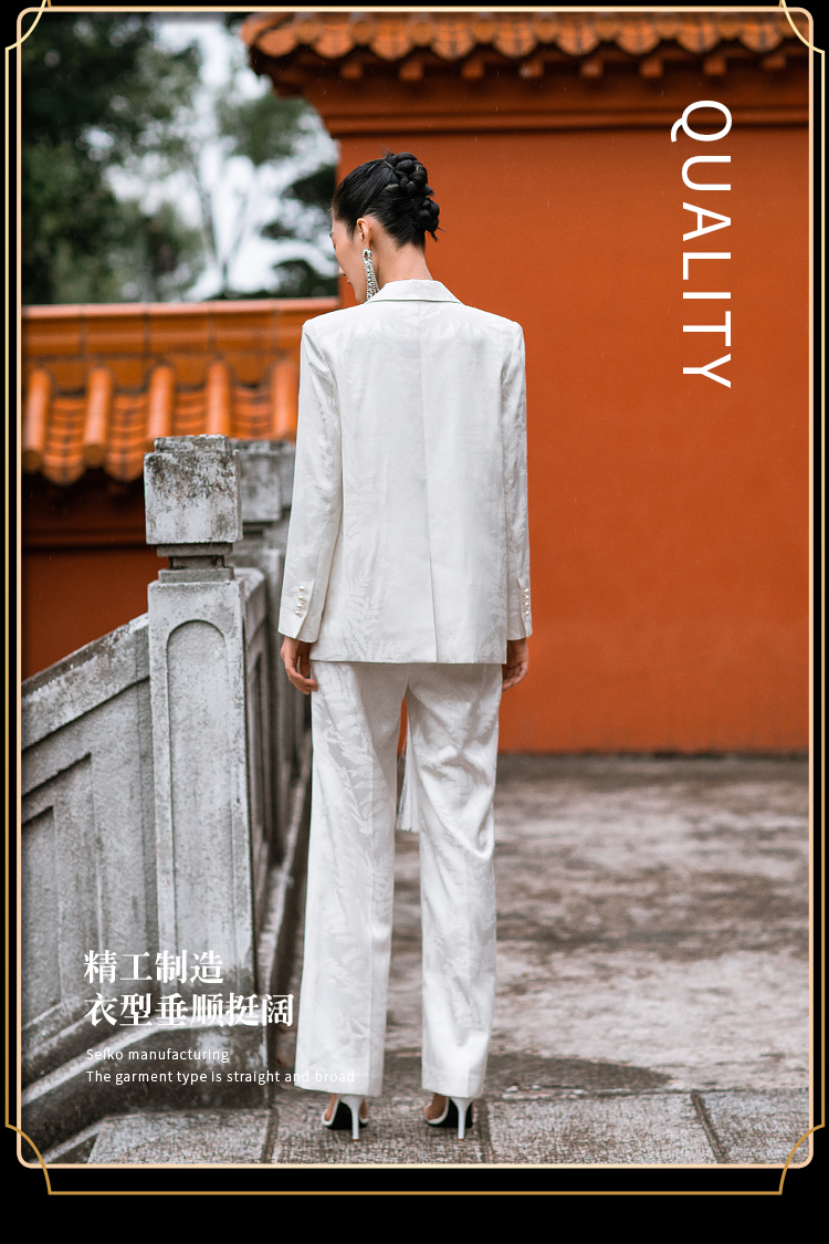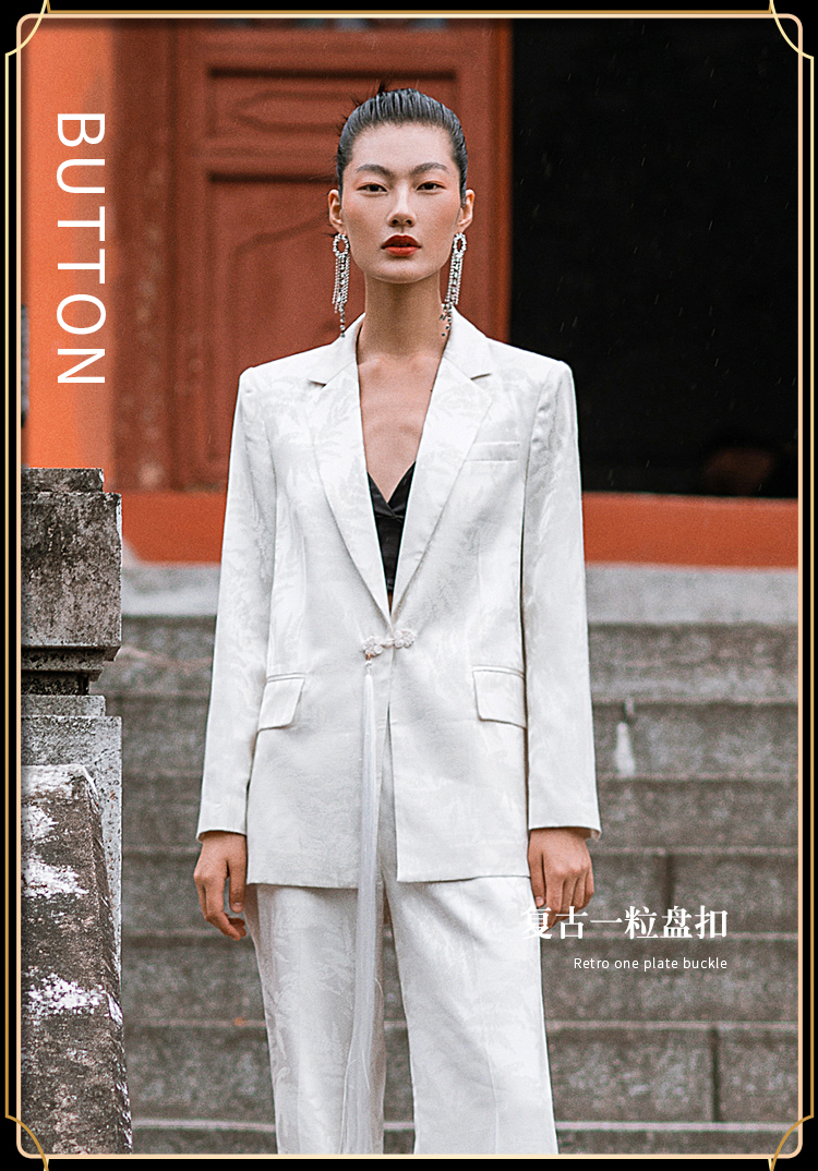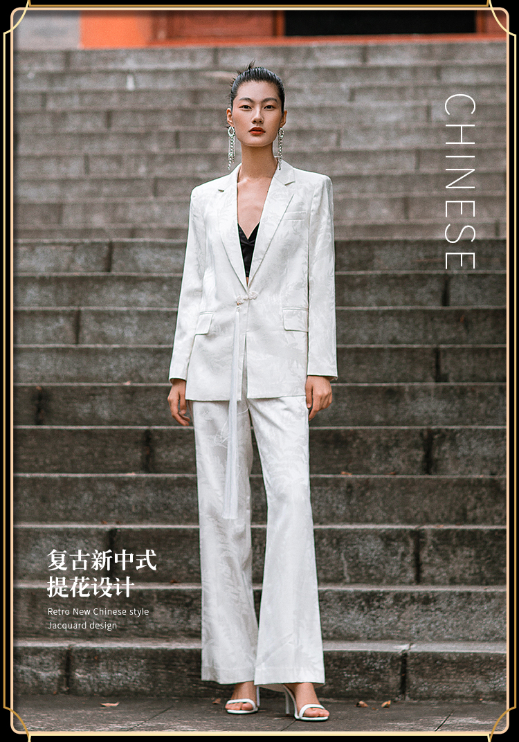 IWY/职业时尚西装套装微宽松复古新中式提花一粒盘扣女213227C1+P2