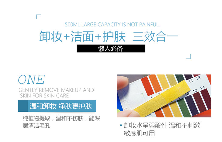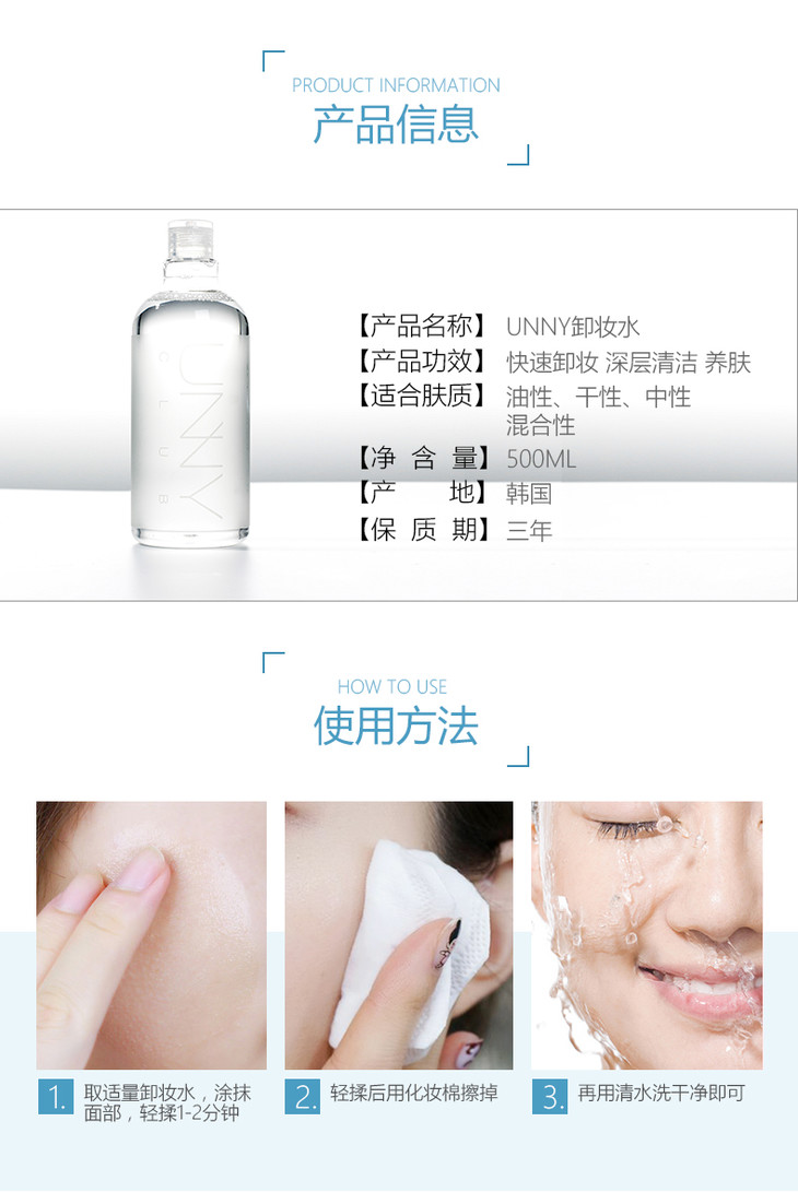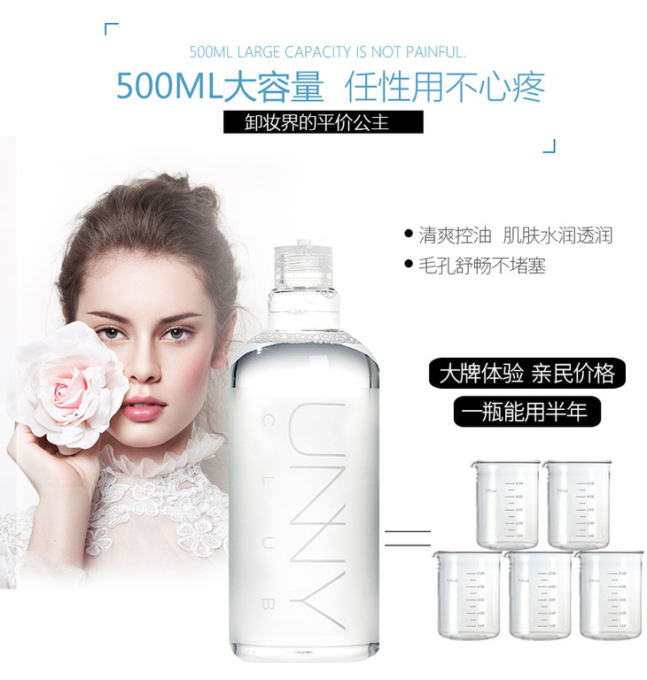 【官方品牌授权】unny悠宜三效合一卸妆水温和清洁无刺激敏感肌可用卸妆油眼唇卸妆500ml/瓶