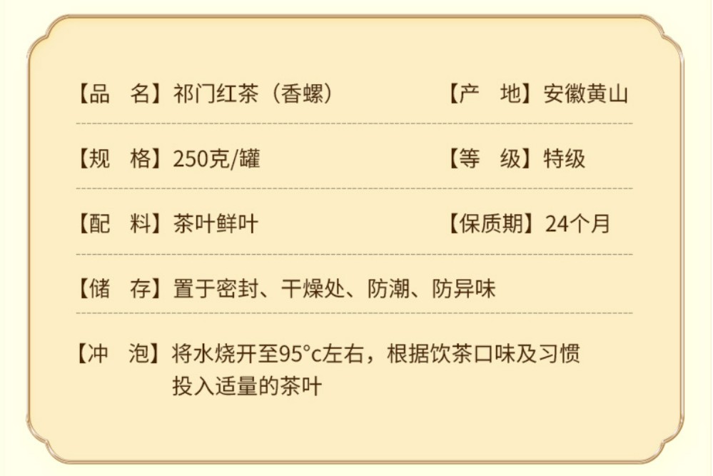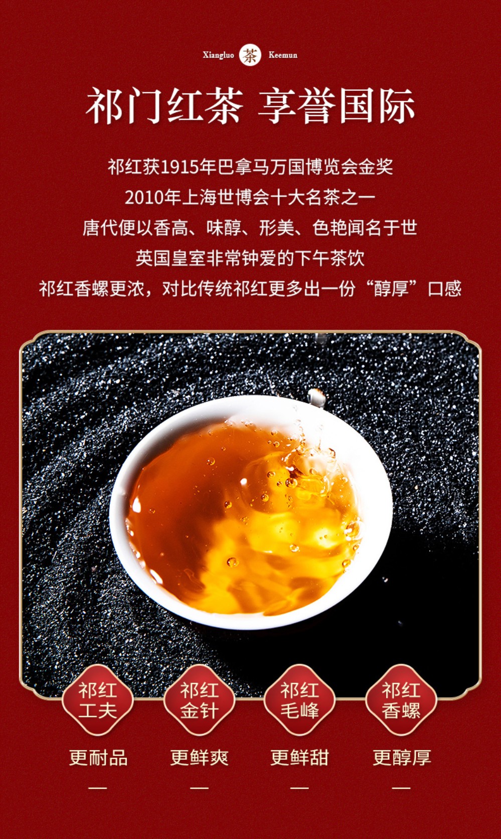 祁门蜜香红茶 传承柴火烘焙17道工艺 7泡有余香工作提神送礼 祁们香螺红茶