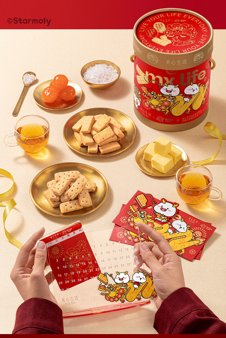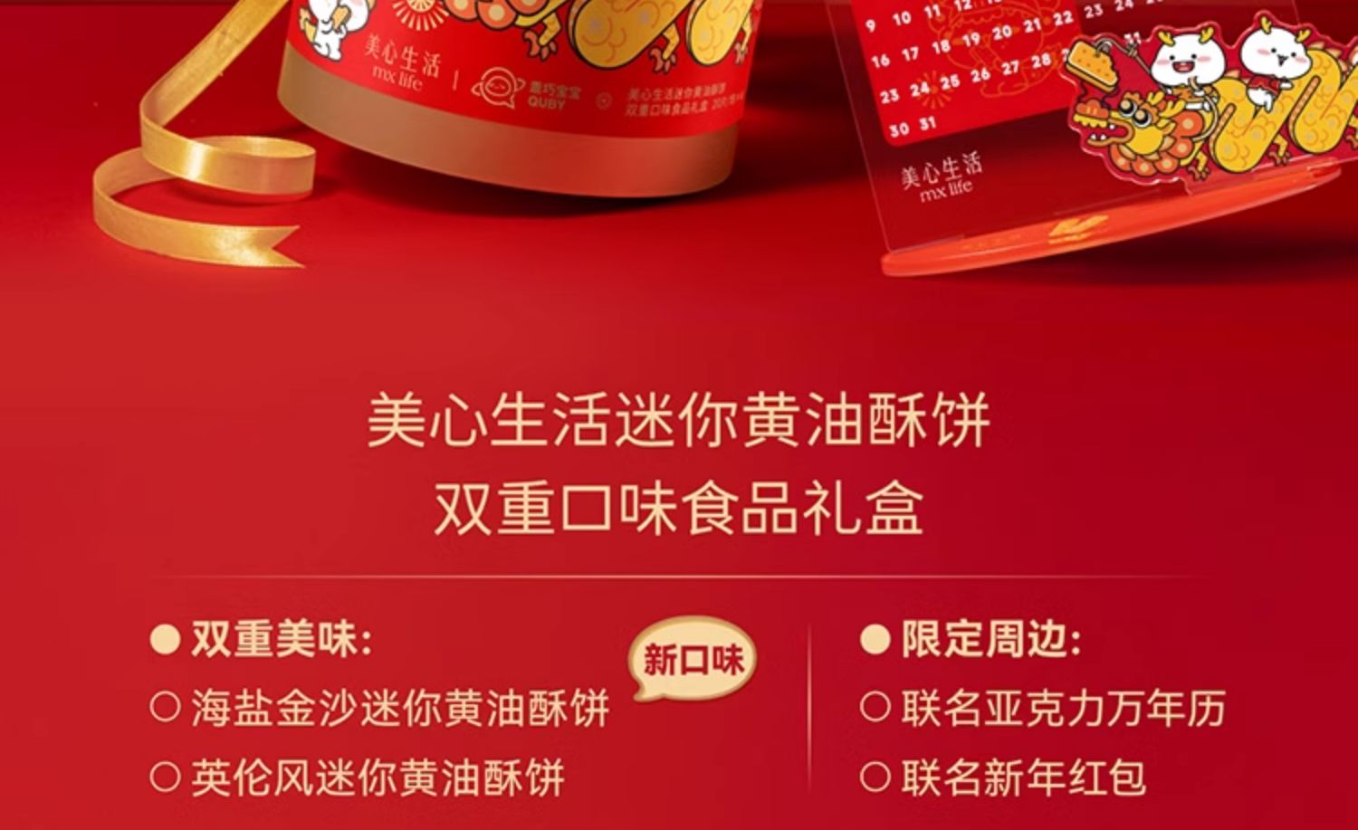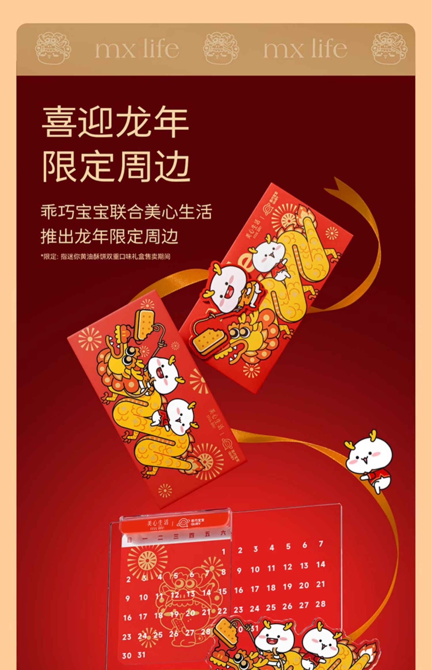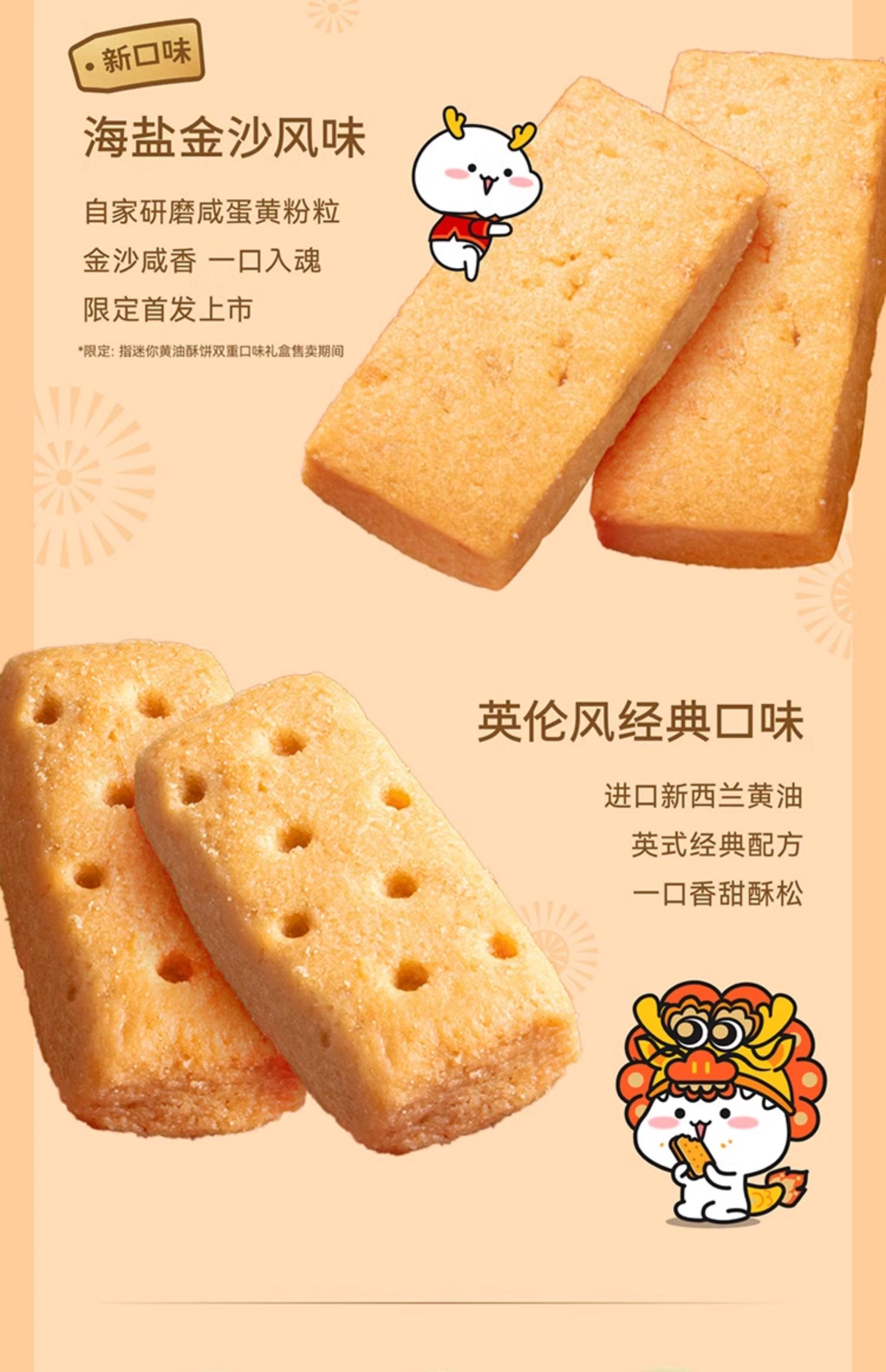 【龙年限定】美心生活迷你黄油酥饼IP礼盒288g/059350 双重口味食品礼盒