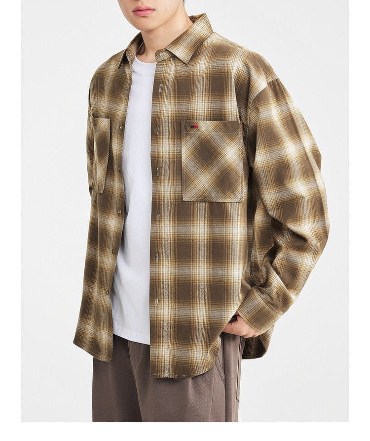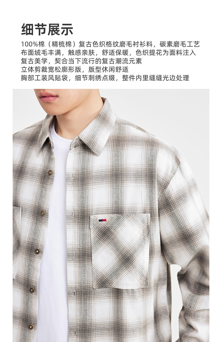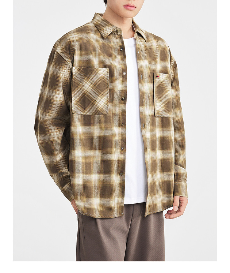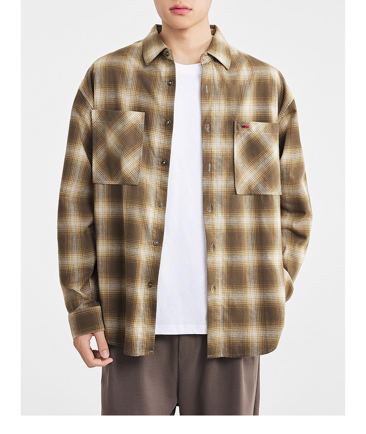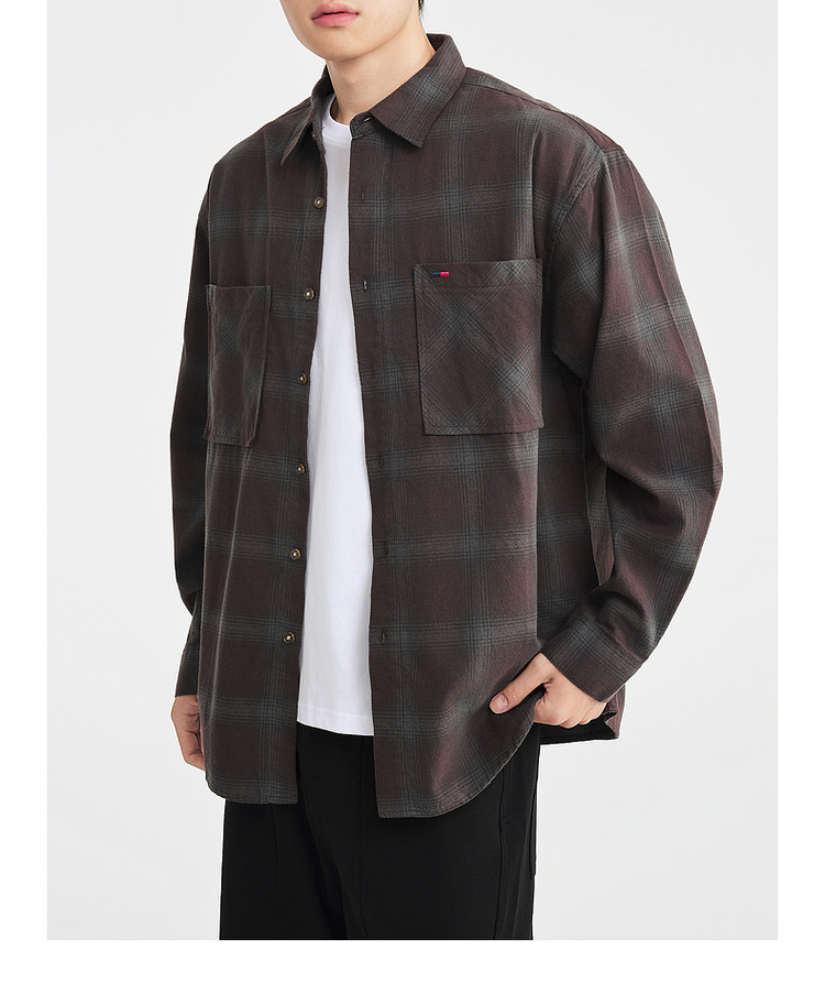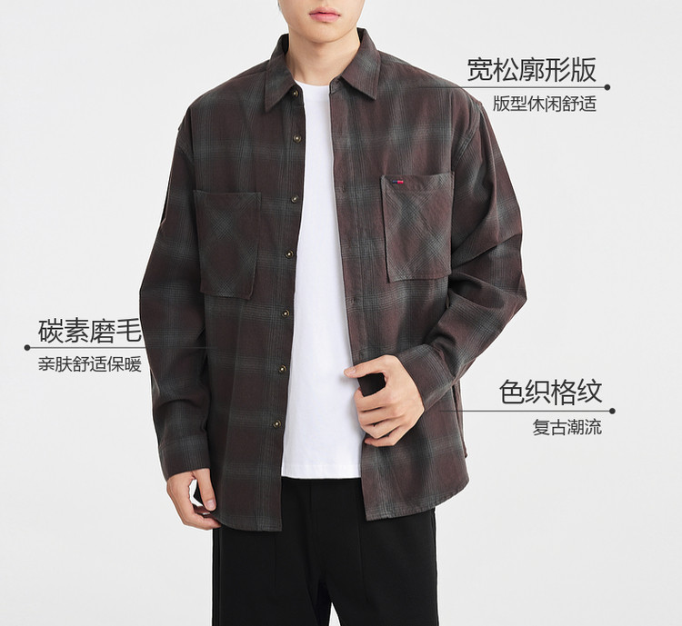 墨麦客男装2025年冬季复古色织格衬衫男士美式休闲磨毛长袖衬衫男