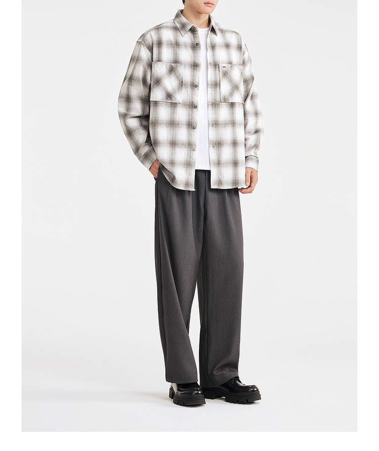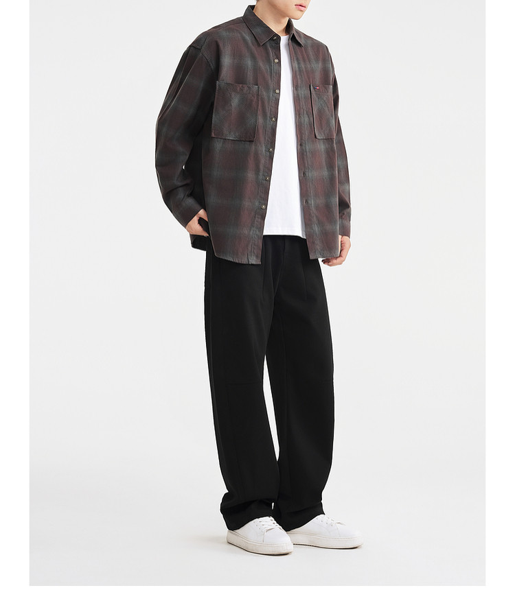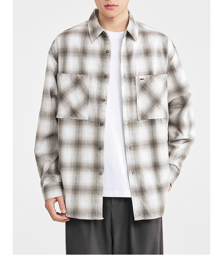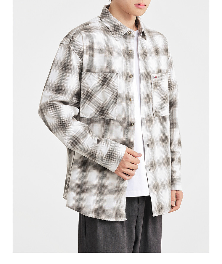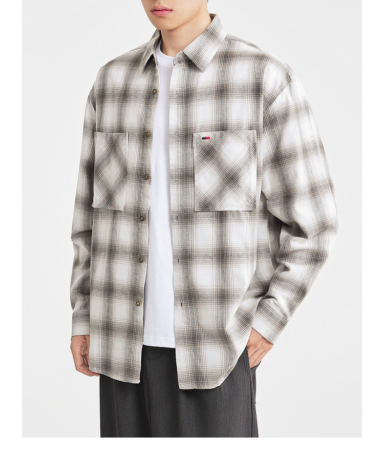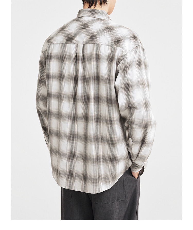墨麦客男装2025年冬季复古色织格衬衫男士美式休闲磨毛长袖衬衫男